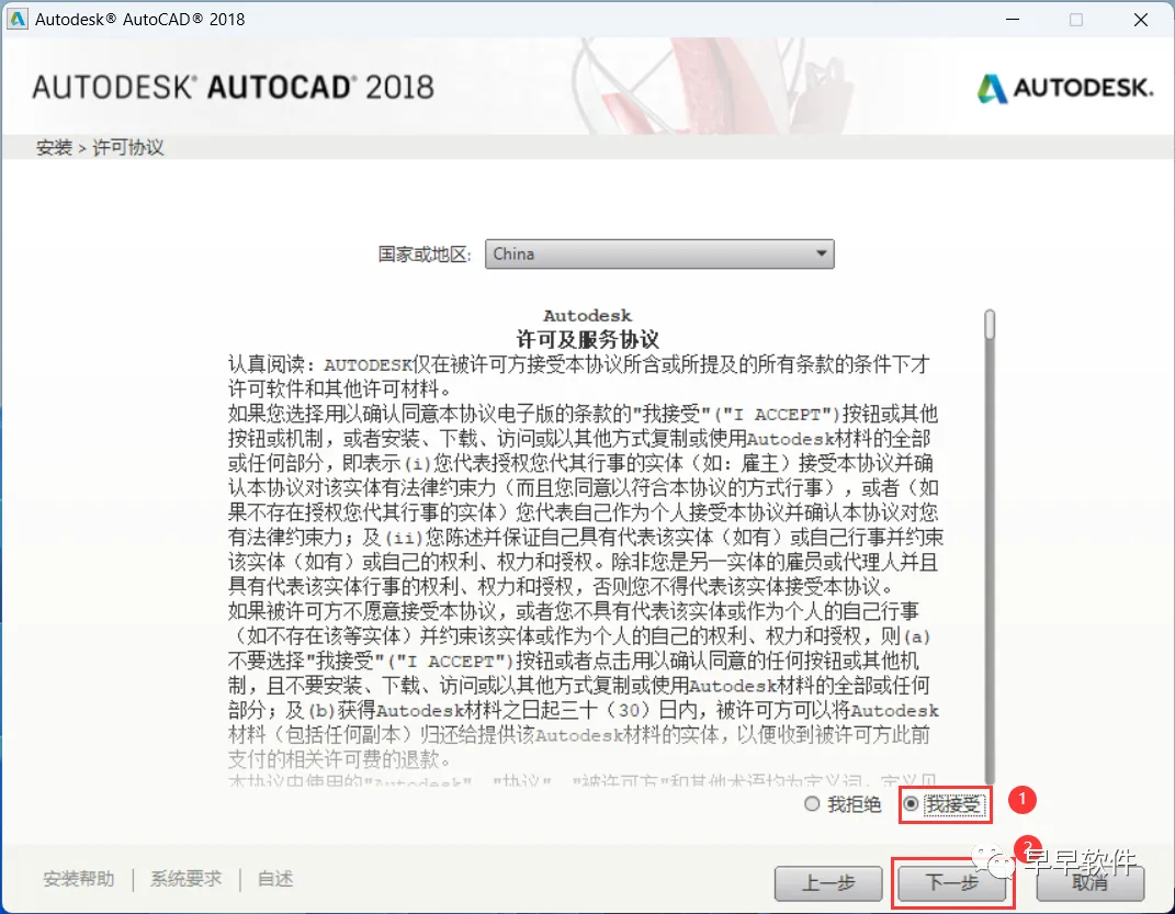 6、勾选【我接受】,再点击【下一步】