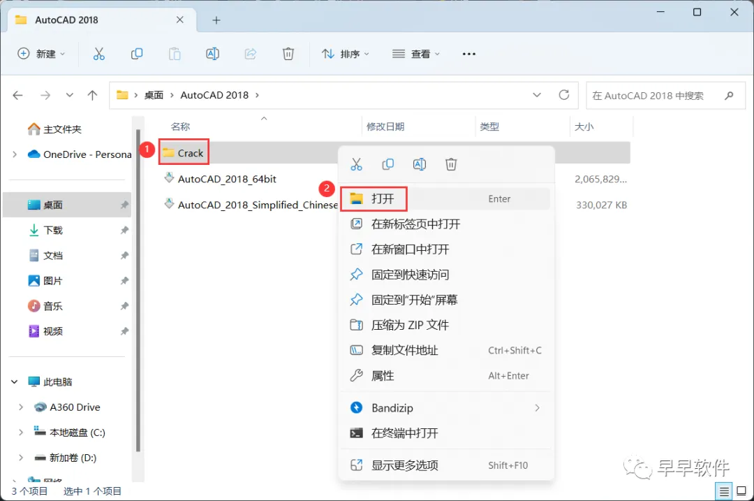 20、回到AutoCAD 2018文件夹,找到【Crack】文件夹,右键【打开】它