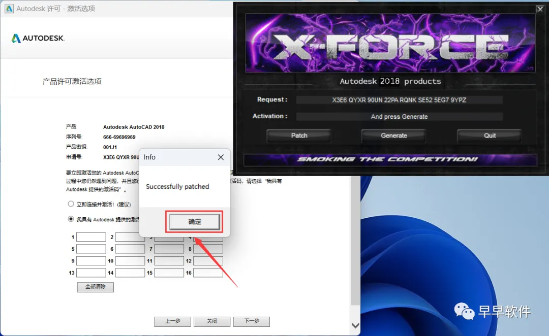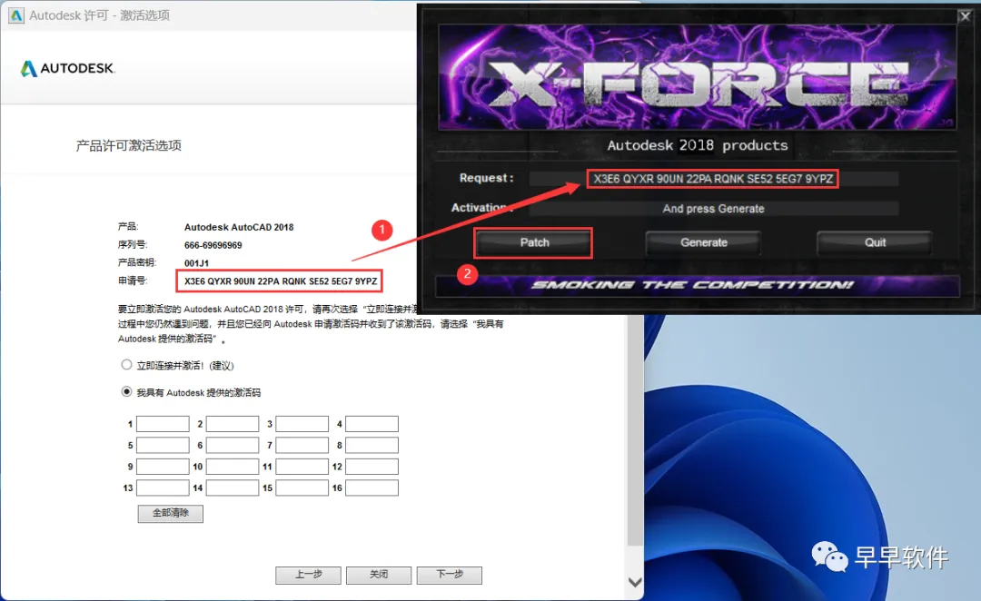 22、打开软件界面,将软件的【申请号】填入到程序的【Requset】内,再点击【Patch】
