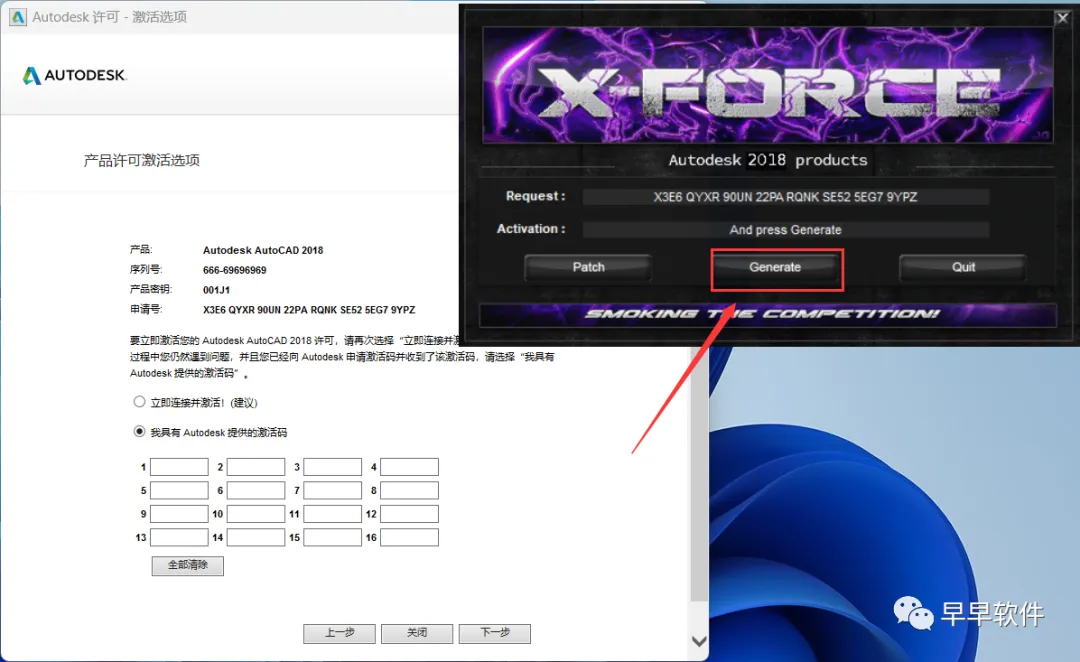 25、将程序的【Activation】填入到软件的【激活码】内,再点击【下一步】