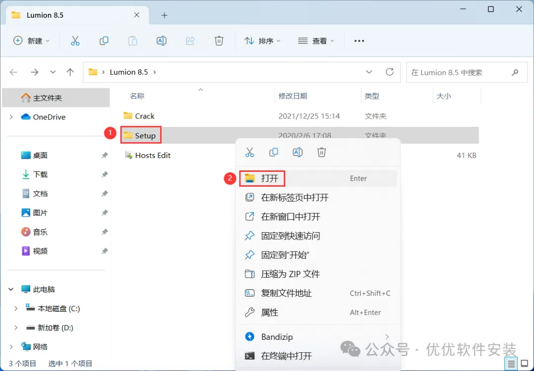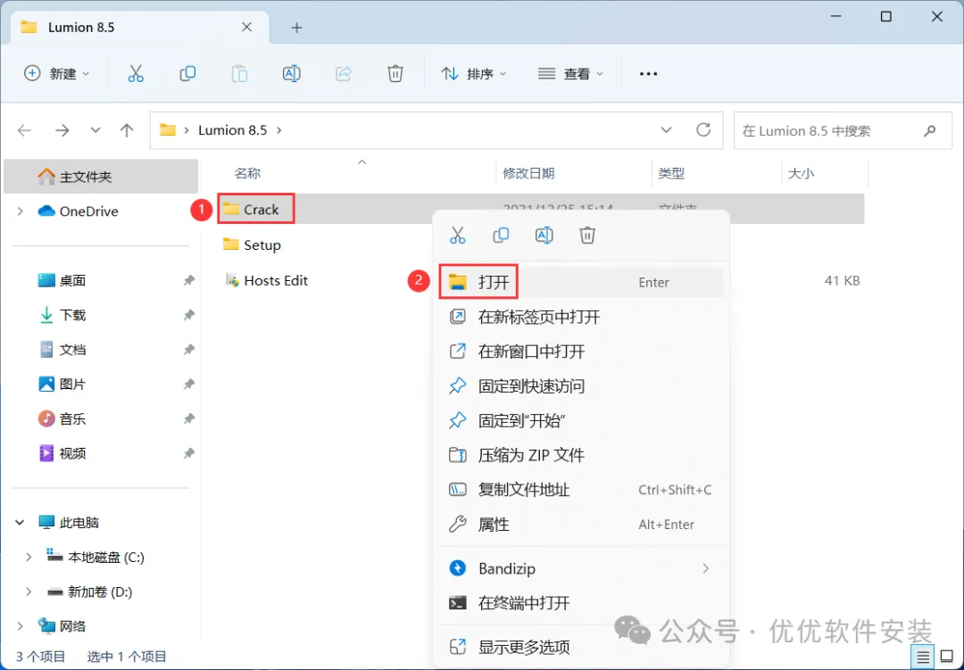 10、回到Lumion 8.5文件夹,找到【Crack】文件夹,右键【打开】它