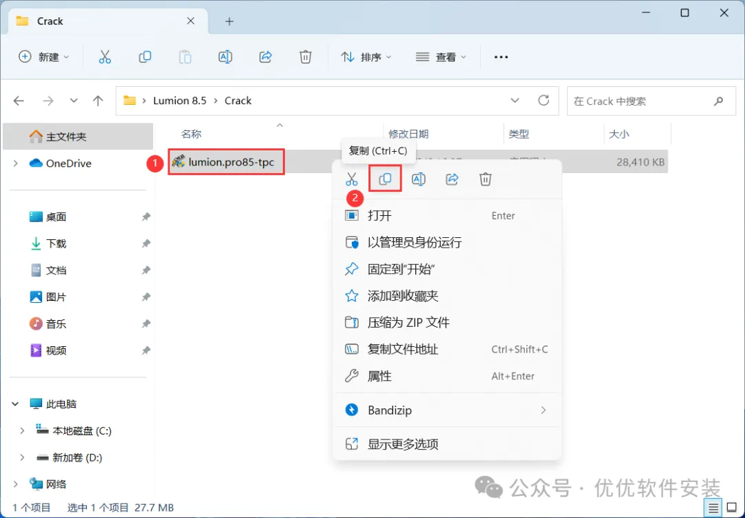 11、找到【lumion.pro85】程序,右键点击【复制按钮】