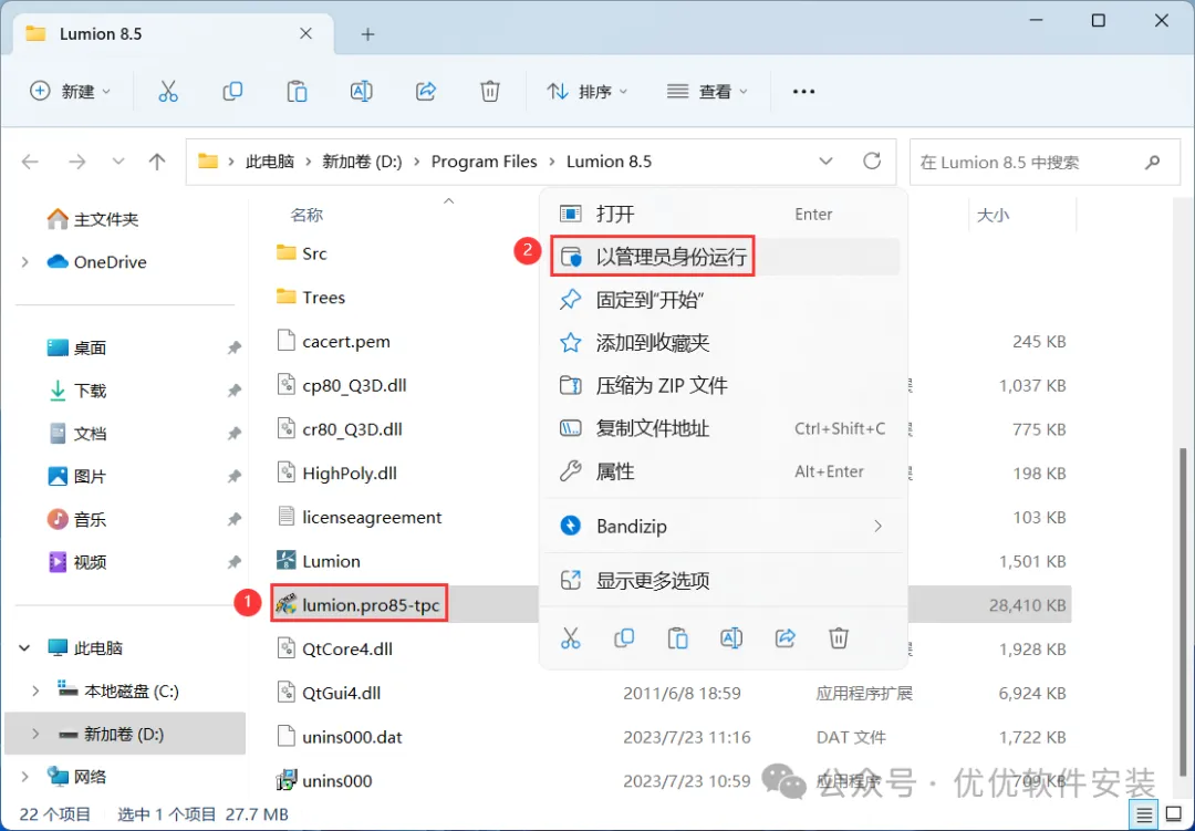 14、找到粘贴的【lumion.pro85】程序,右键选择【以管理员身份运行】它