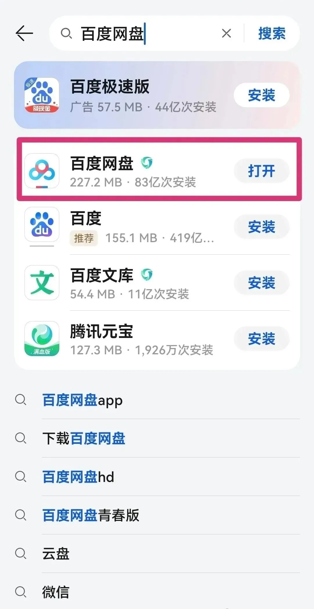 如果你用的是安卓手机,打开手机自带的应用商店,在搜索栏输入“百度网盘”,点击搜索结果中的“百度网盘”应用,然后点击“安装”按钮,等待下载和安装完成,安装好后,点击打开,登录账号就能使用啦。