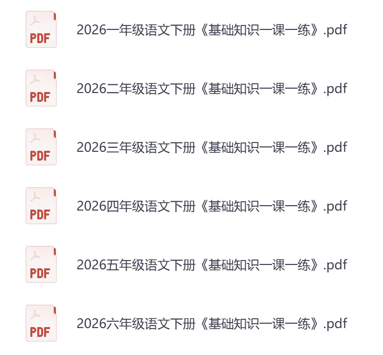大家好,今天为大家分享一套非常实用的小学语文学习资料。2026春小学语文《基础知识一课一练》1-6年级下册