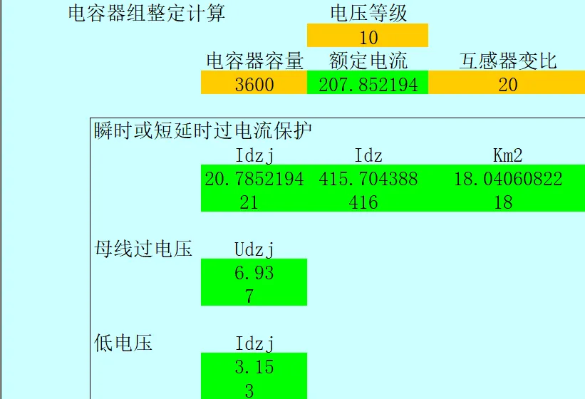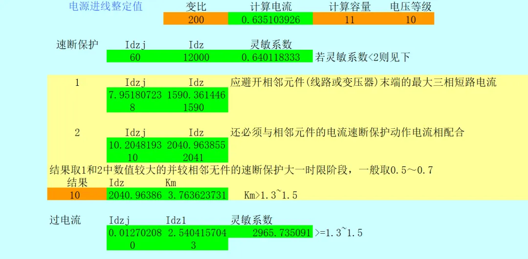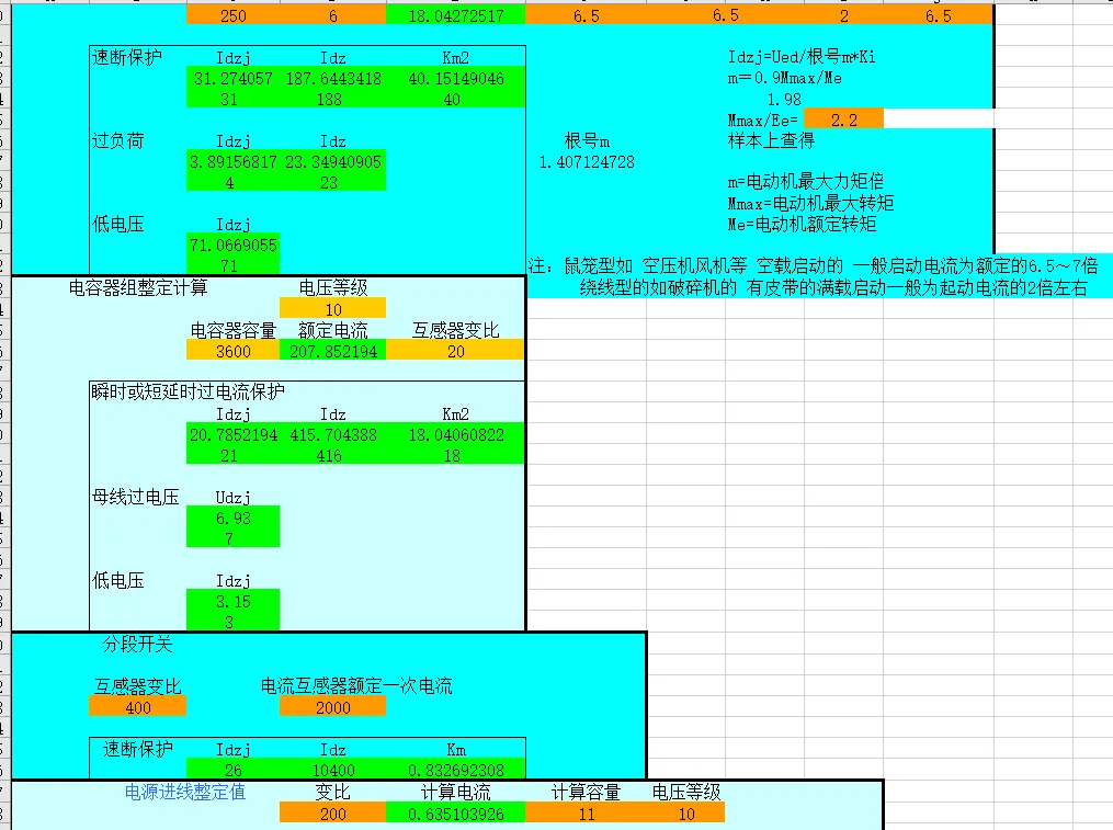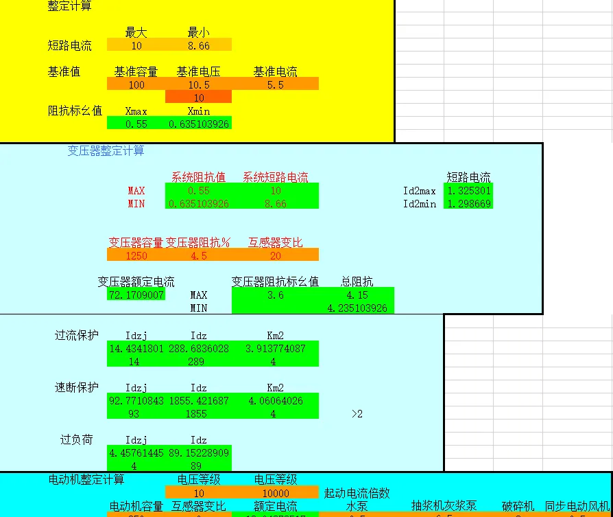 实现电源进线整定值、变压器整定计算、电动机整定计算、电容器组整定计算、分断开关(过流保护、速断保护、过负荷、过电压、低电压)