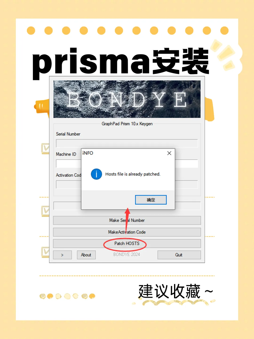 以管理员身份运行“BDY-Prism10-Win64-KG.exe”,点击“Patch HOSTS”进行补丁。