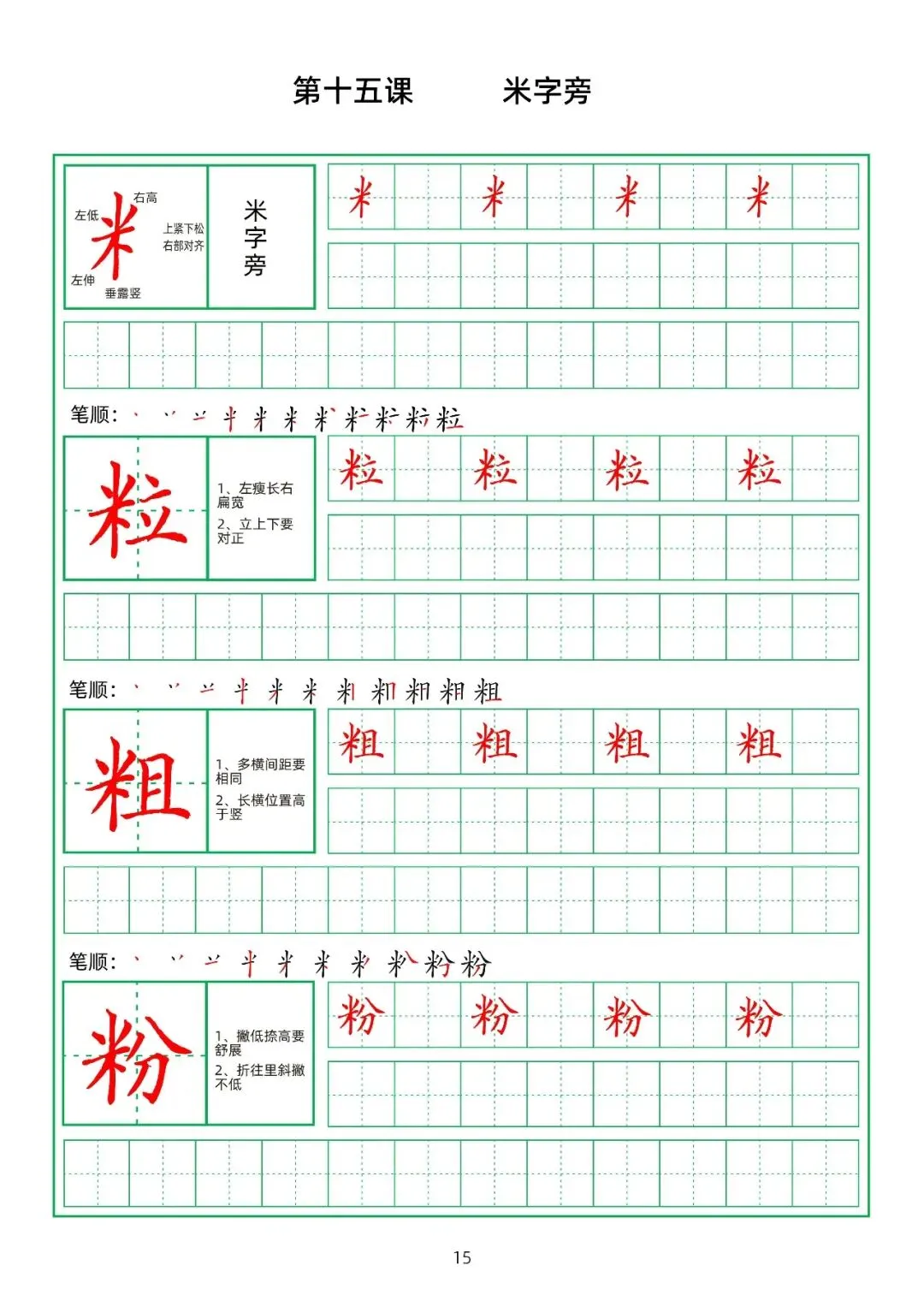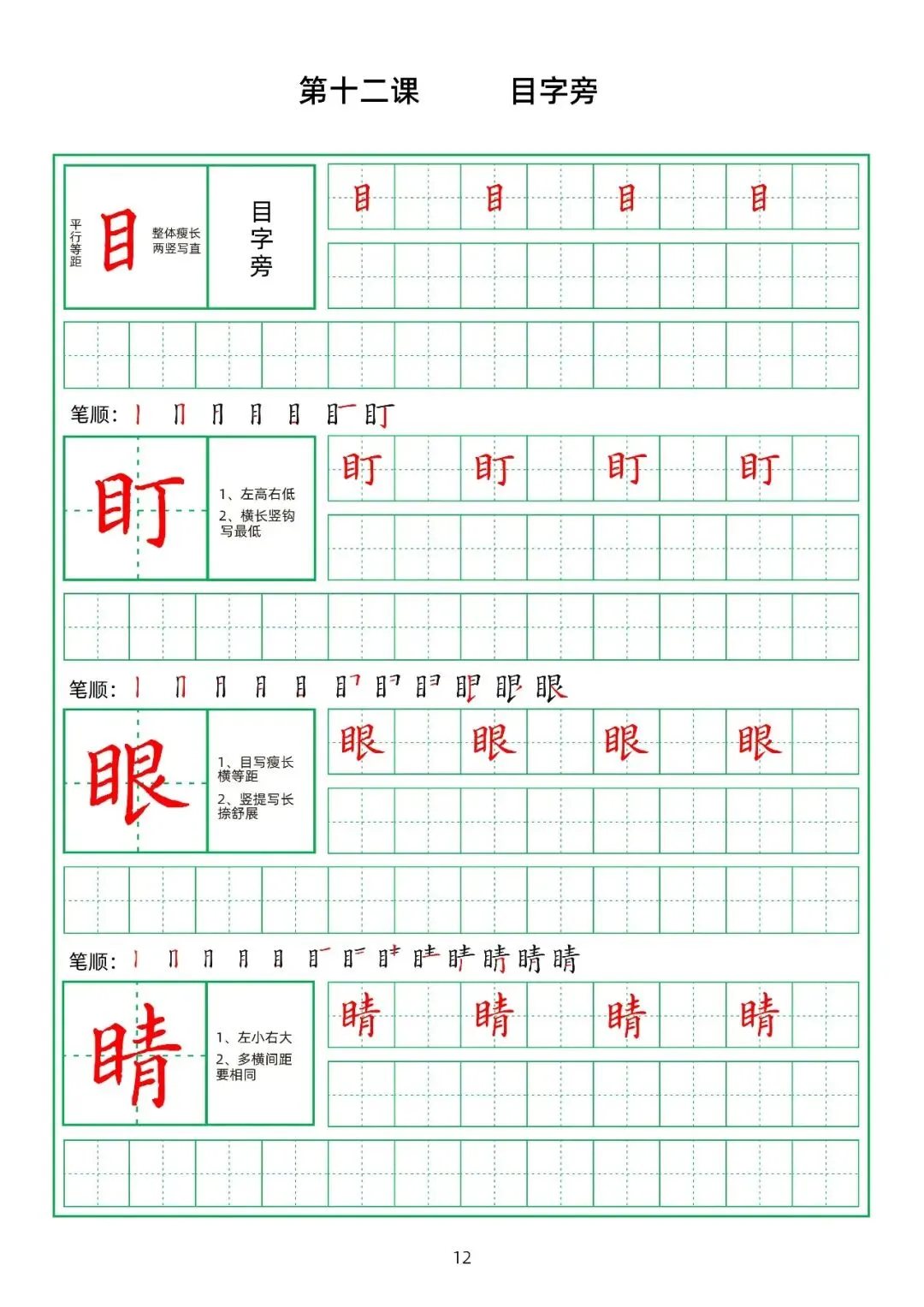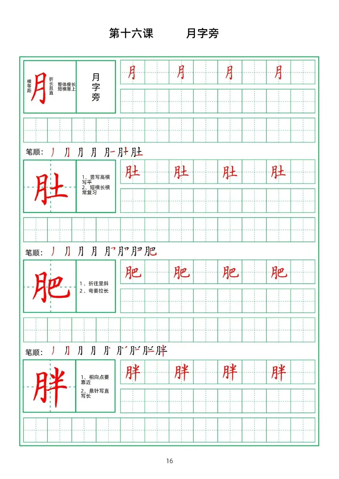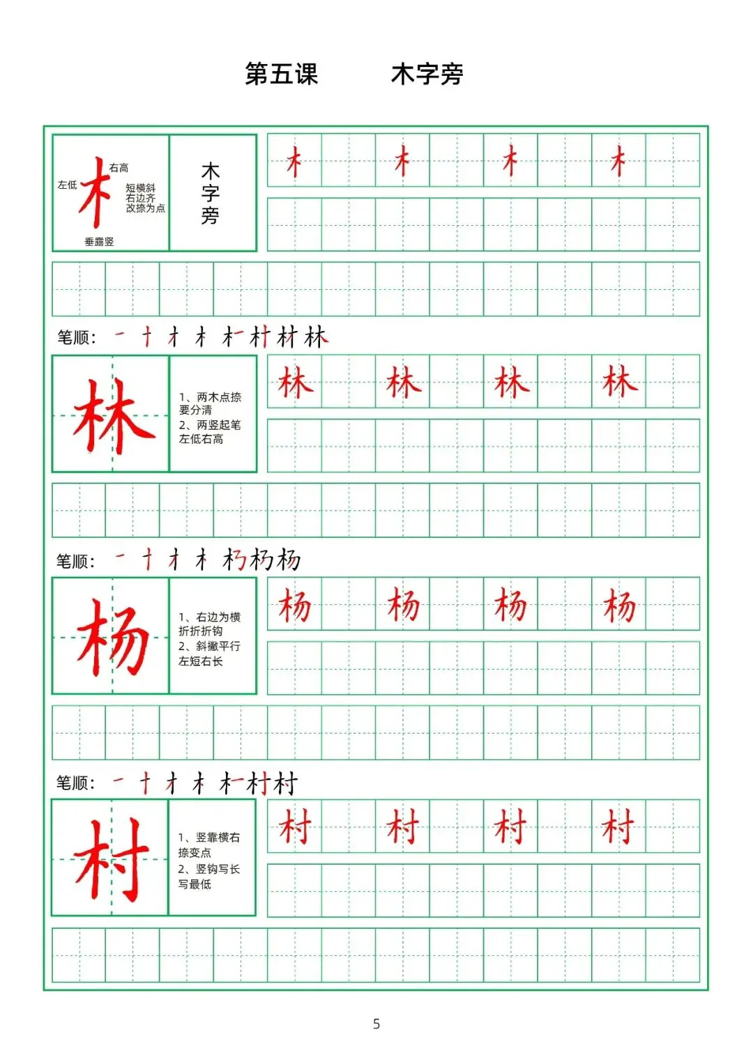 田字格硬笔楷书教材,偏旁部首,PDF免费下载!