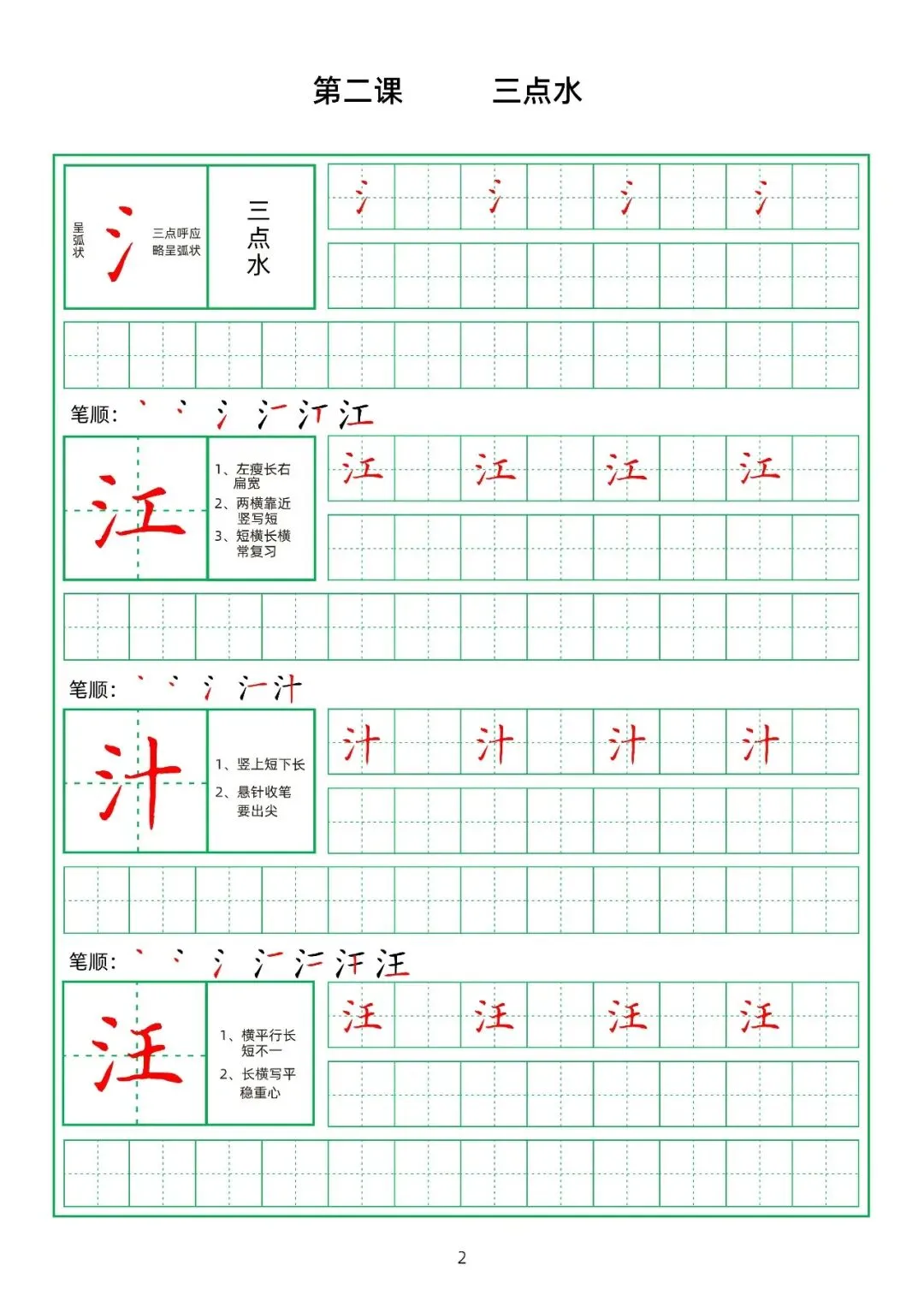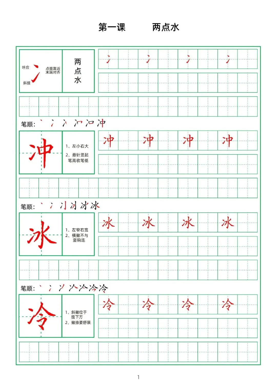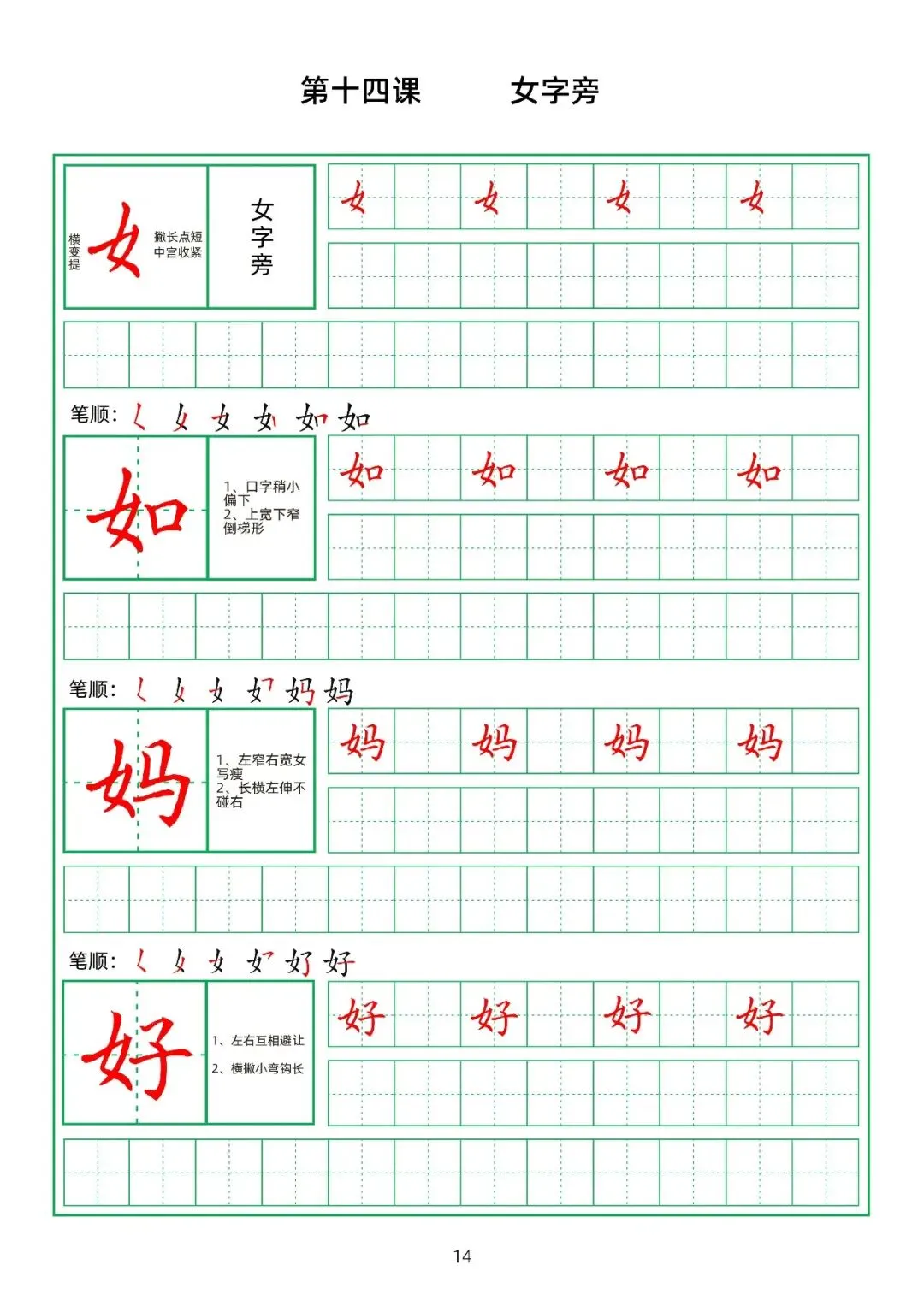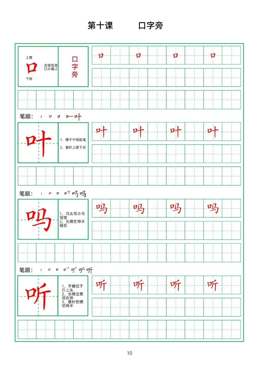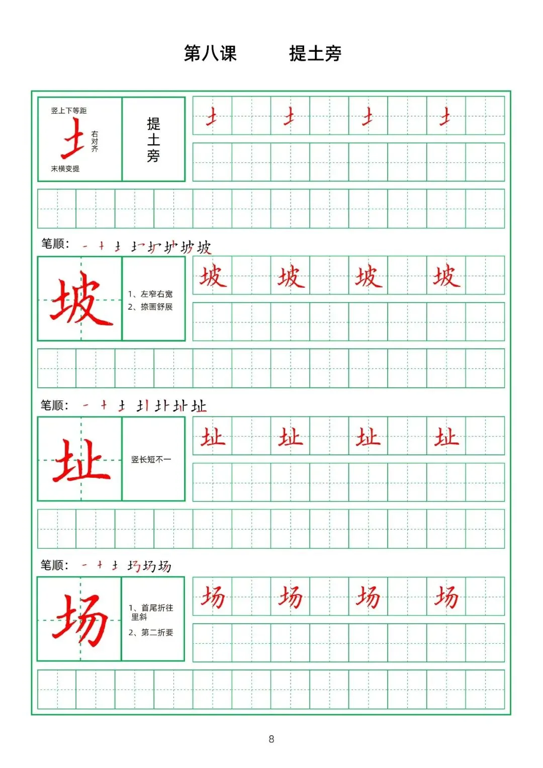 田字格硬笔楷书教材,偏旁部首,PDF免费下载!