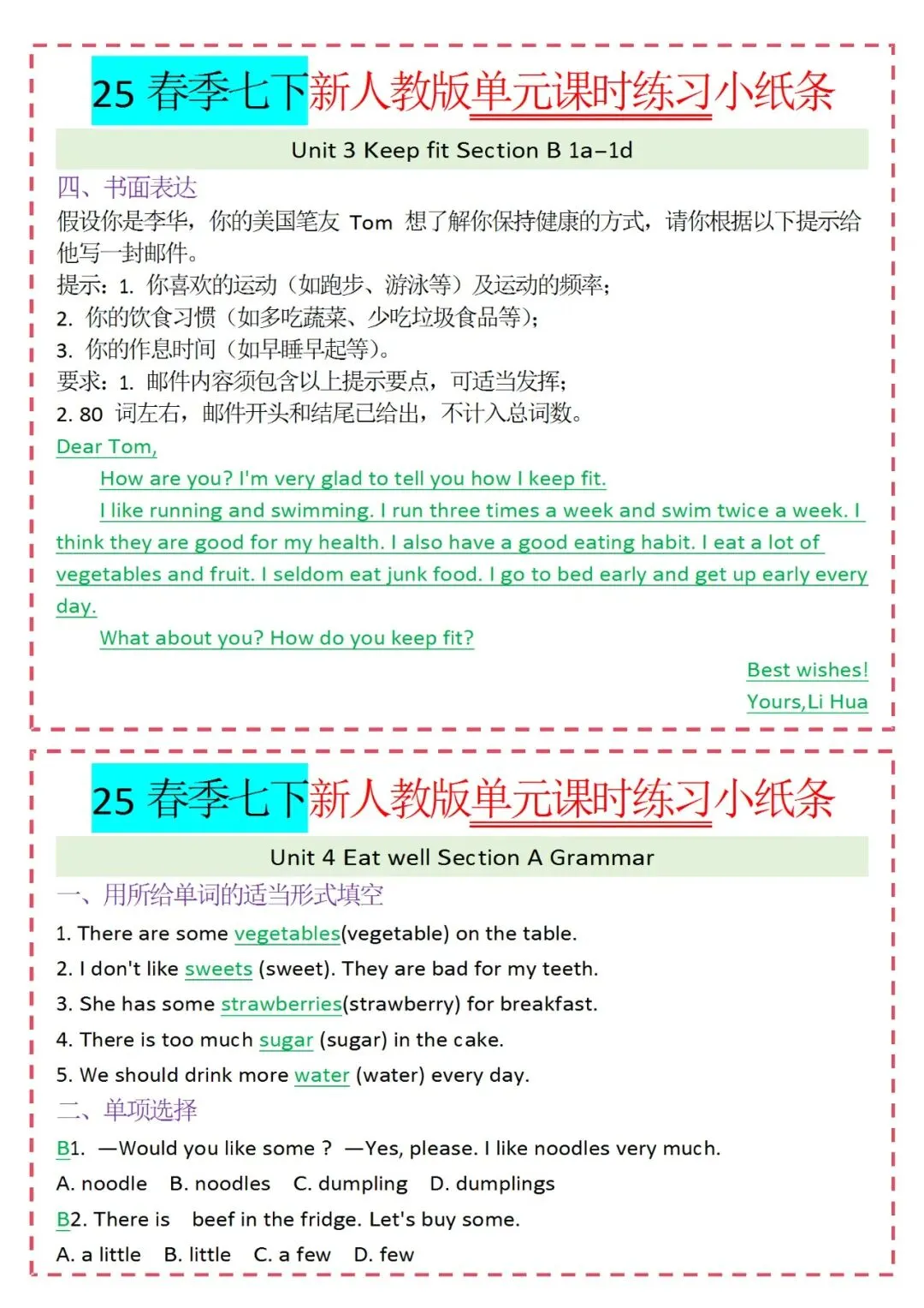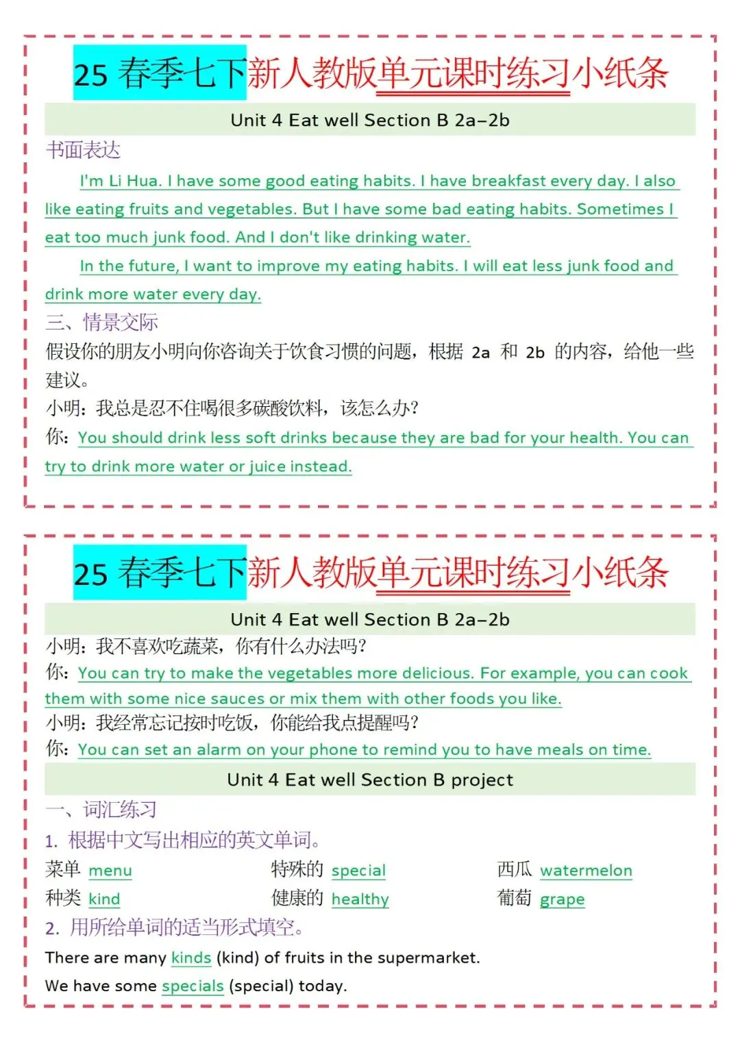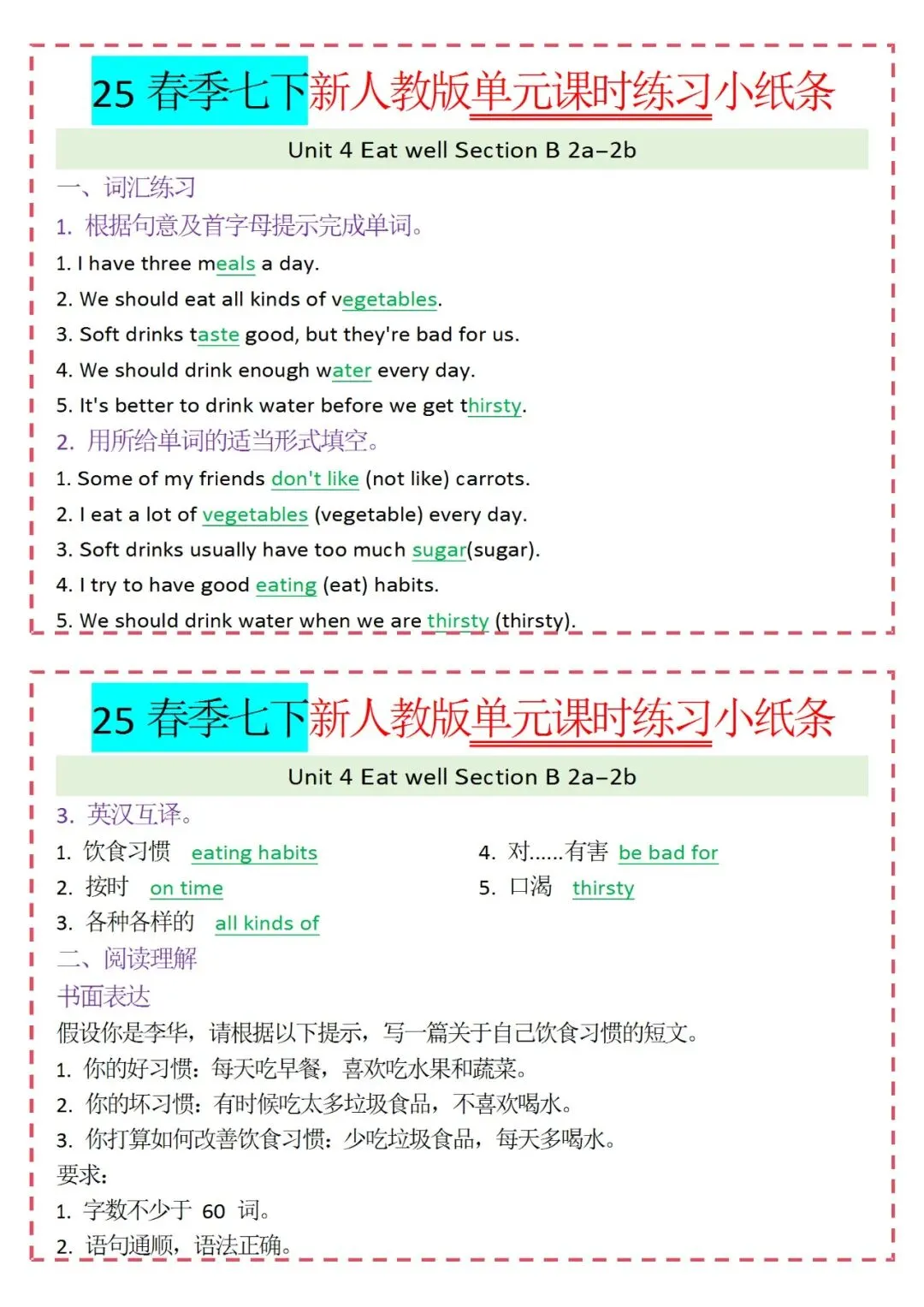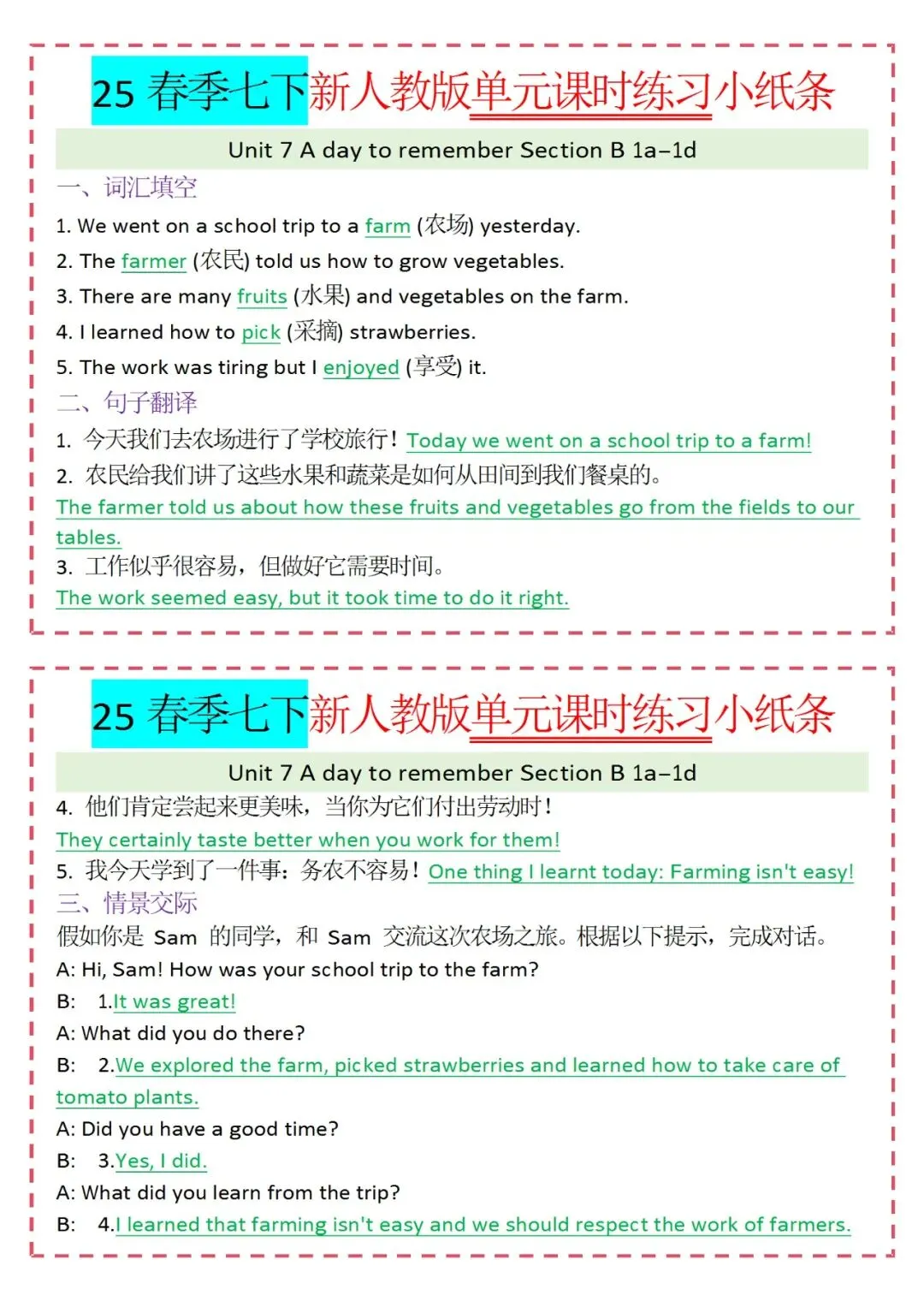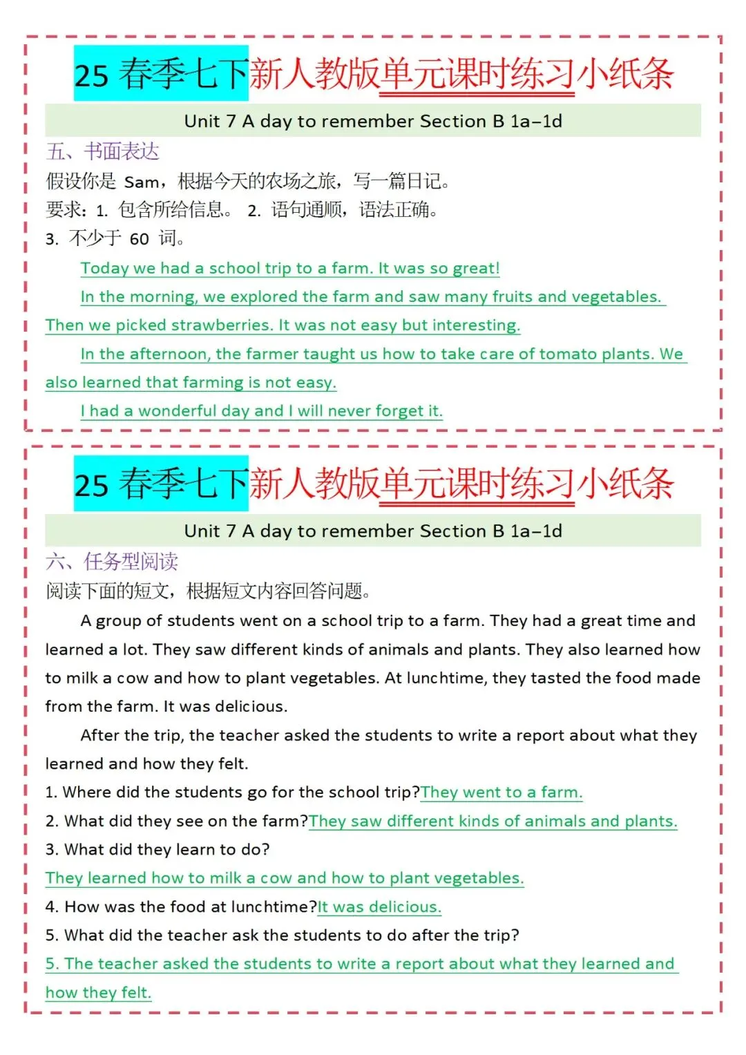 人教版英语七年级下册新教材学习资料包免费分享链接: