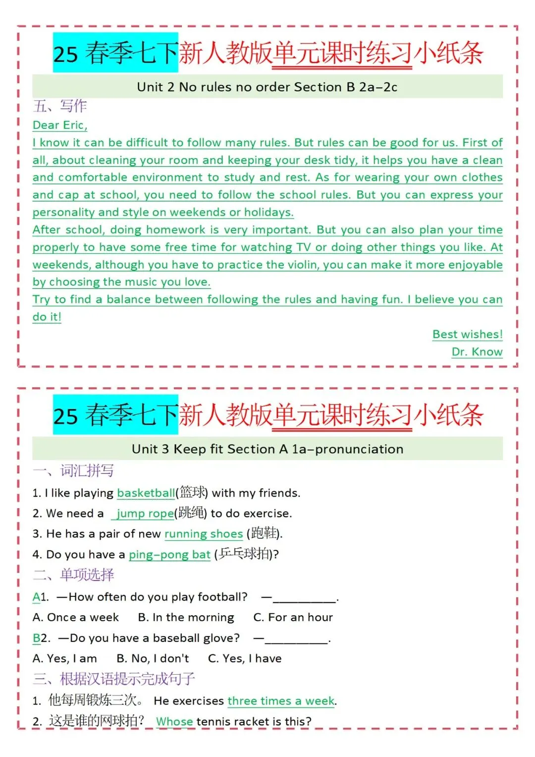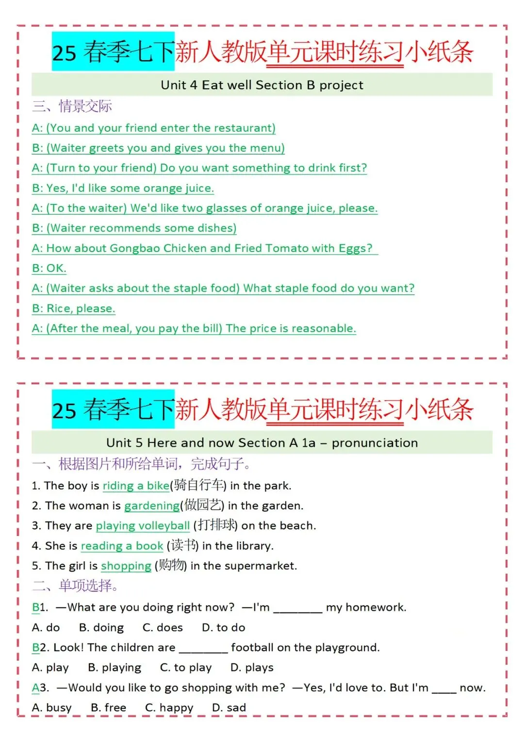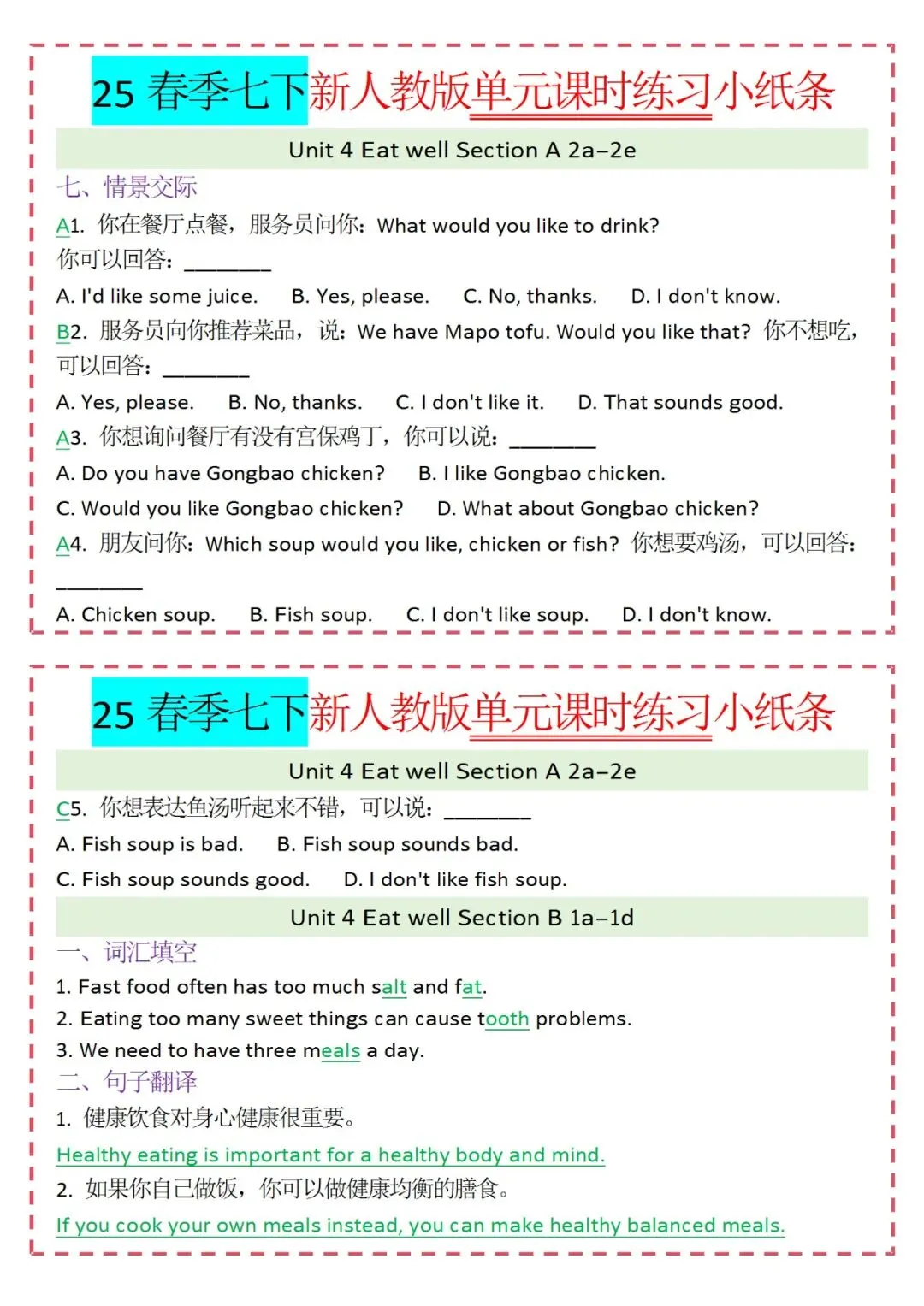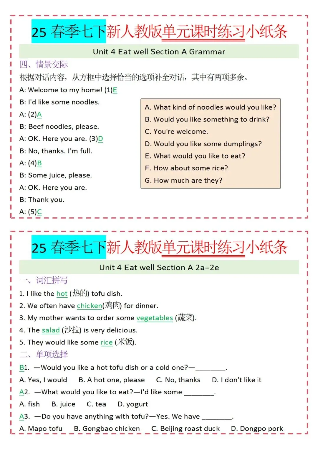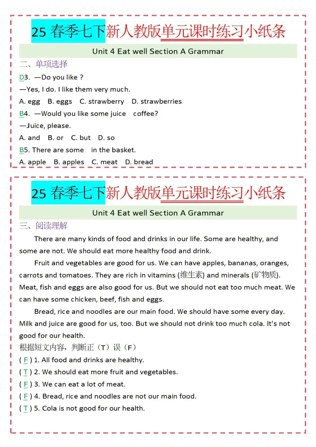 人教版英语七年级下册新教材学习资料包免费分享链接:
