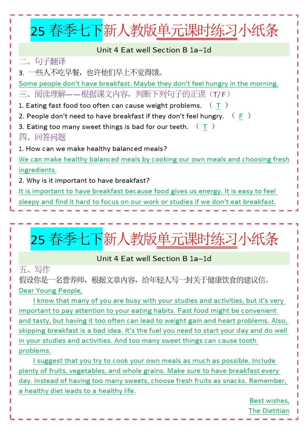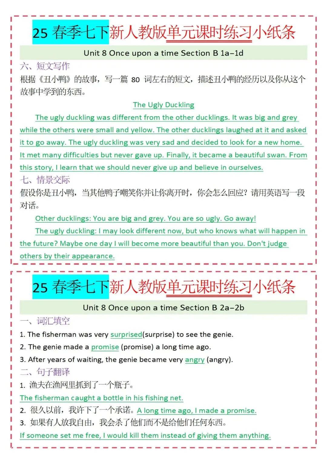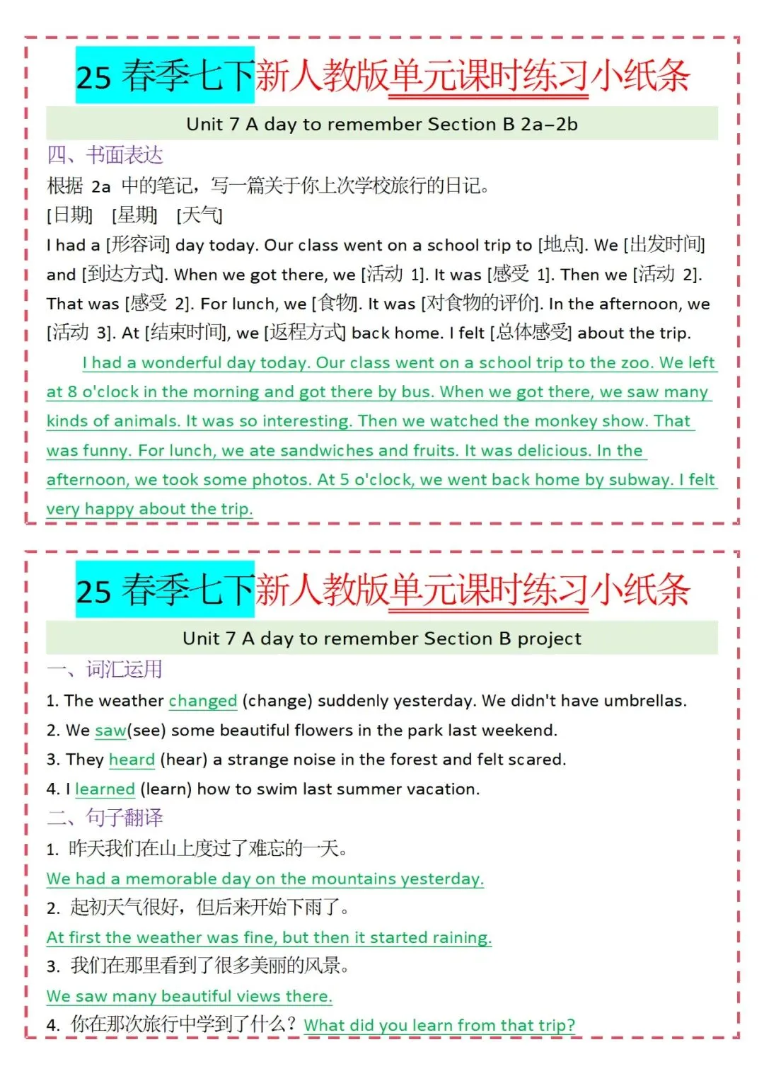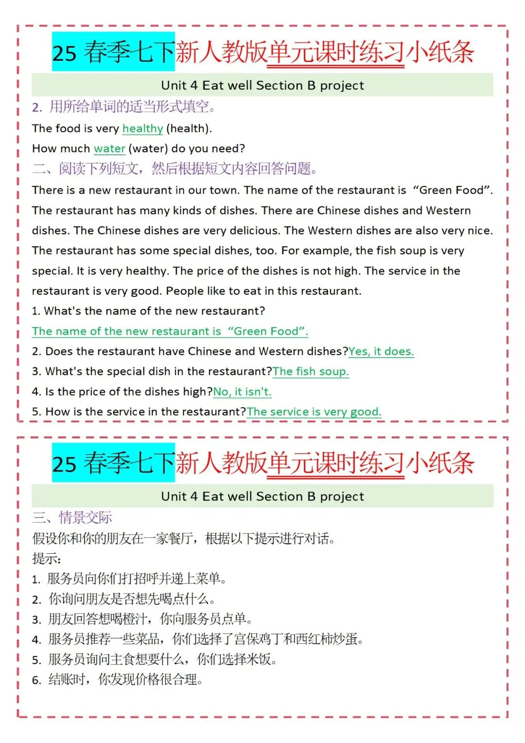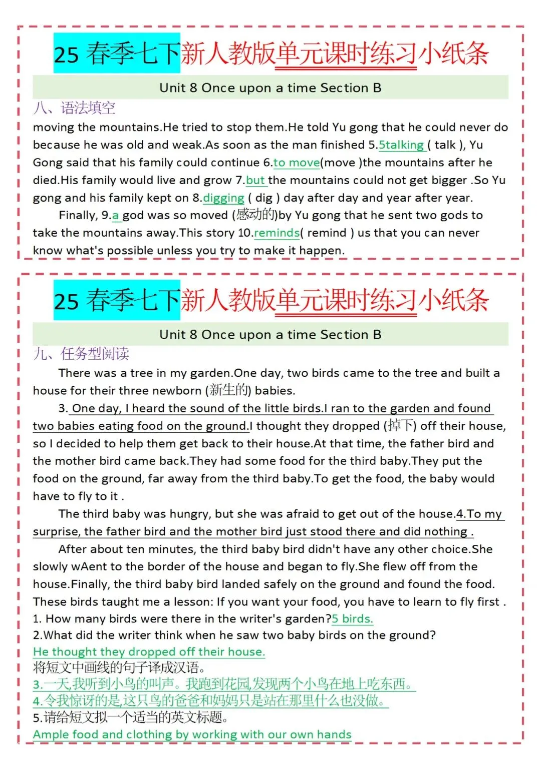 人教版英语七年级下册新教材学习资料包免费分享链接: