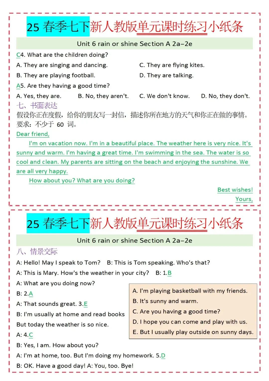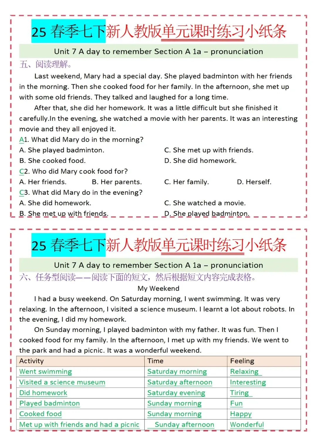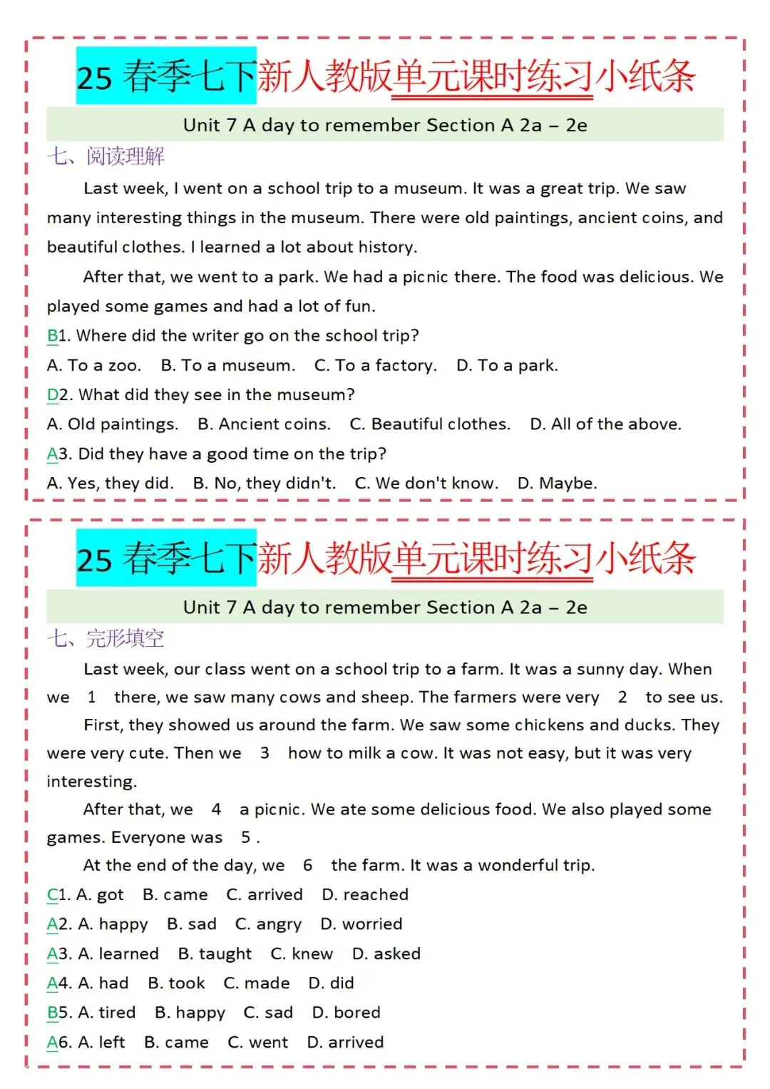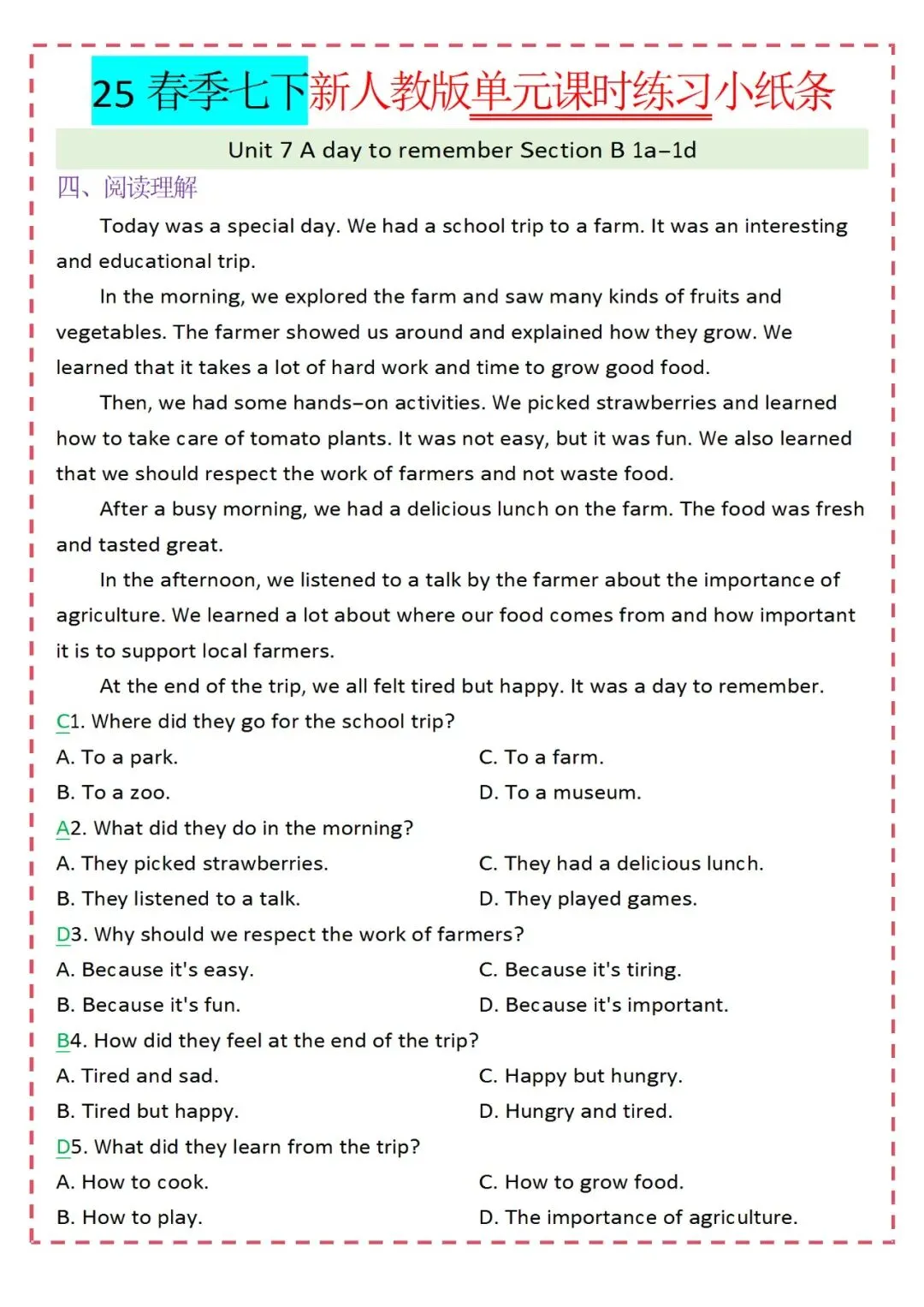 人教版英语七年级下册新教材学习资料包免费分享链接: