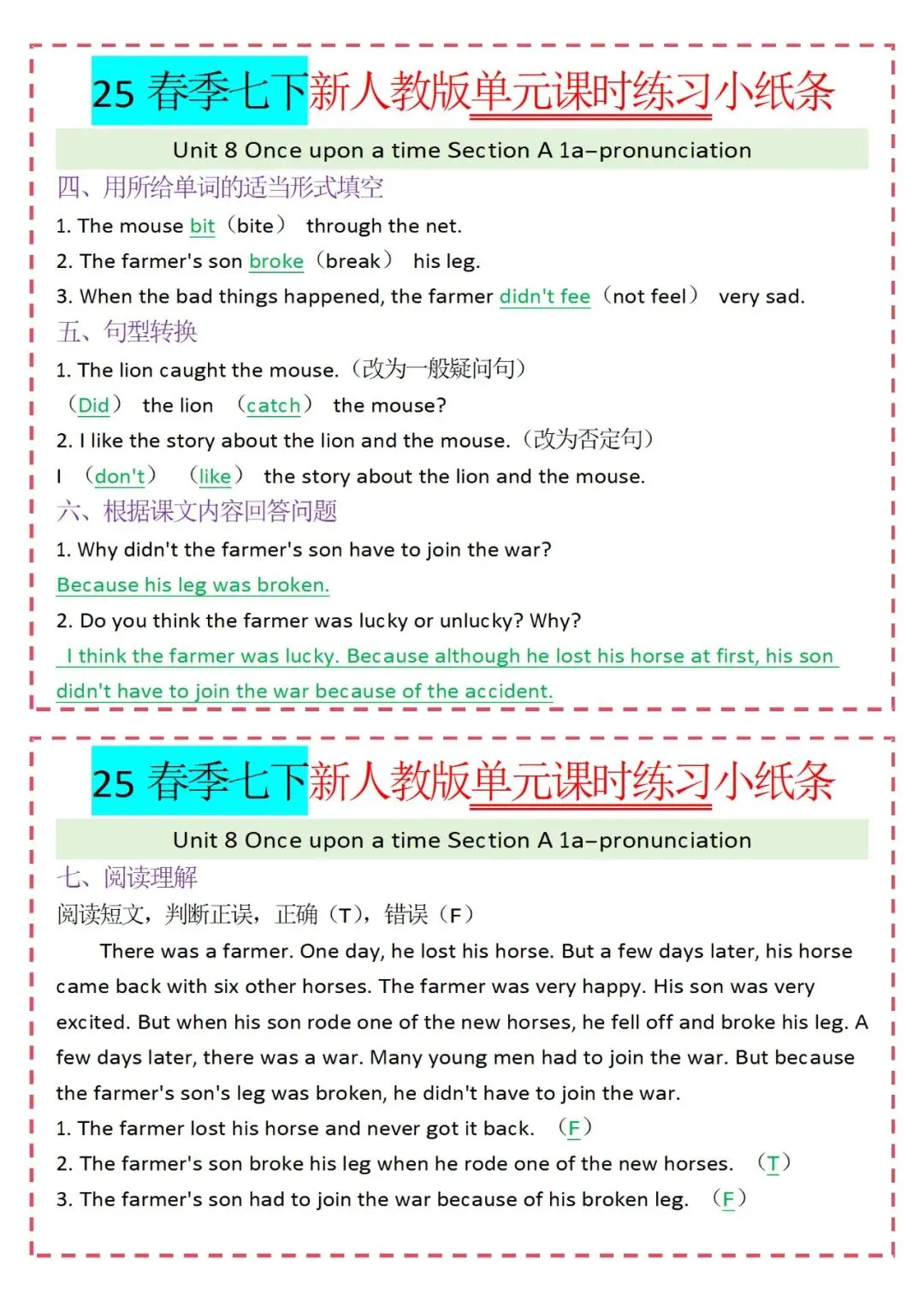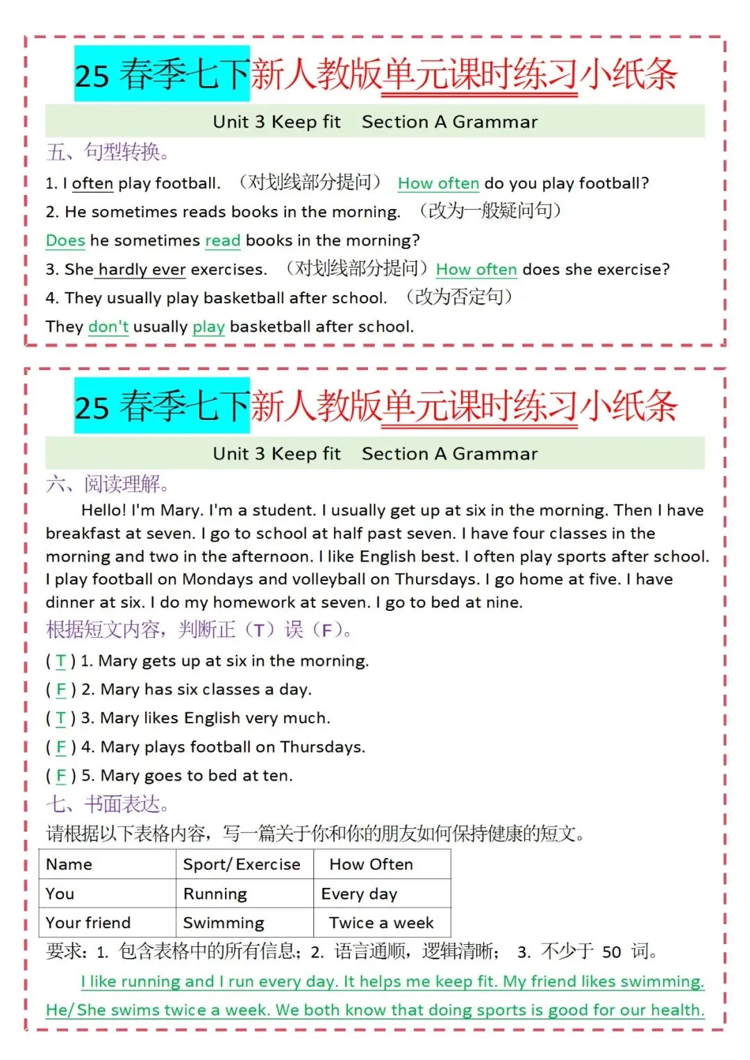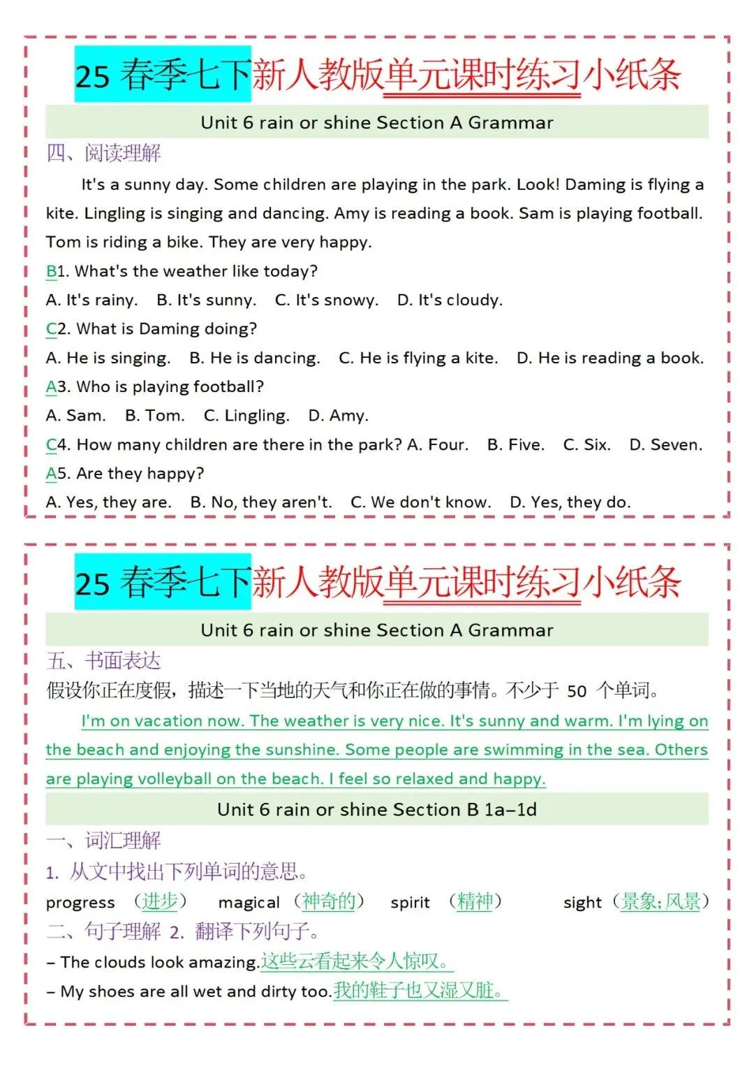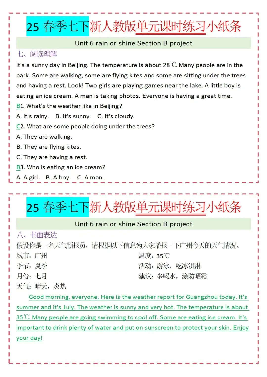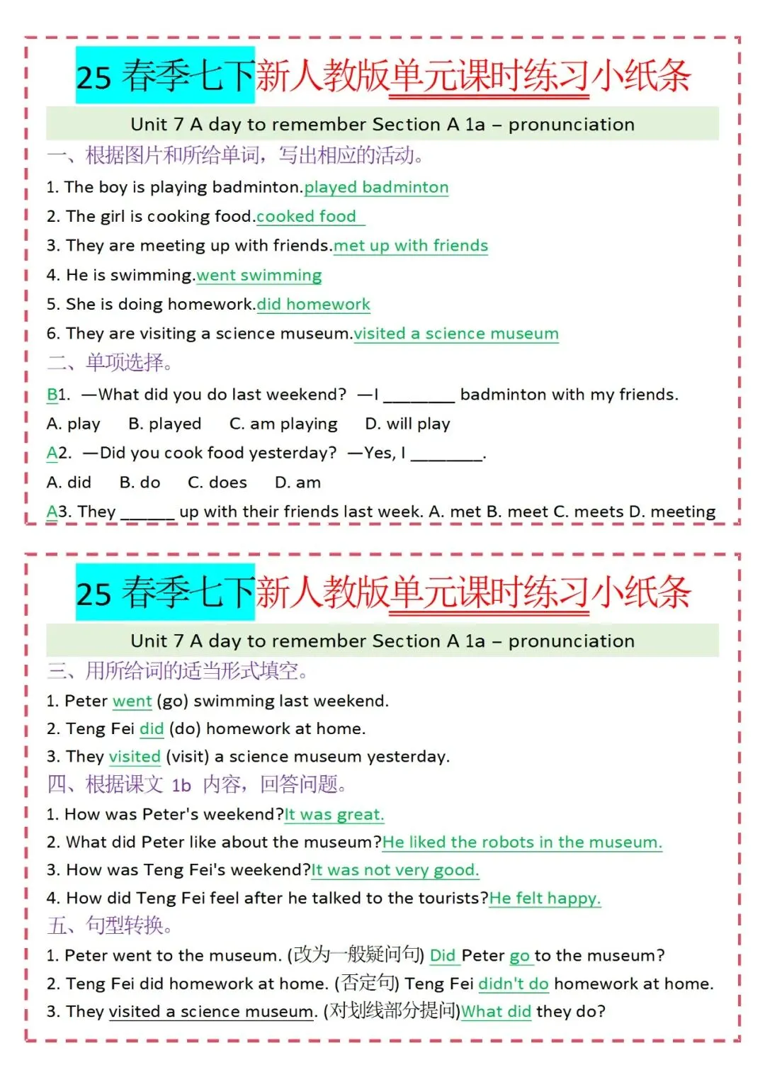 人教版英语七年级下册新教材学习资料包免费分享链接: