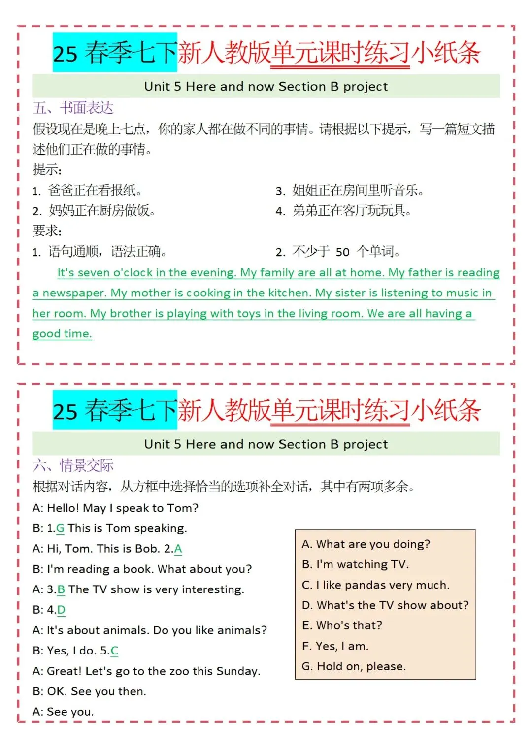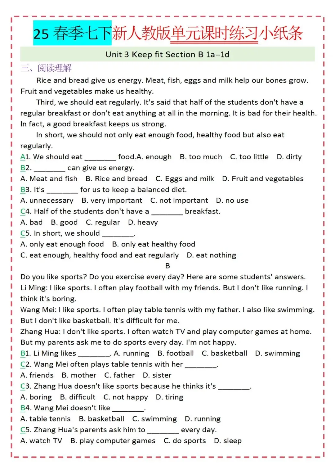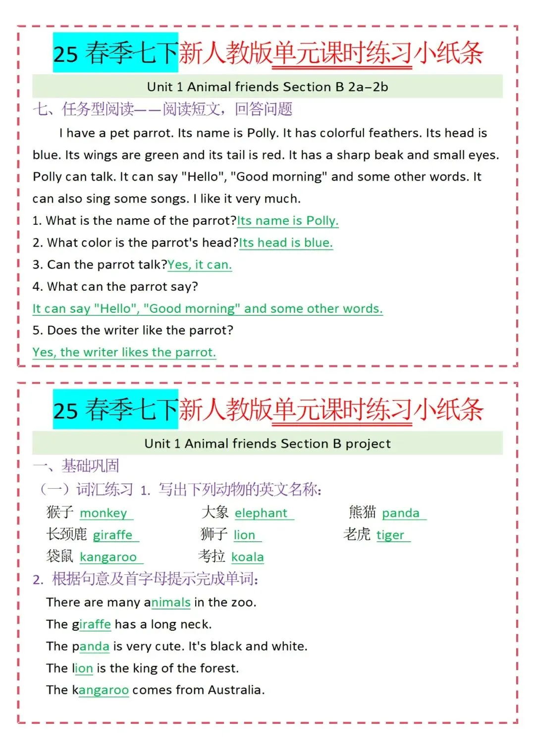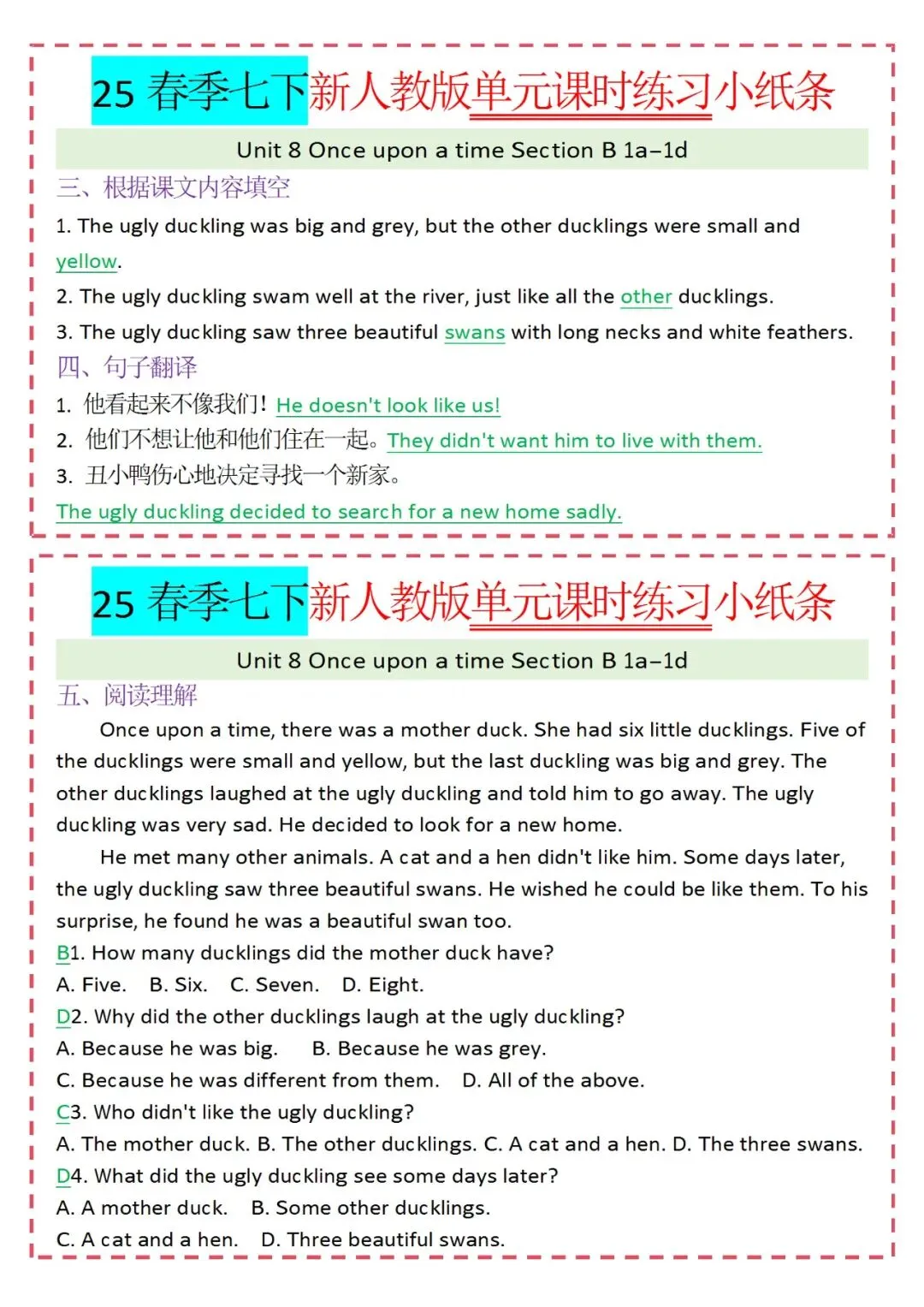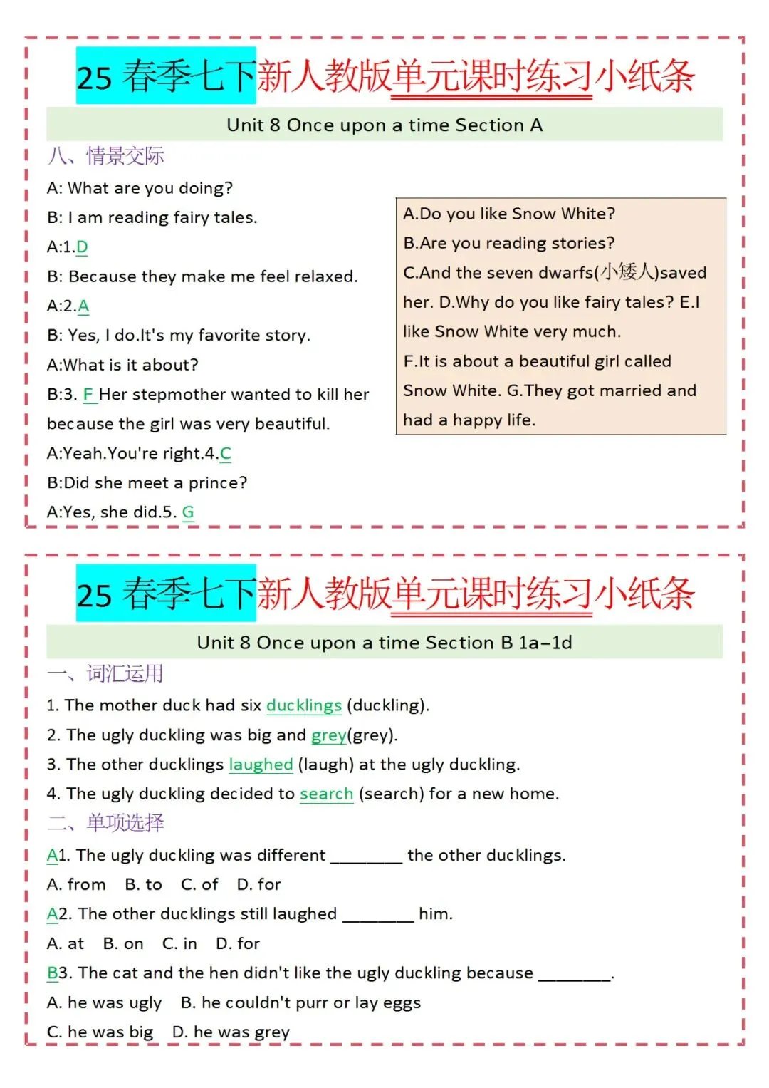 人教版英语七年级下册新教材学习资料包免费分享链接: