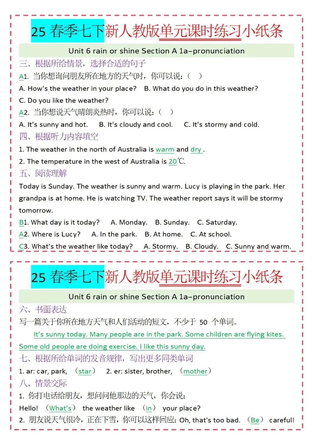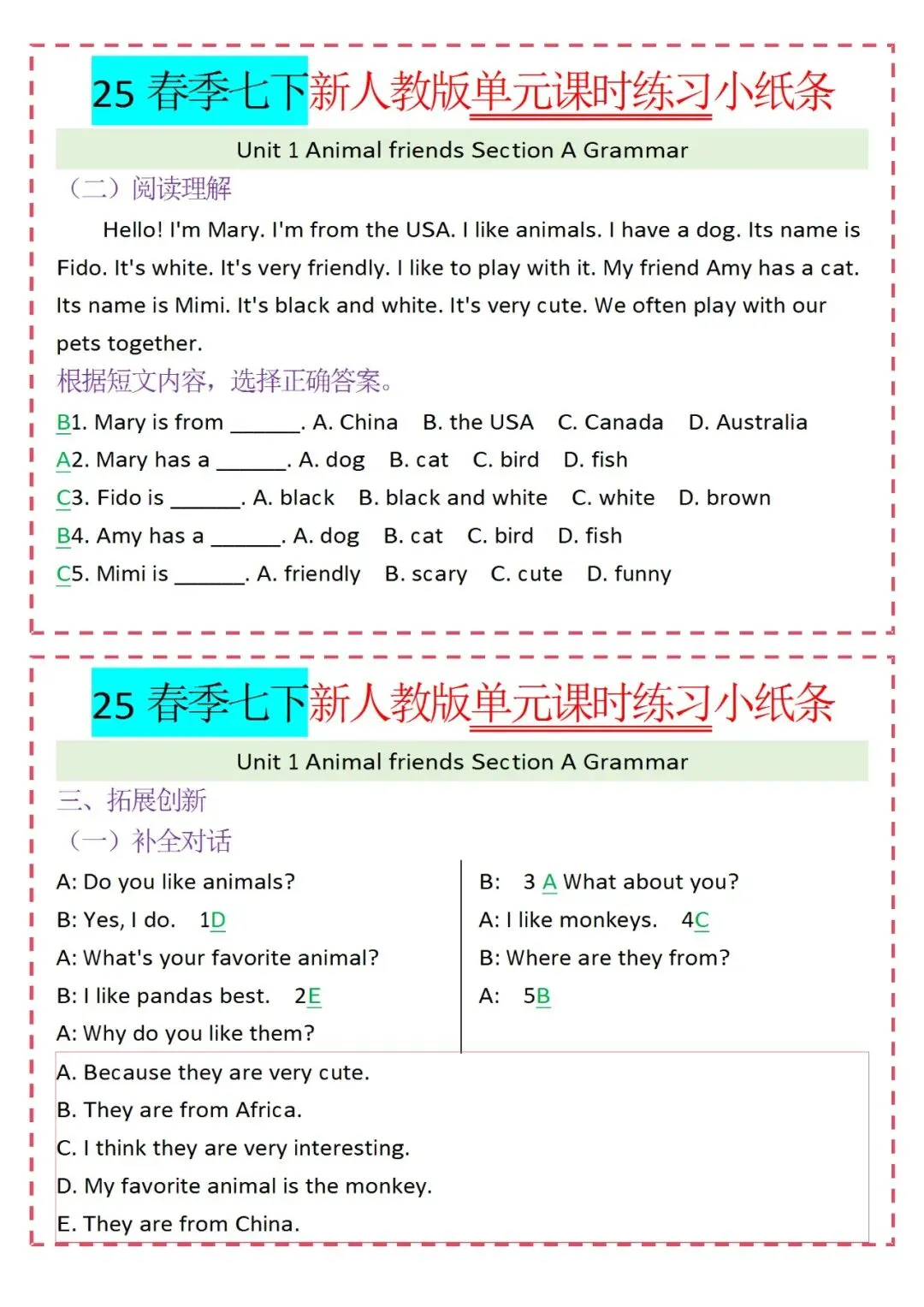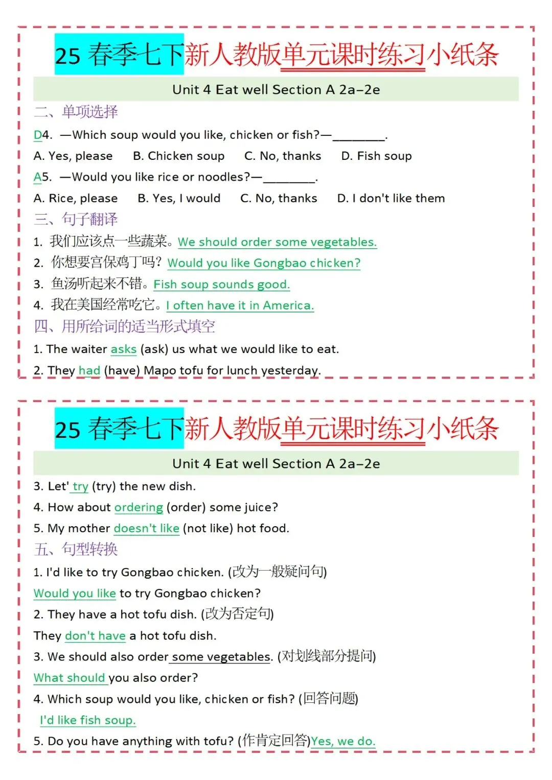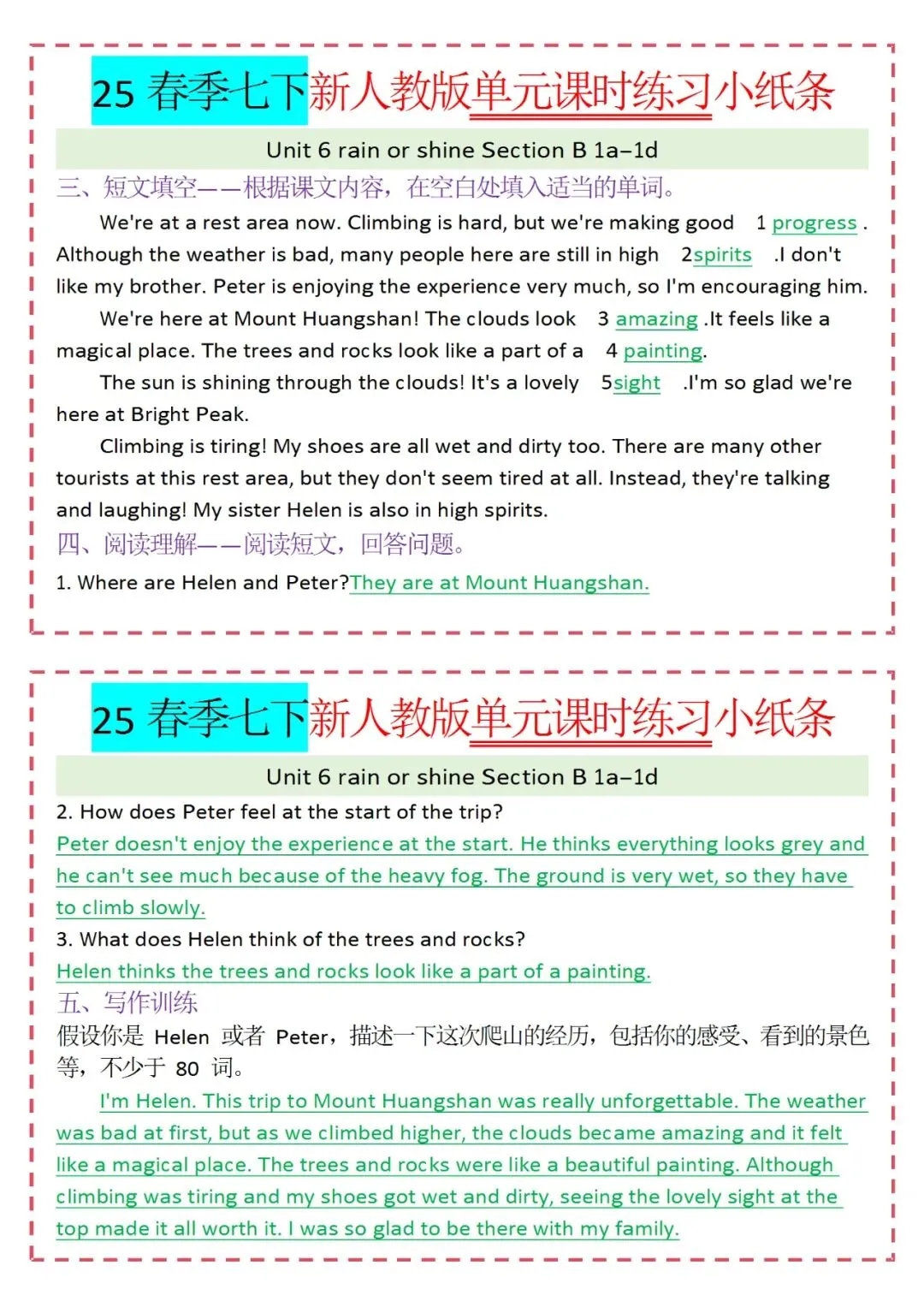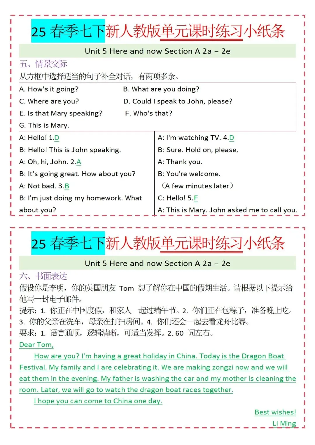 人教版英语七年级下册新教材学习资料包免费分享链接: