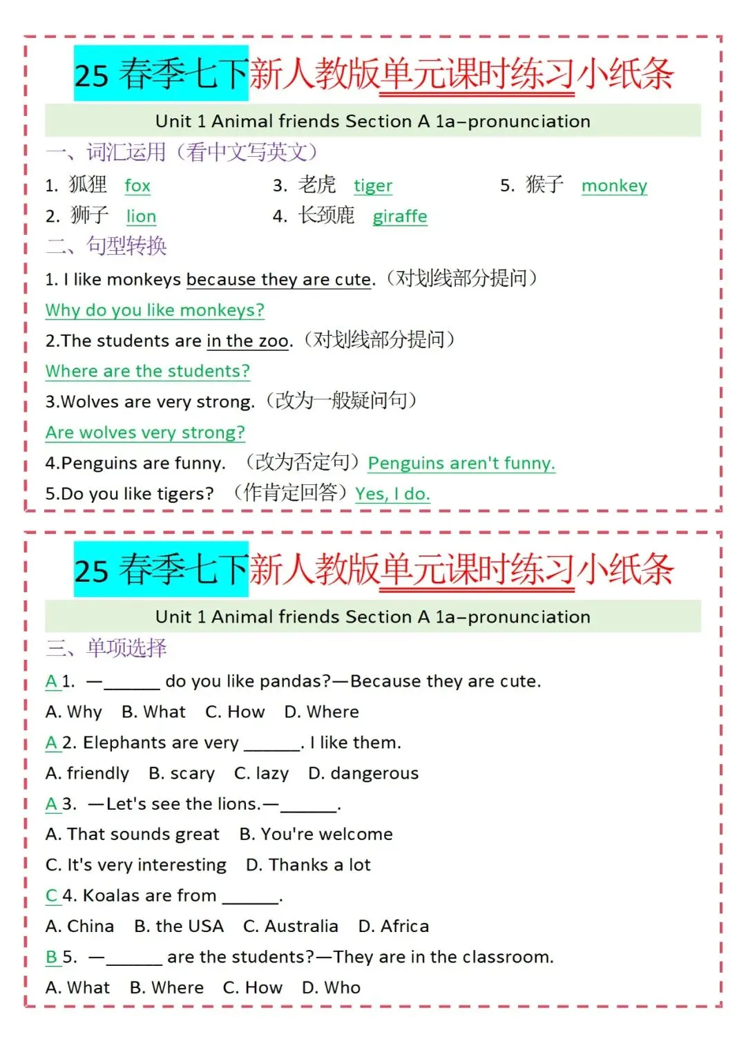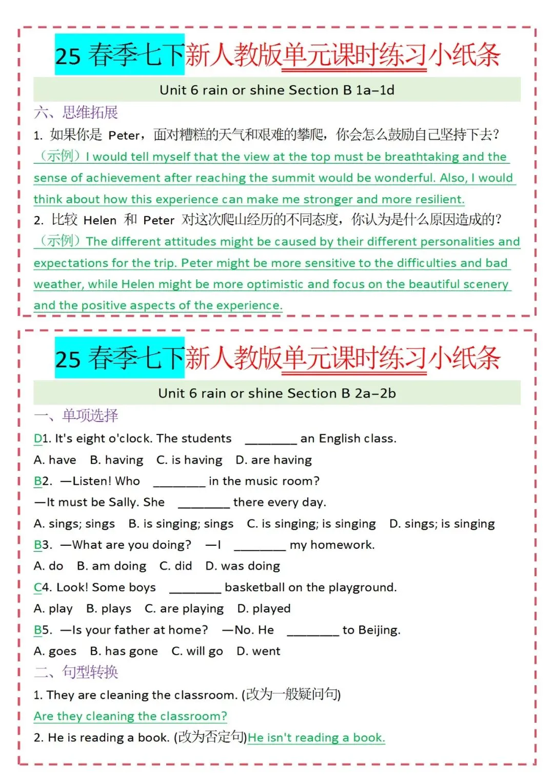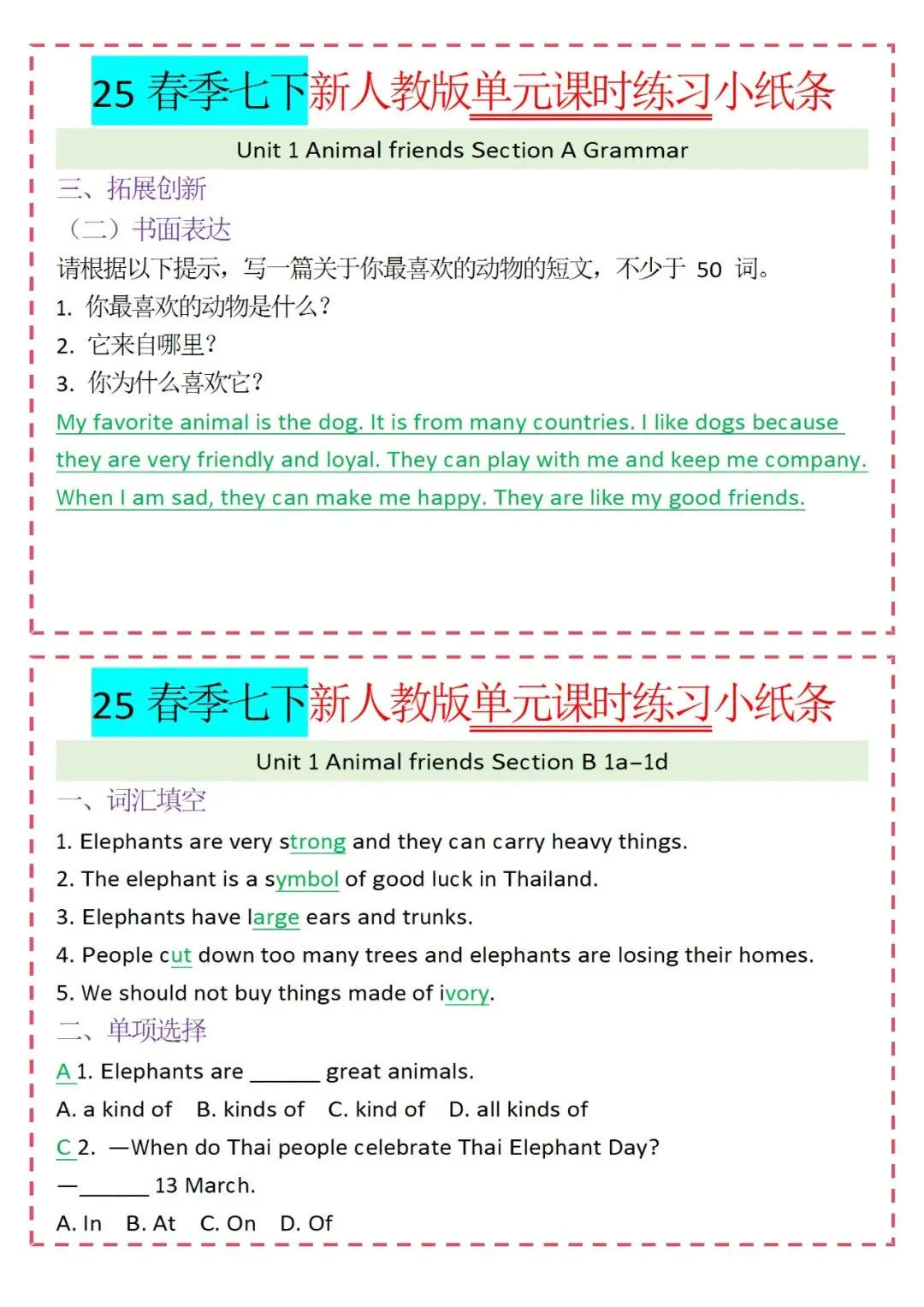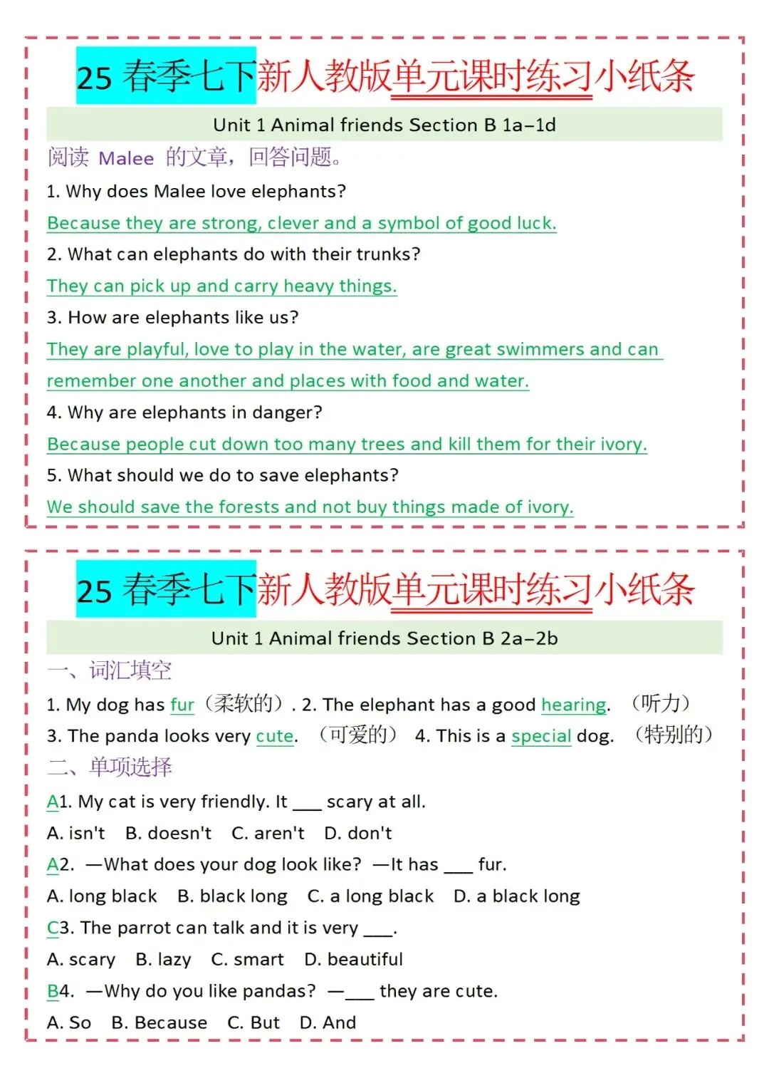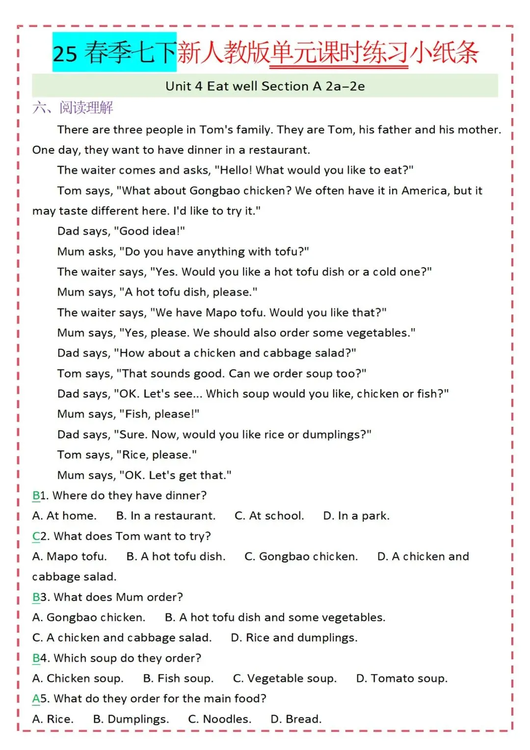 人教版英语七年级下册新教材学习资料包免费分享链接: