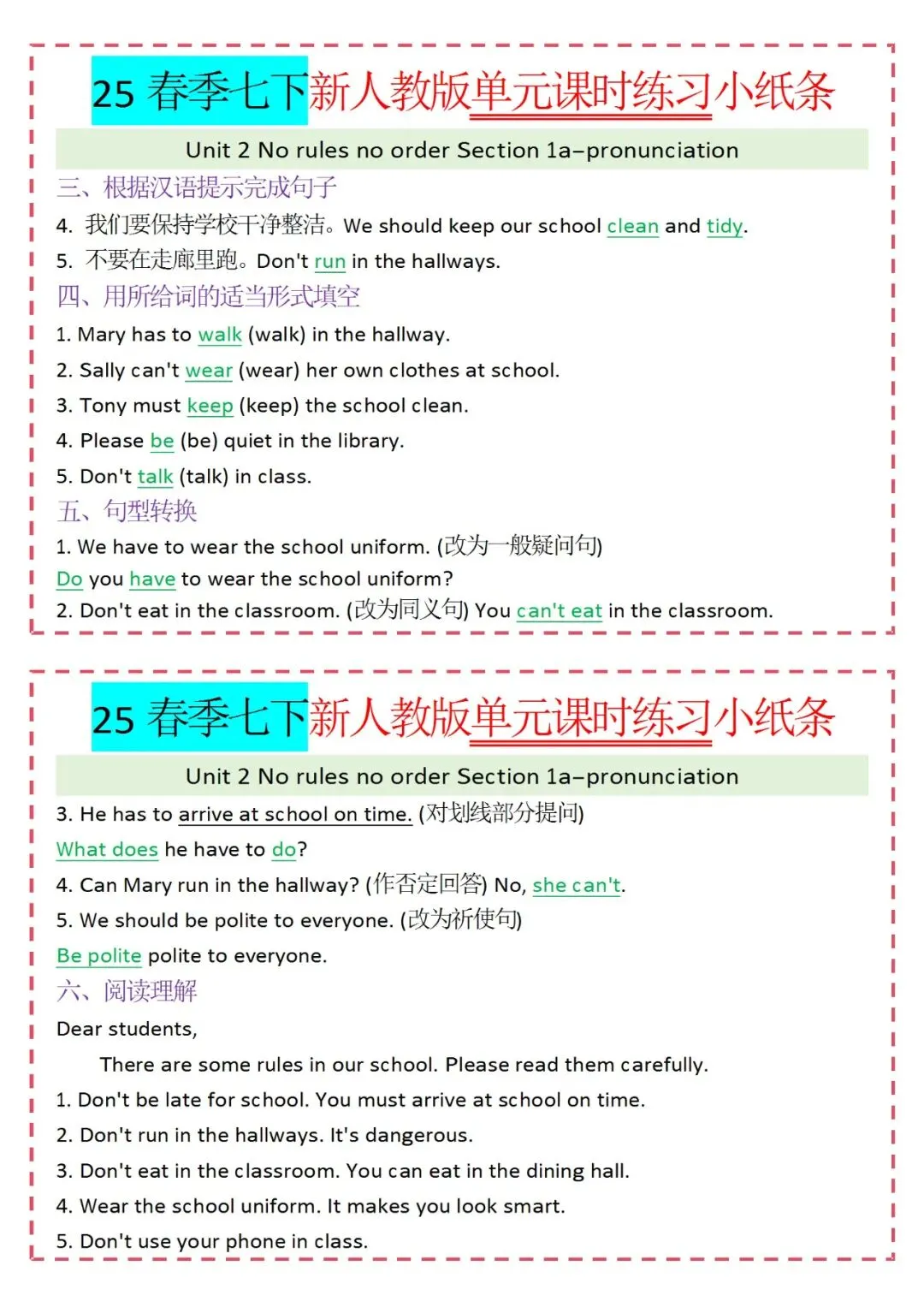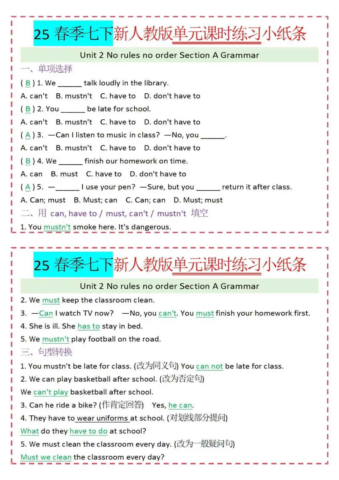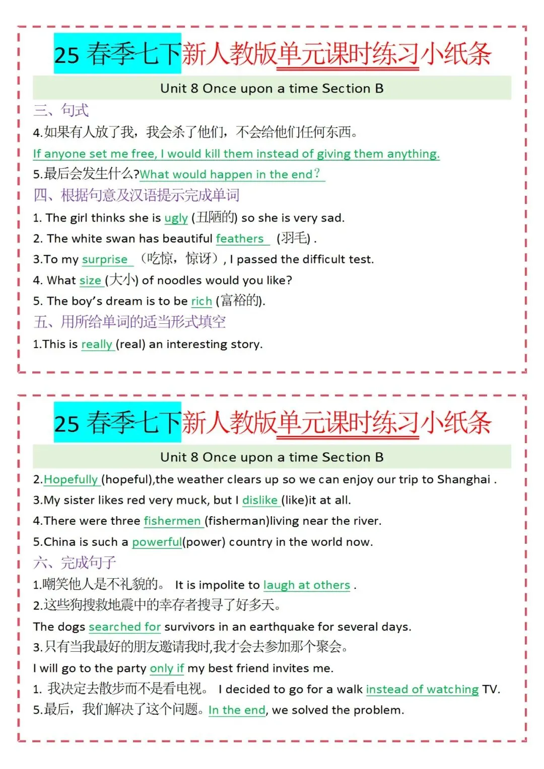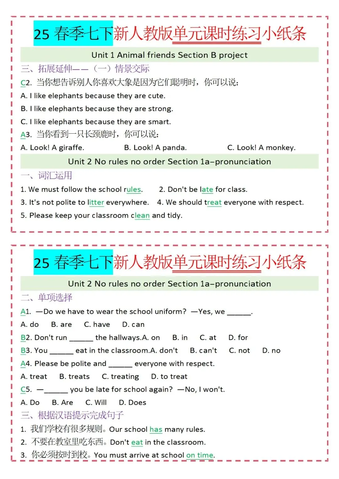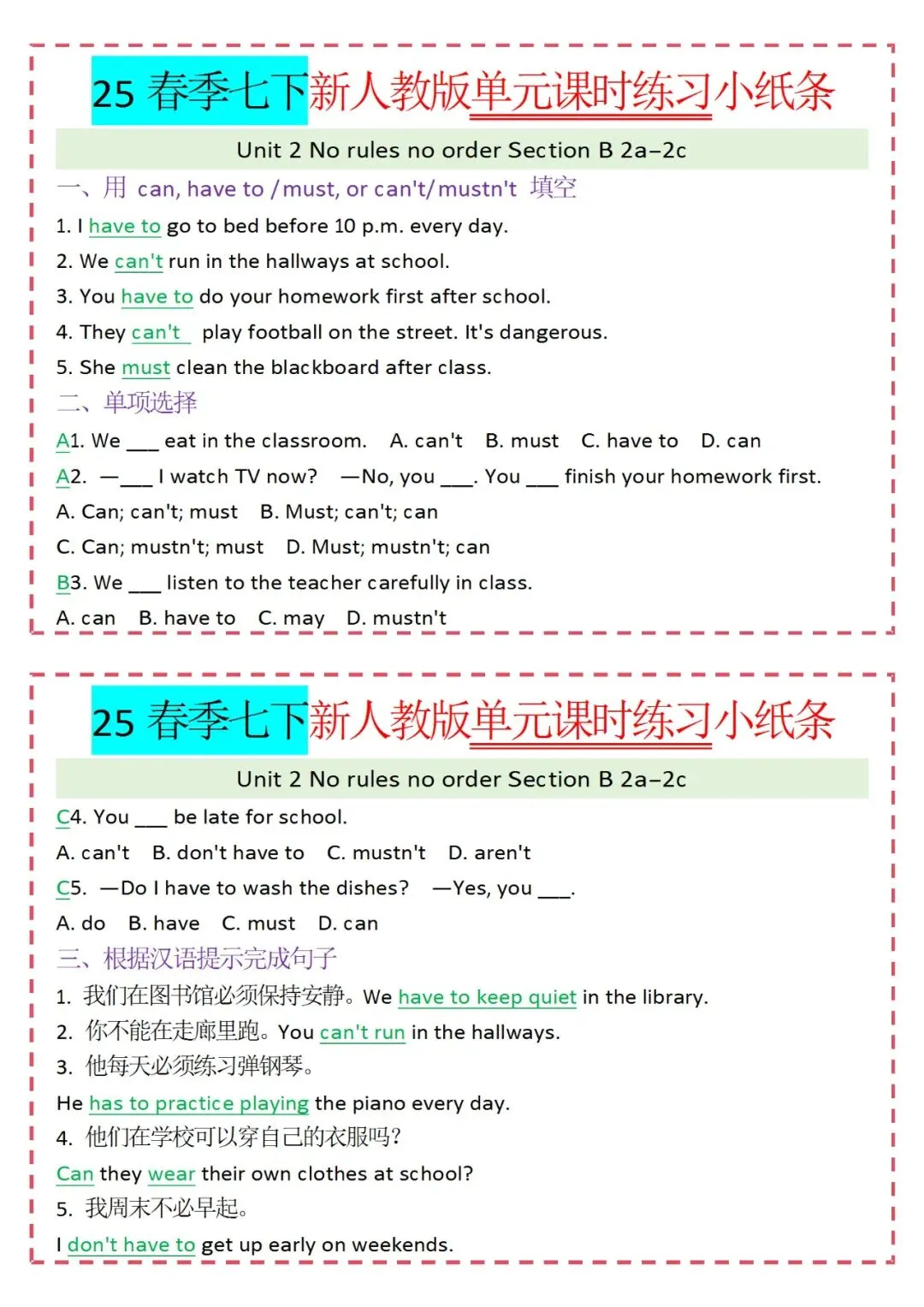各类练习小纸条都有,直接下载!