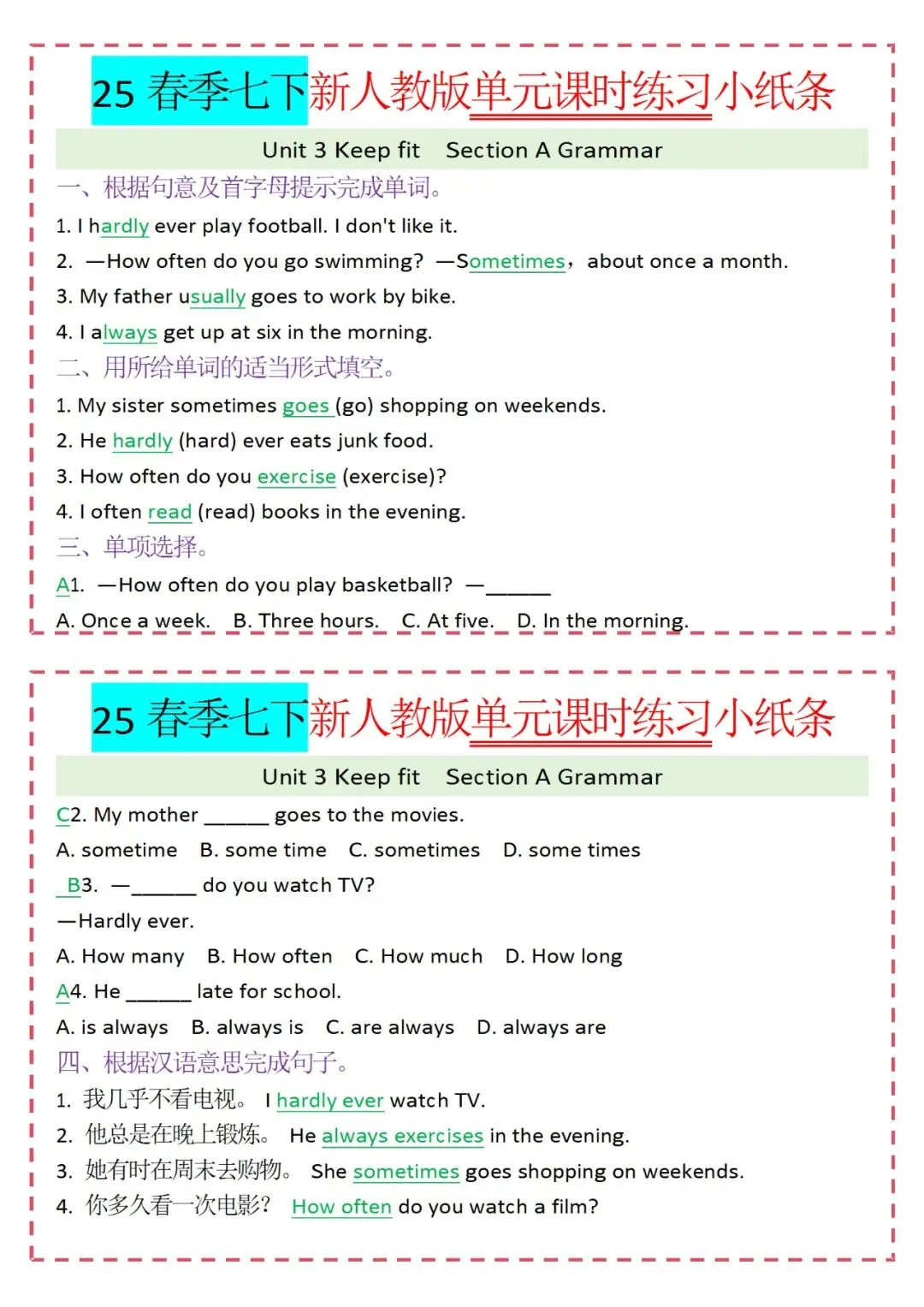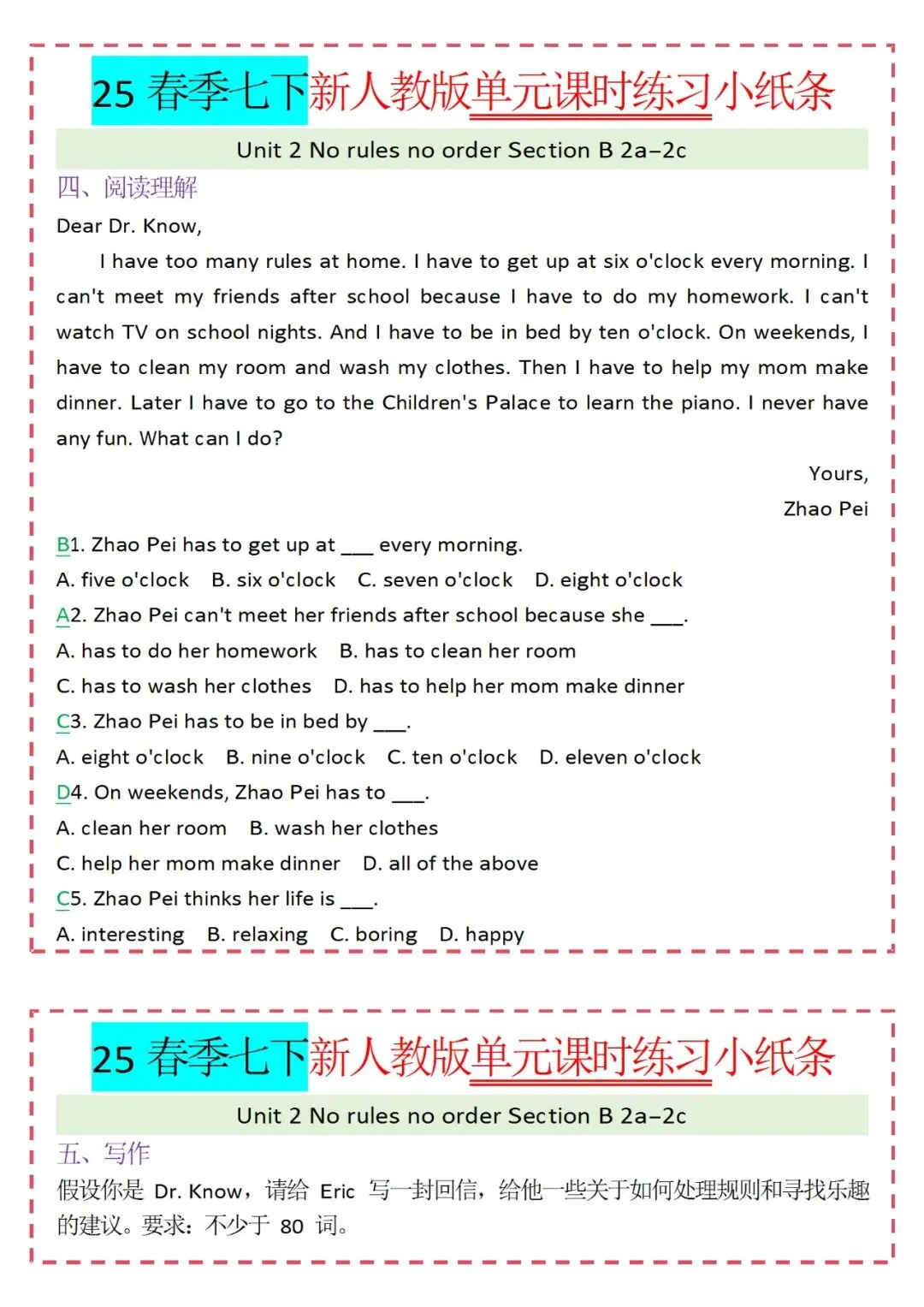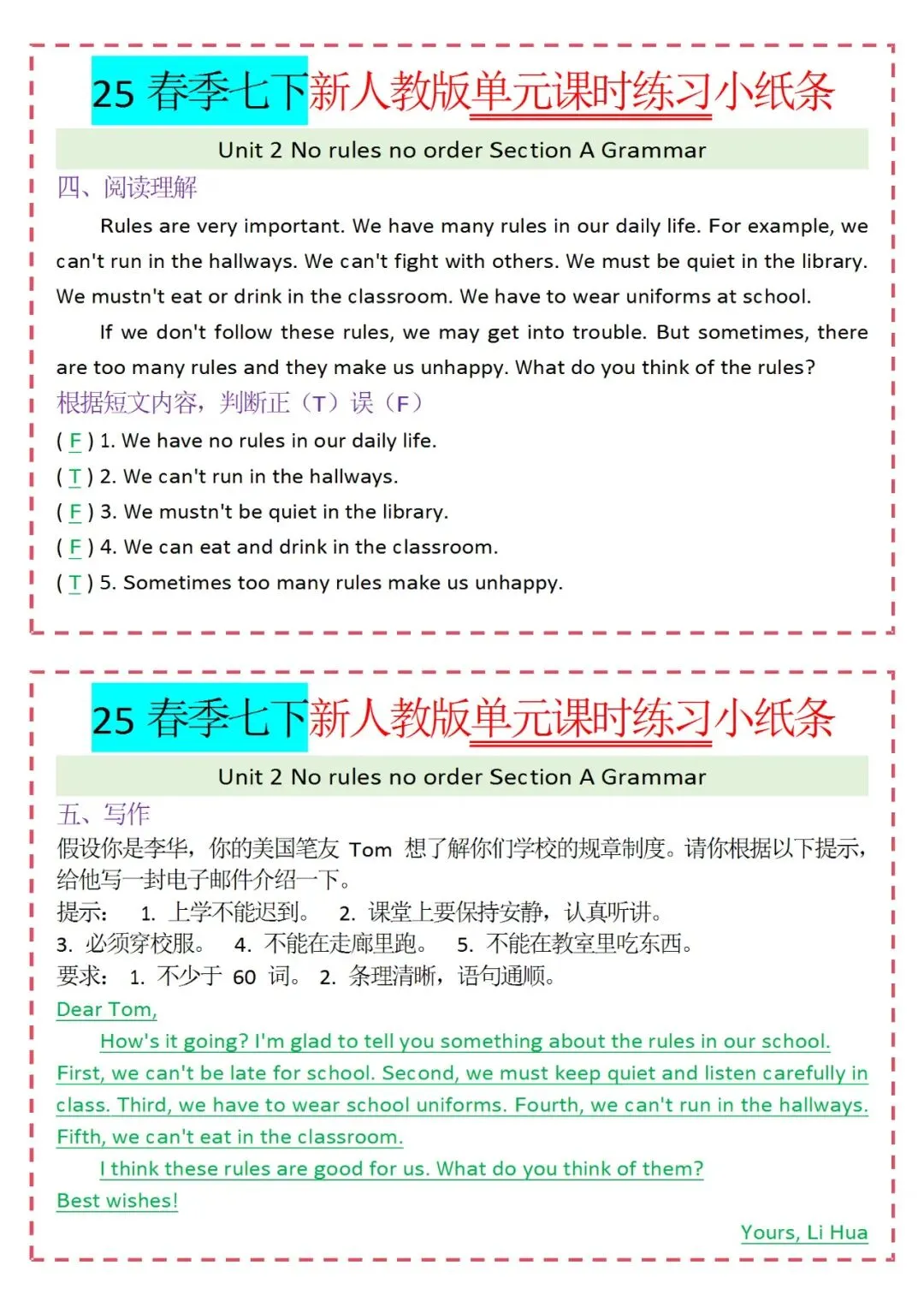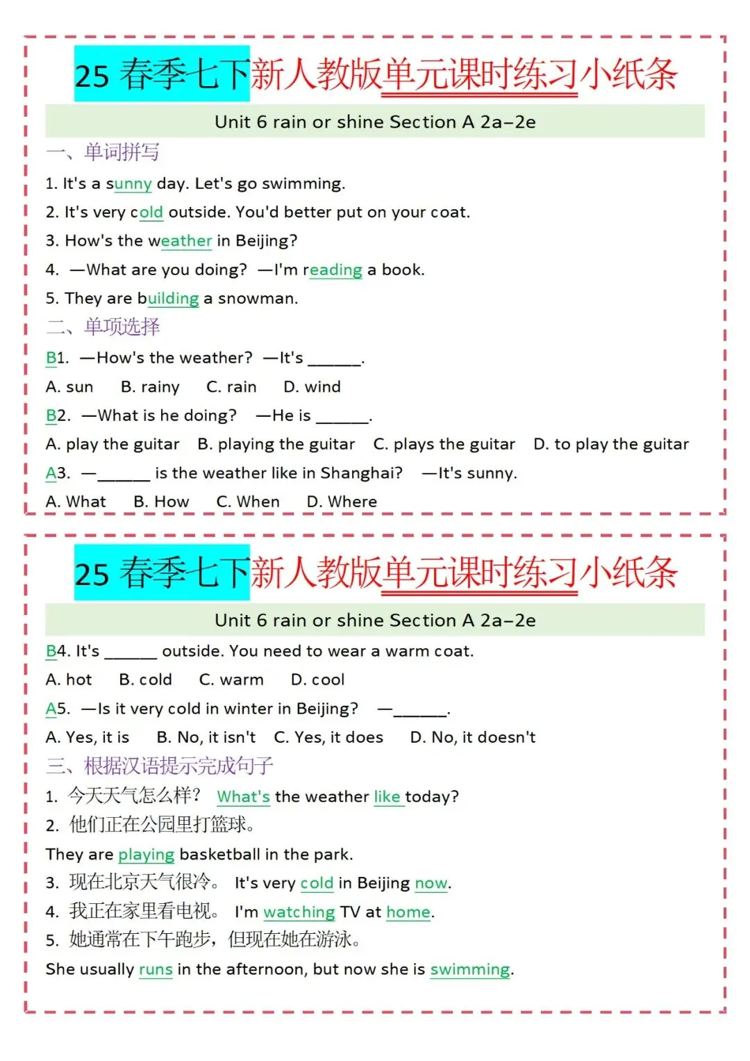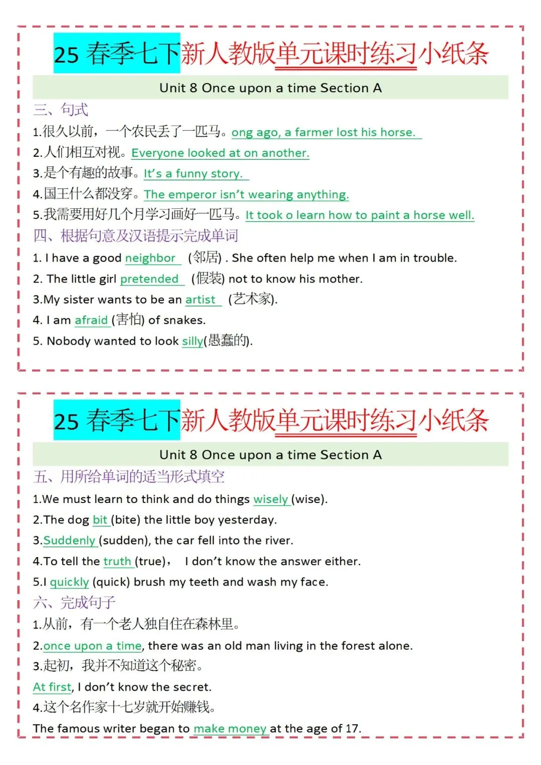 各类练习小纸条都有,直接下载!
