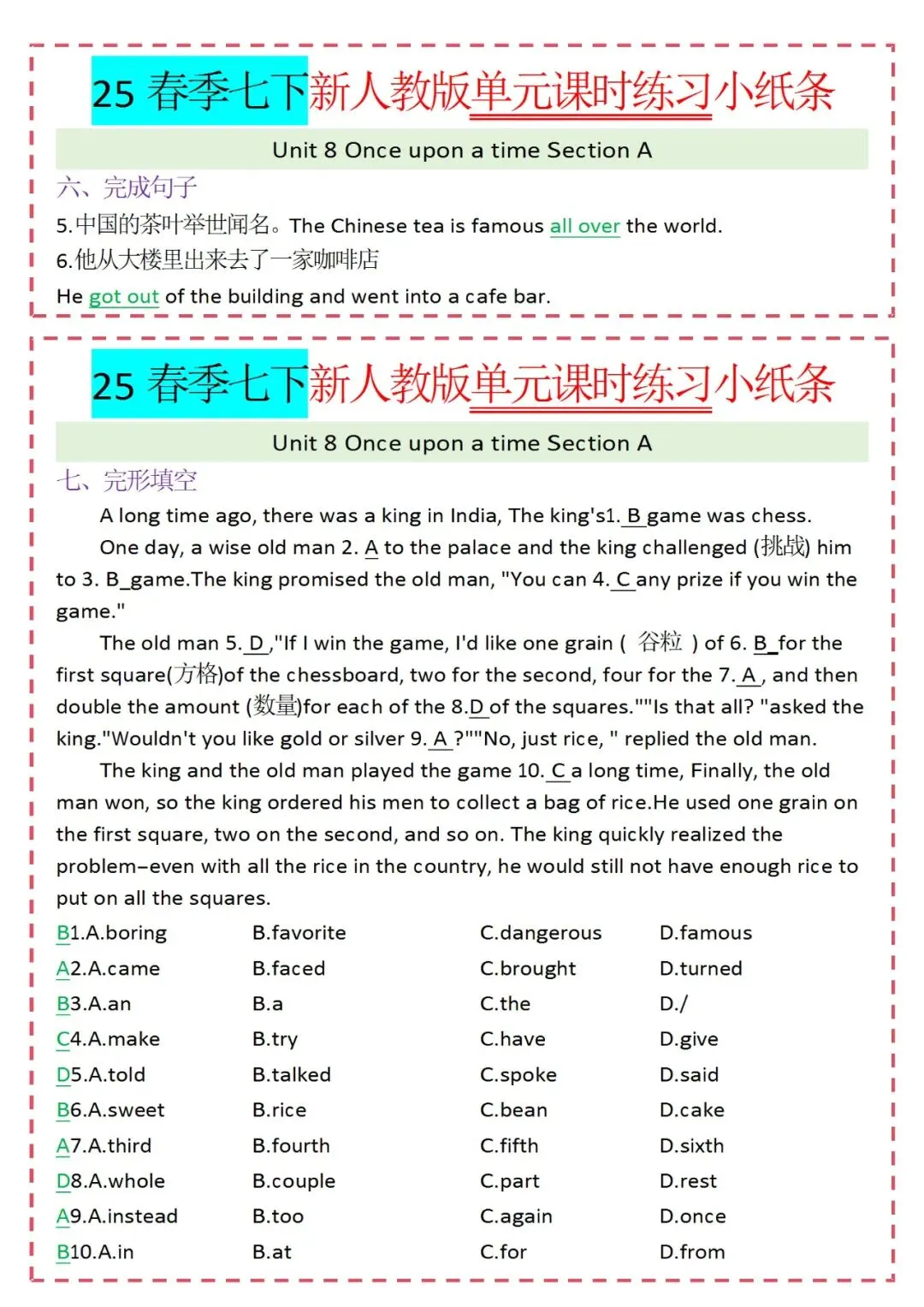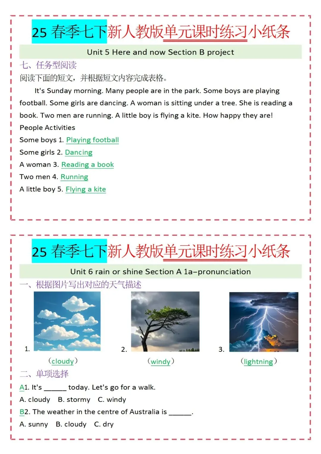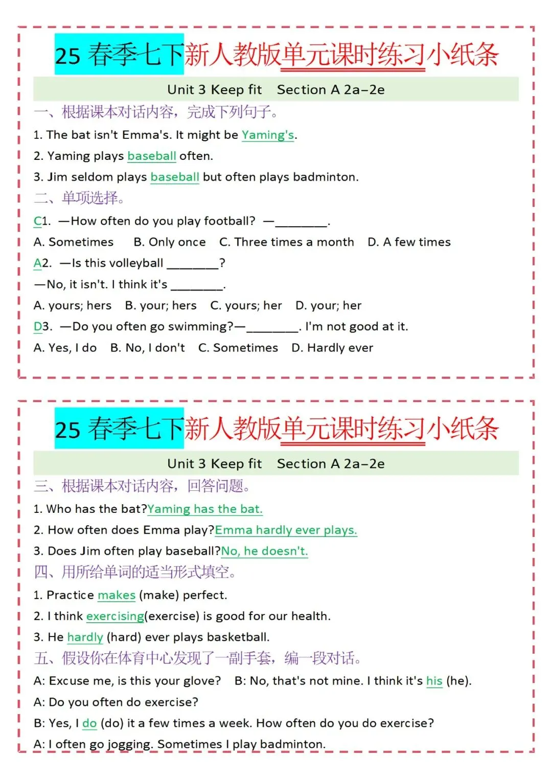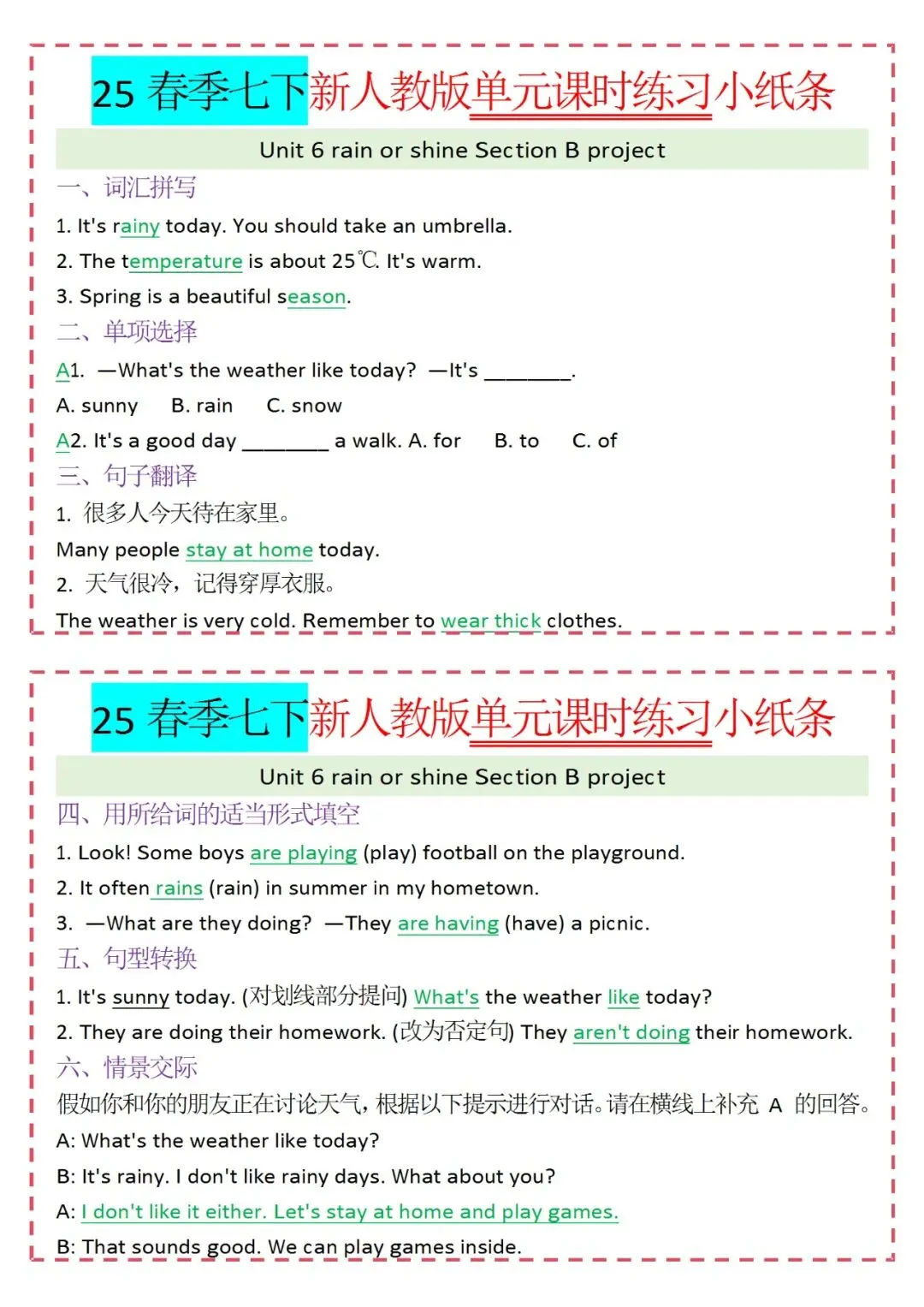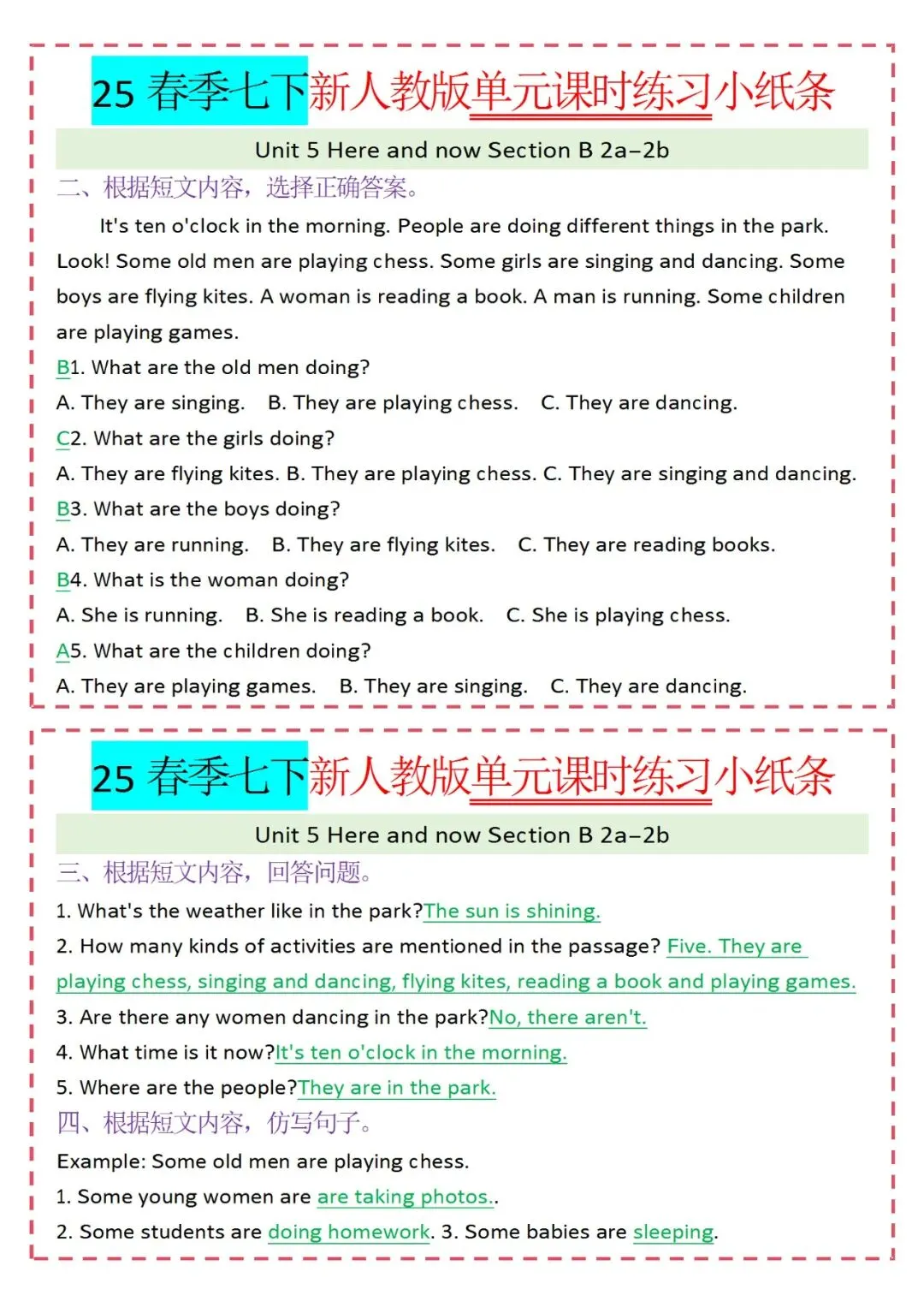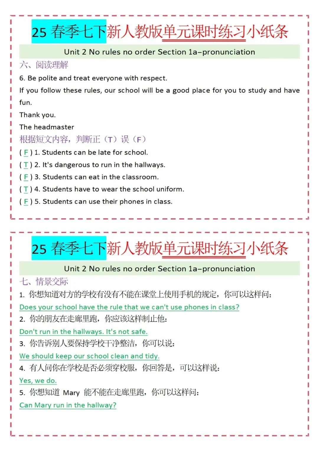各类练习小纸条都有,直接下载!