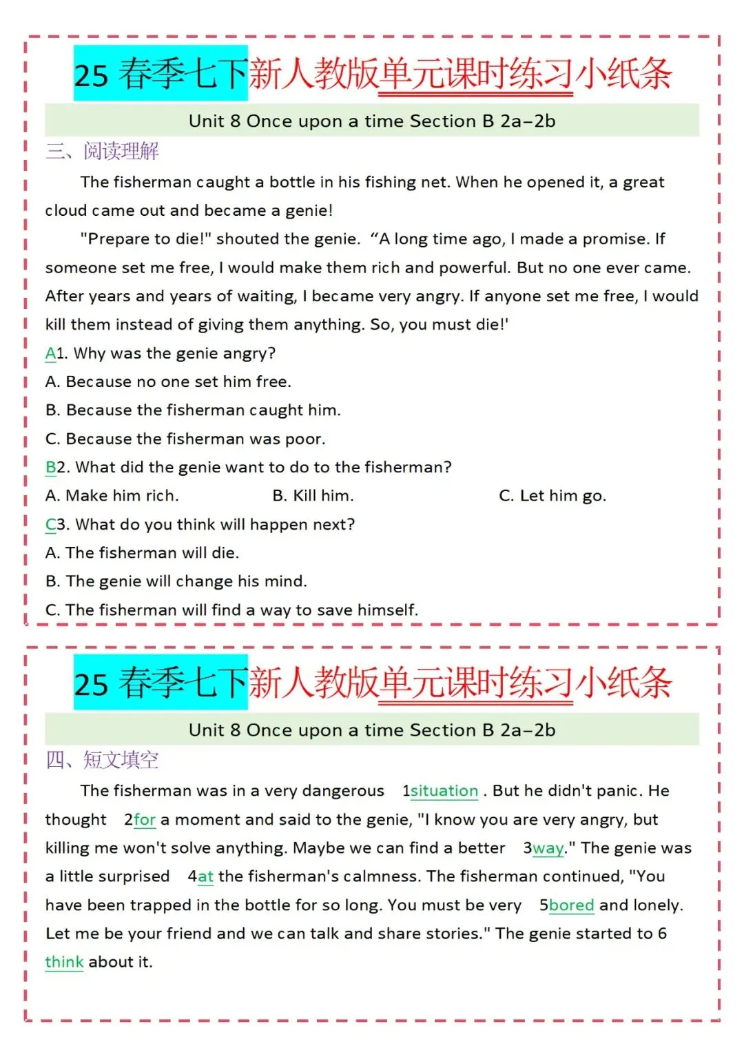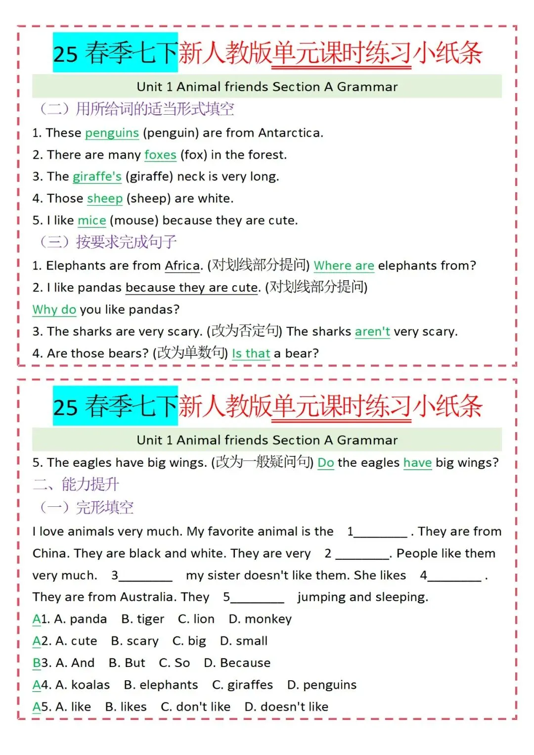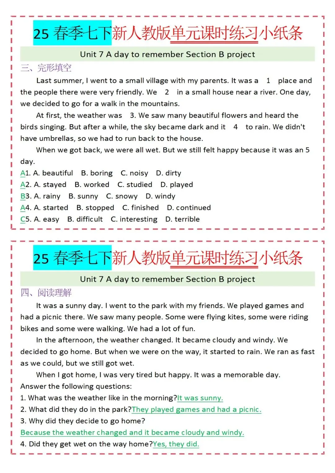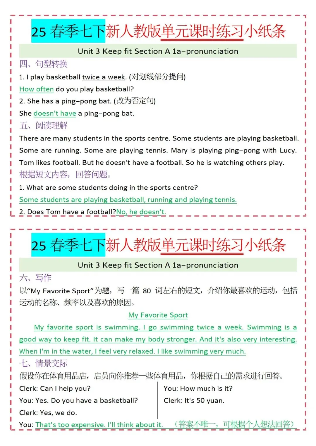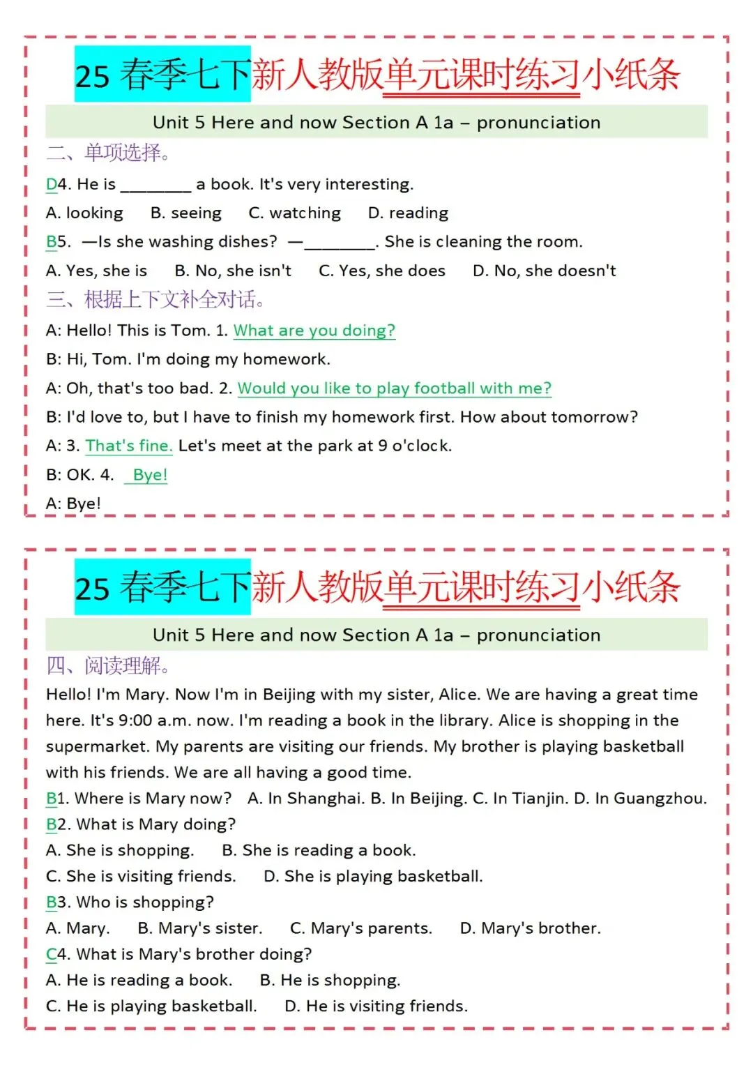 各类练习小纸条都有,直接下载!