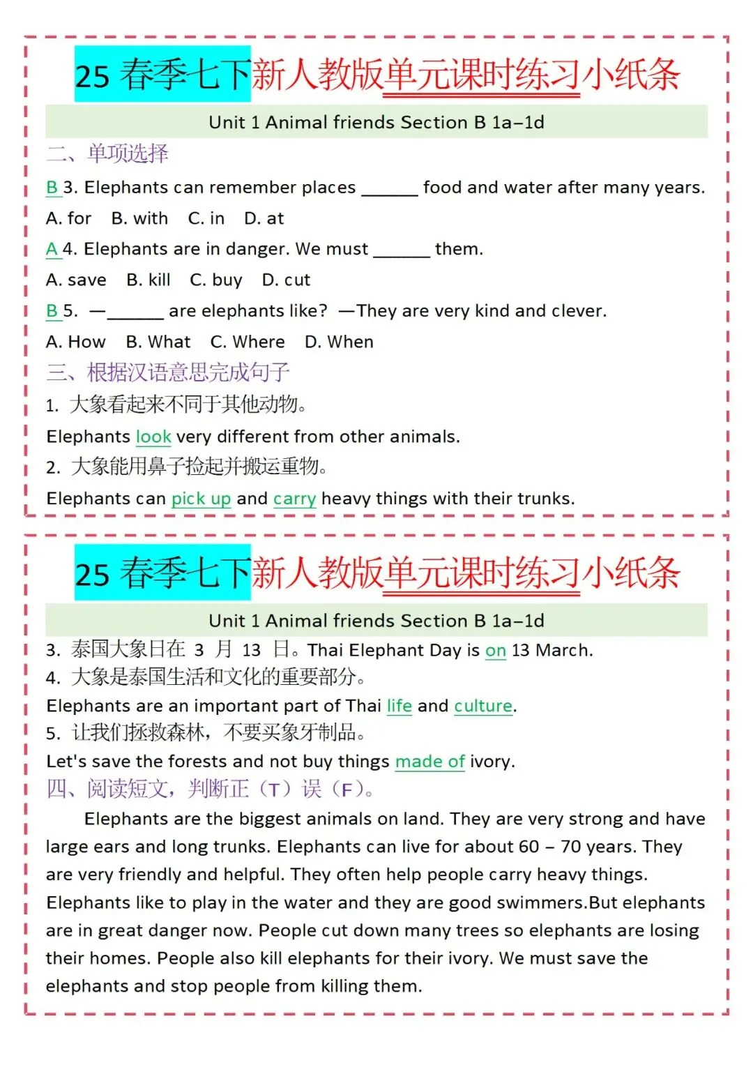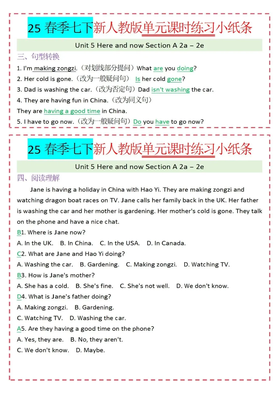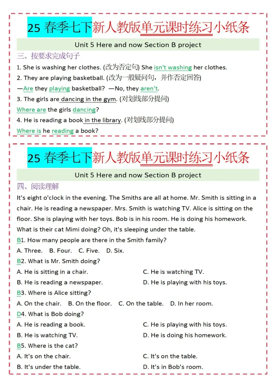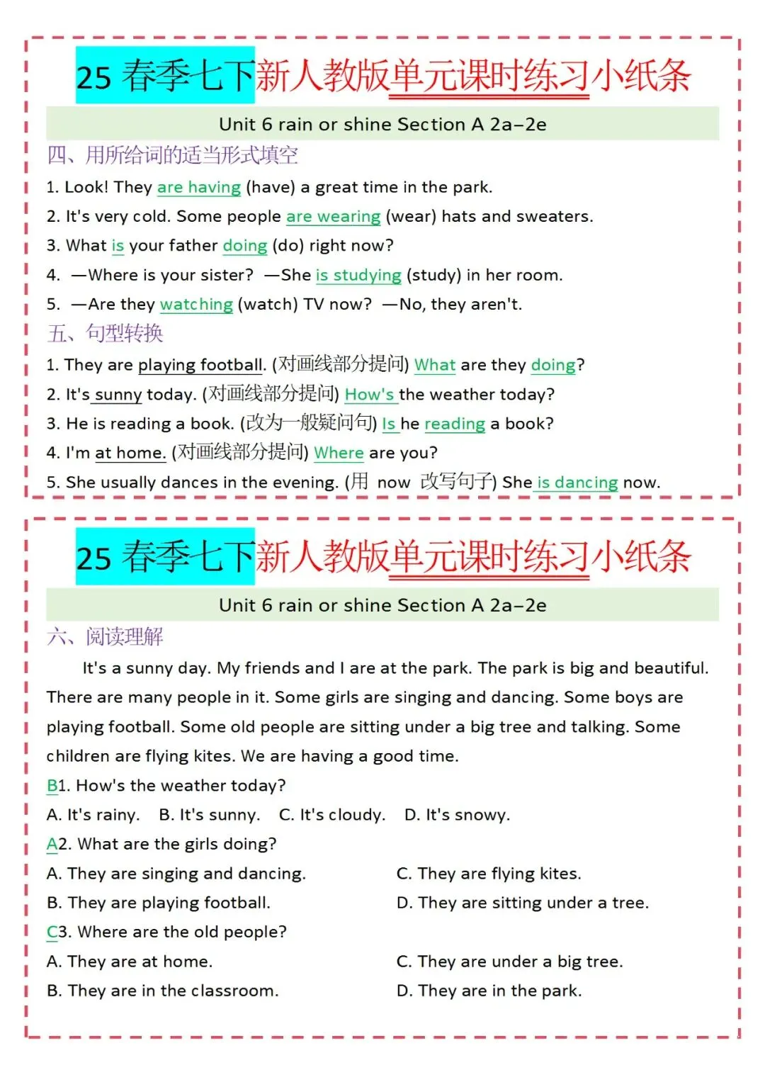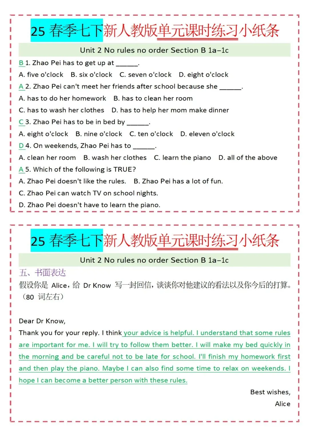 各类练习小纸条都有,直接下载!