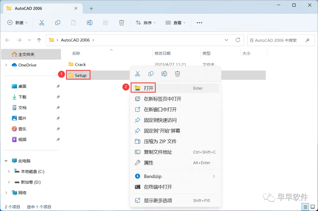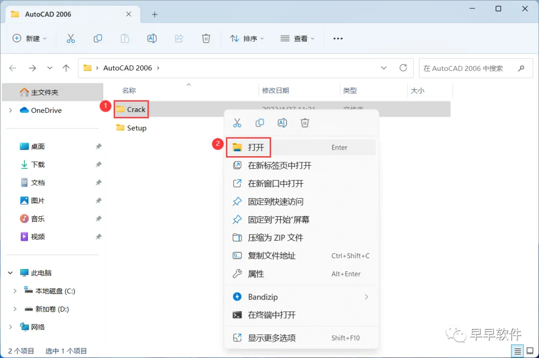 20、回到AutoCAD 2006文件夹,找到【Crack】文件夹,右键【打开】它