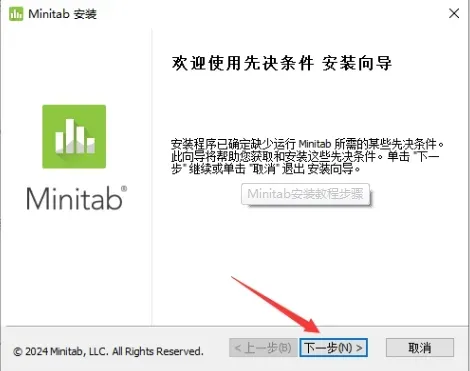3. 欢迎使用 Minitab 安装向导,点击【下一步】。