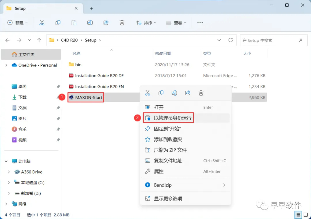 4、找到【MAXON-Start】应用程序,右键选择【以管理员身份运行】它