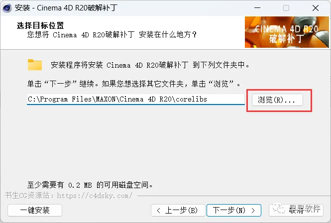 17、补丁安装路径需要与C4D安装路径一致,步骤11可查看,再点击【下一步】