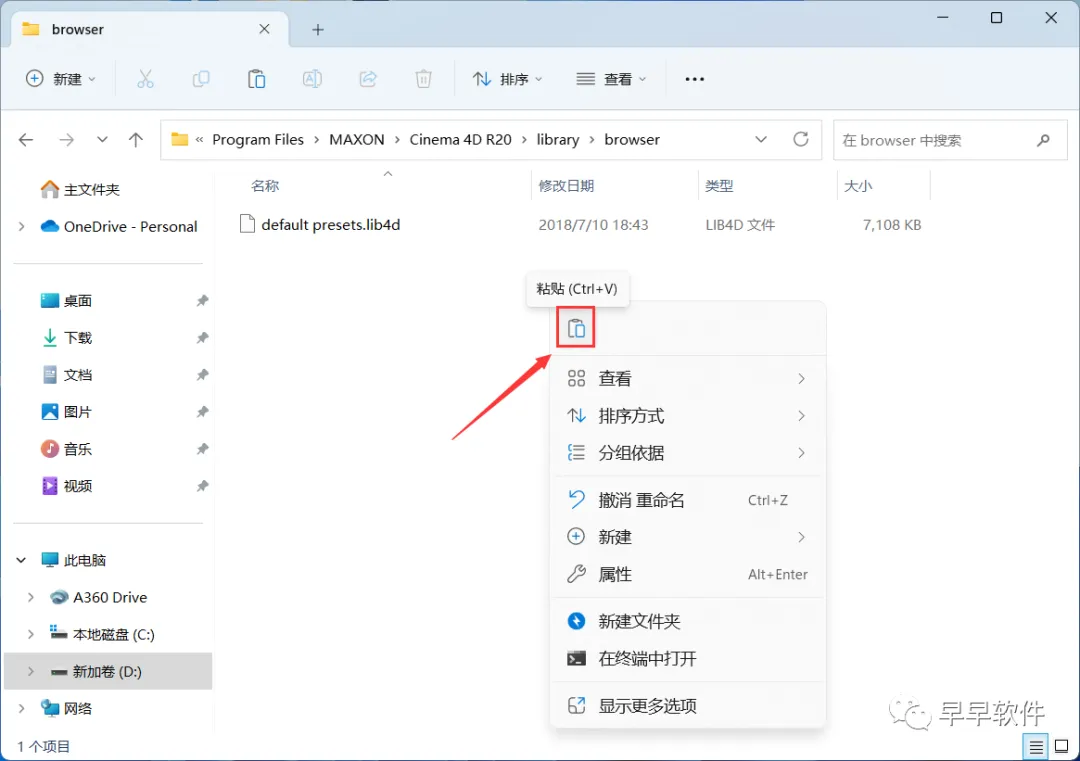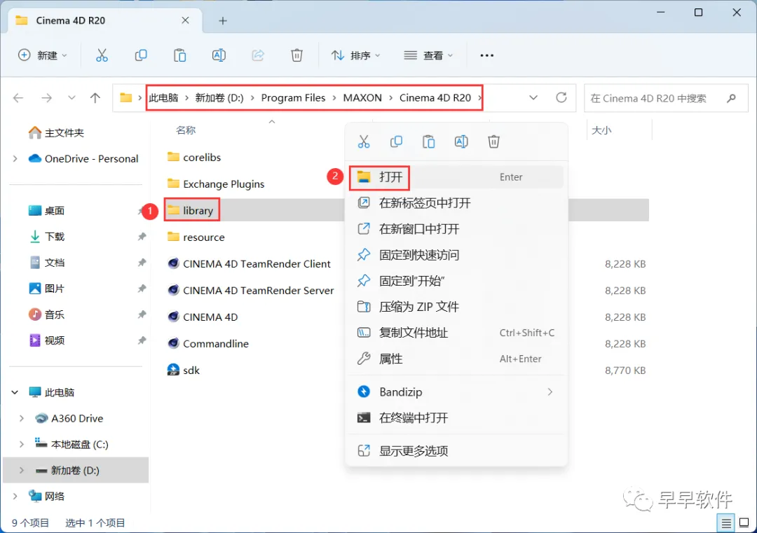 21、回到C4D R20文件夹,找到【预设库】文件夹,右键【打开】它
