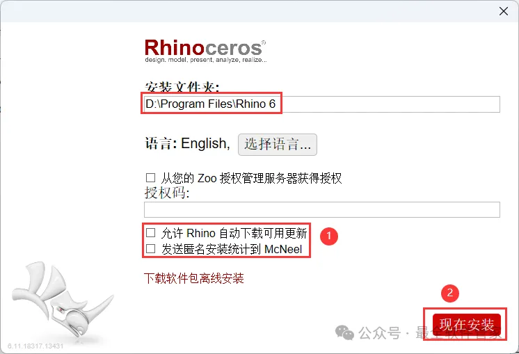 5、软件默认安装在C盘,可自定义更改软件安装位置,这里小编选择安装在D盘;全部不勾选,再点击【现在安装】