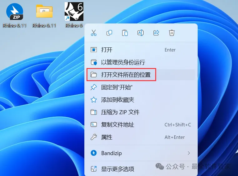 11、回到桌面,右键桌面上的【Rhino 6软件图标】,点击【打开文件所在的位置】
