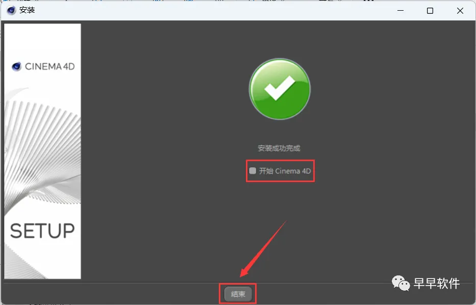 13、不勾选【开始 Cinema 4D】,再点击【结束】