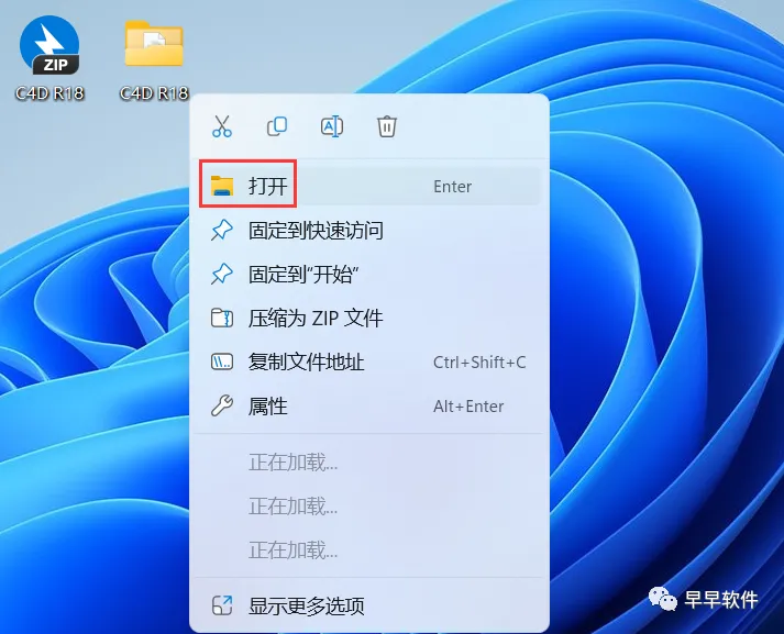 14、回到桌面,右键桌面上的【Cinema 4D R18软件图标】,点击【打开】