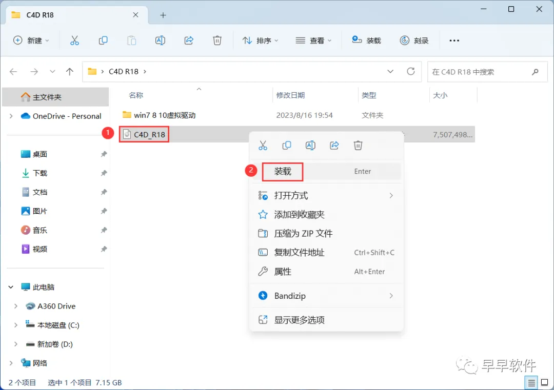 3、找到【C4D_R18】文件,右键点击【装载】