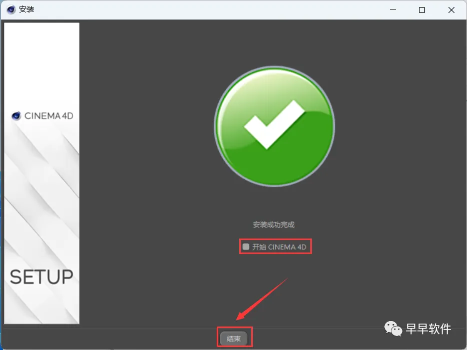 13、不勾选【开始 Cinema 4D】,再点击【结束】