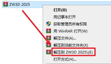 1.选中下载的安装包,右键选择解压到“ZW3D 2025”