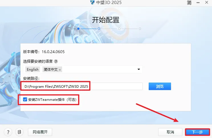 3.选择软件安装路径,安装路径不要出现中文,勾选“安装插件”点,击”下一步”
