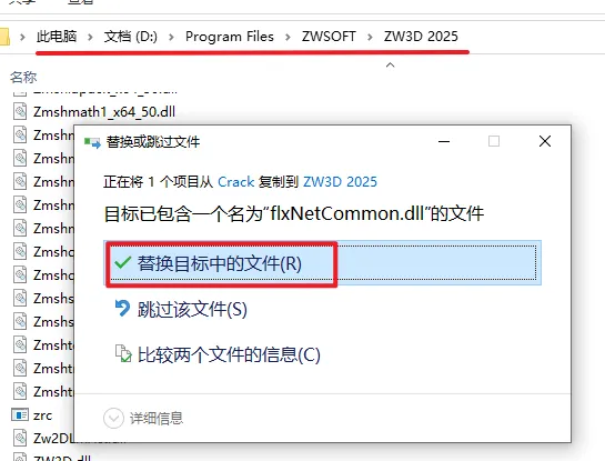 10.粘贴复制的文件到该路径下,选择“替换目标中的文件”