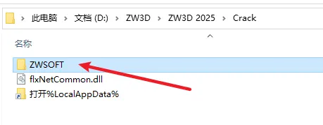 11.返回安装文件夹,双击打开“Crack”文件夹,复制”ZWSOFT“文件夹
