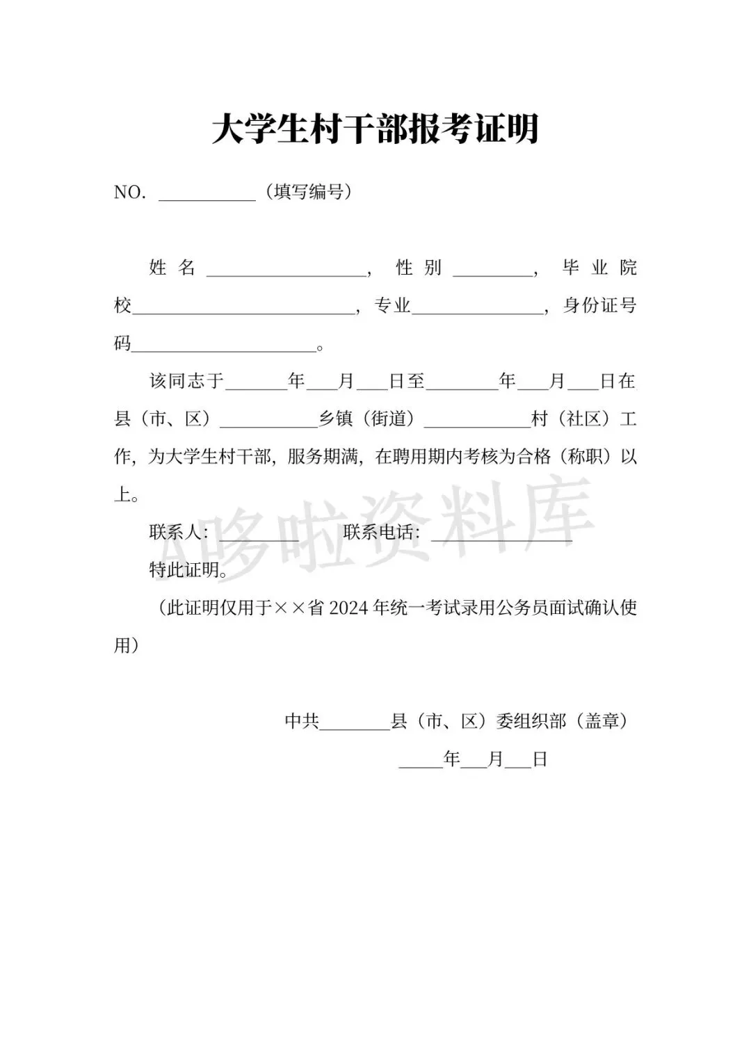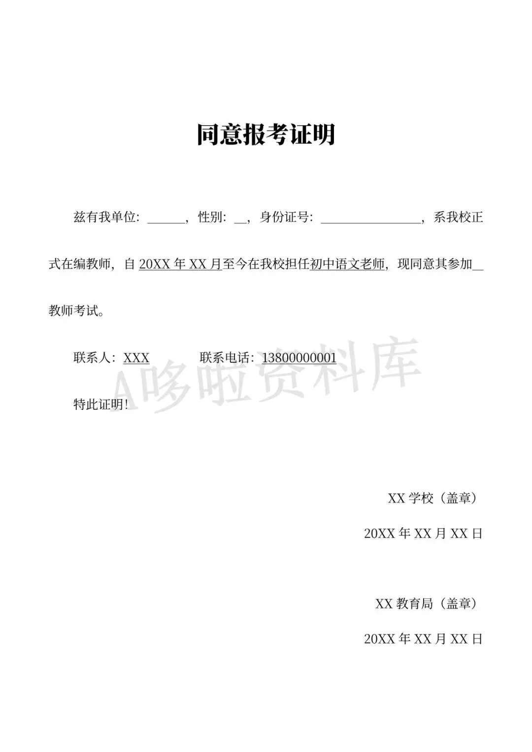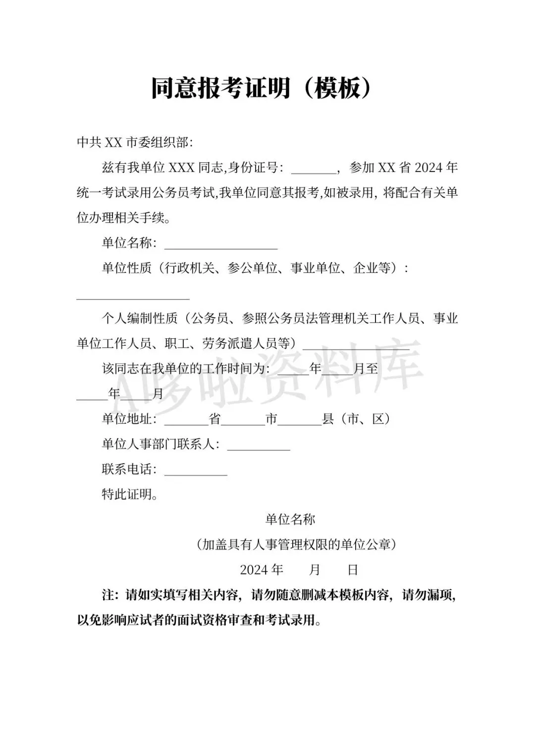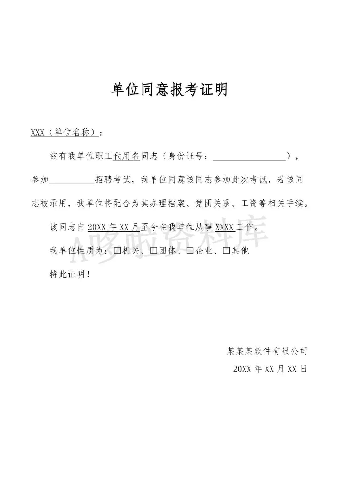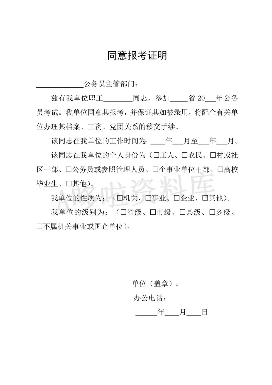 同意报考证明