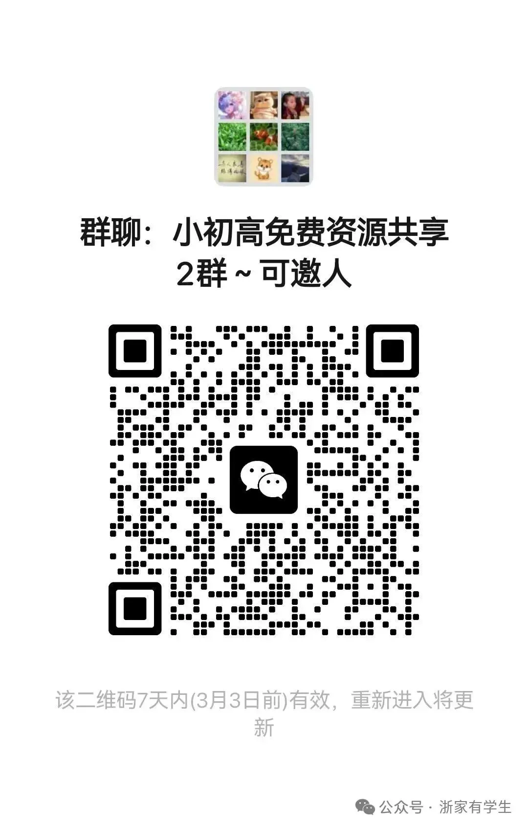 群二维码如过期可以关注本公主号“浙家有学生”