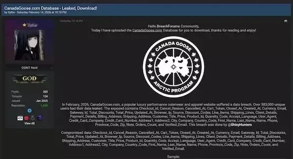 蒙特利尔日报称,“加拿大鹅”近60万名顾客的数据正在暗网中流传,此次攻击被归咎于黑客“ShinyHunters”。
