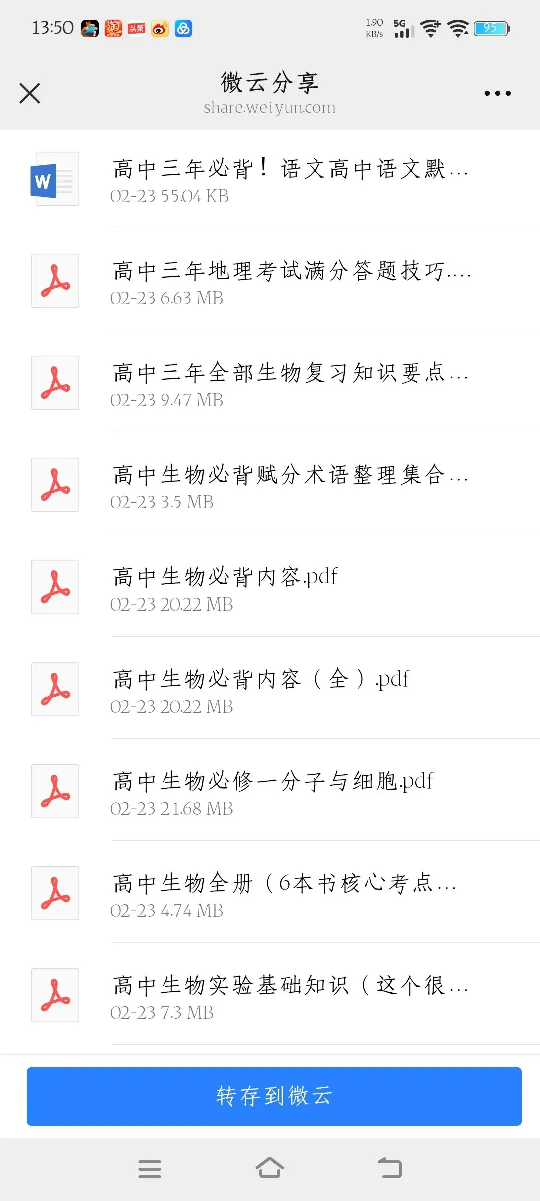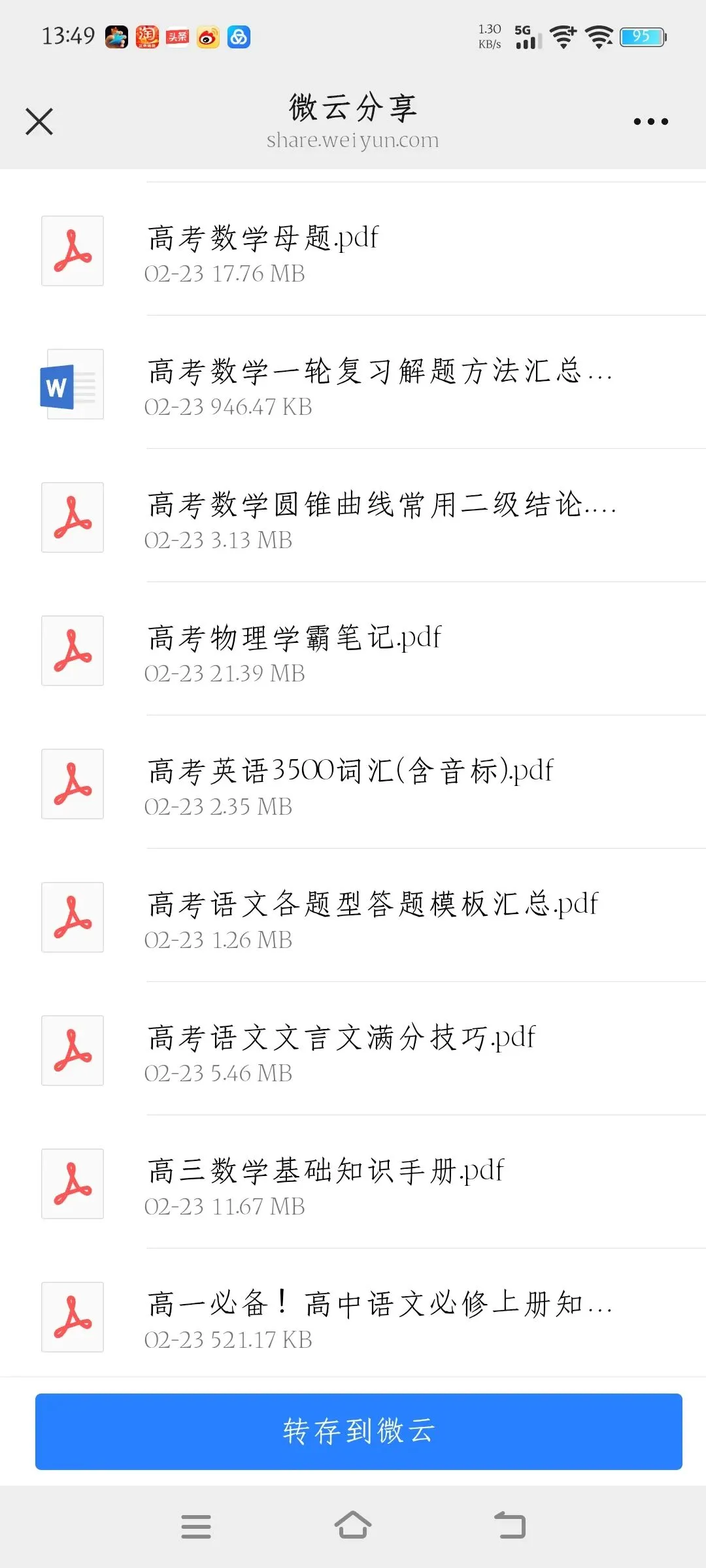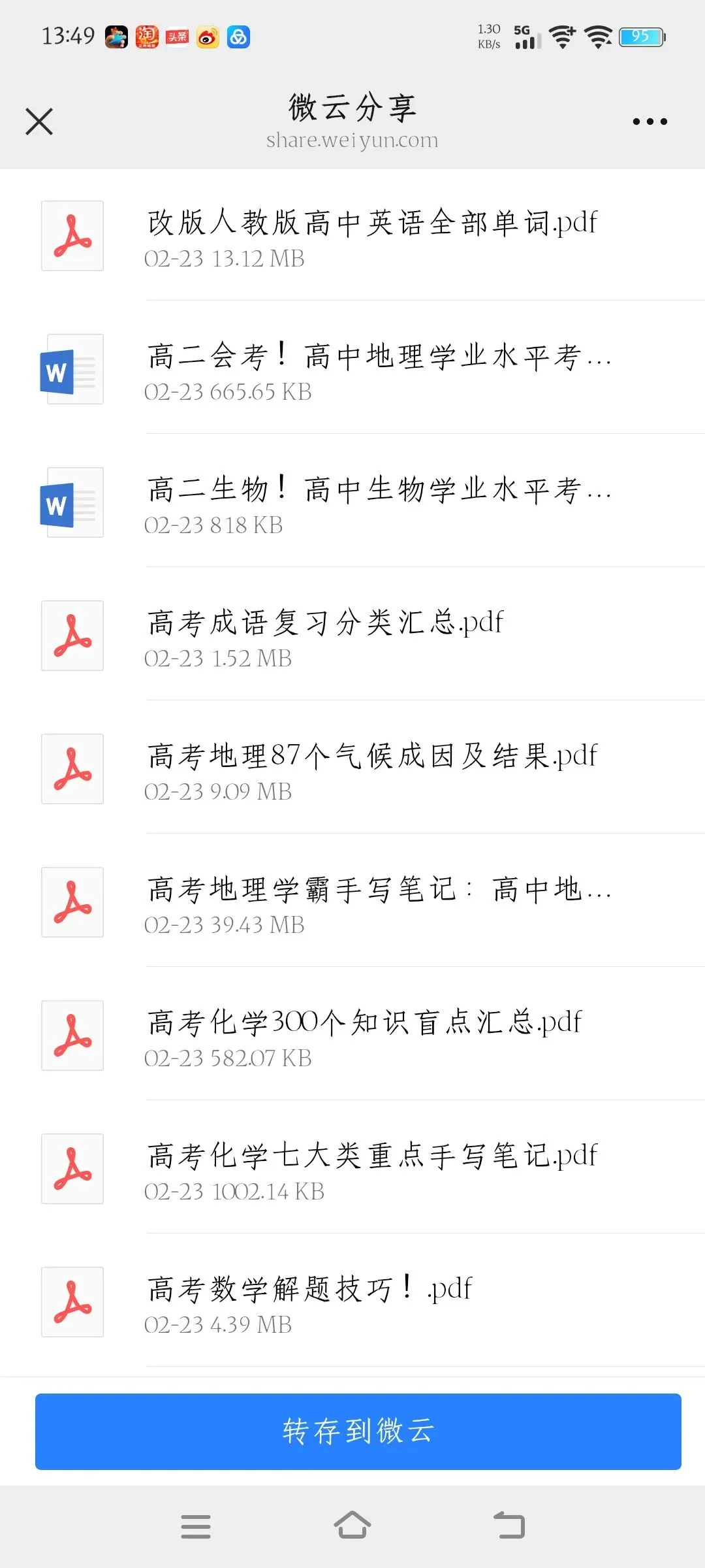 高中资料免费共享,用微云下载