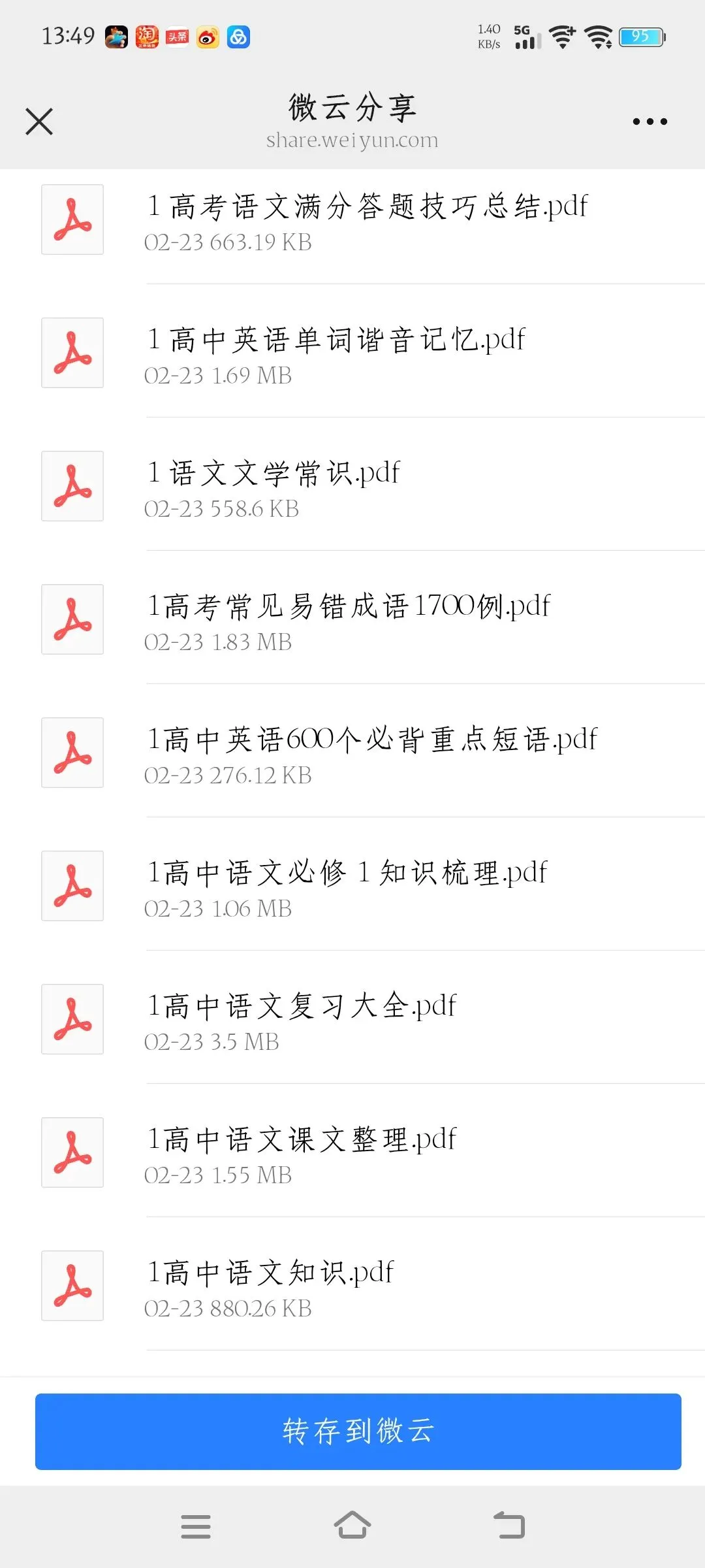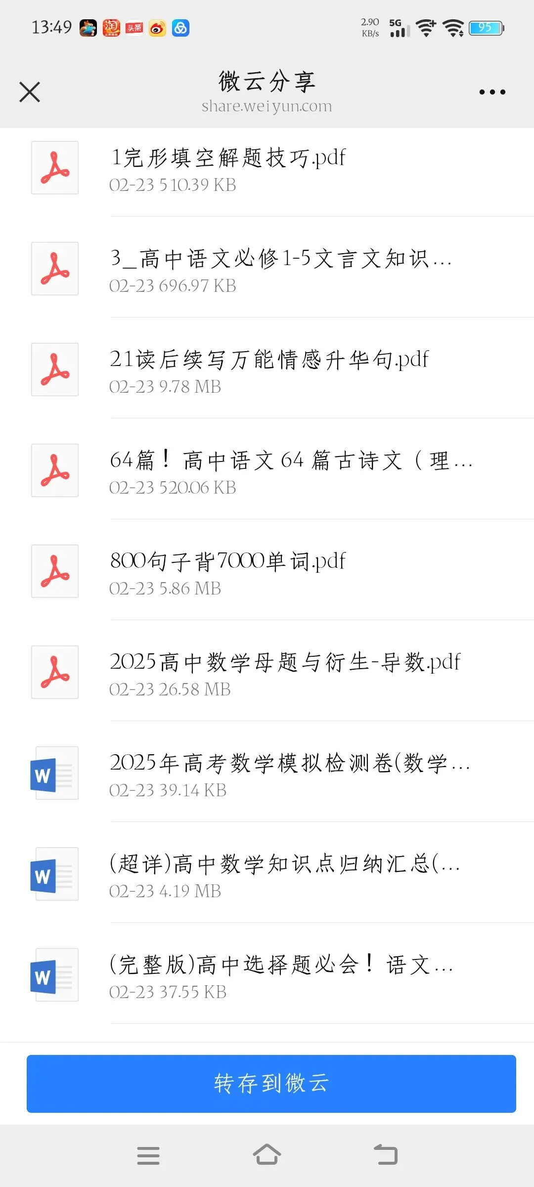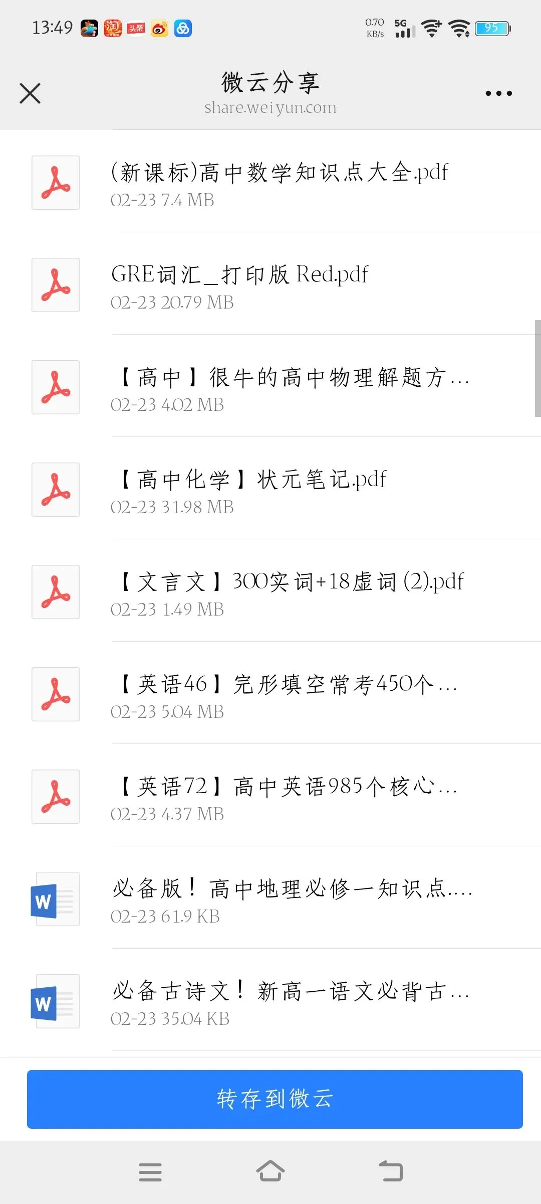 高中资料免费共享,用微云下载