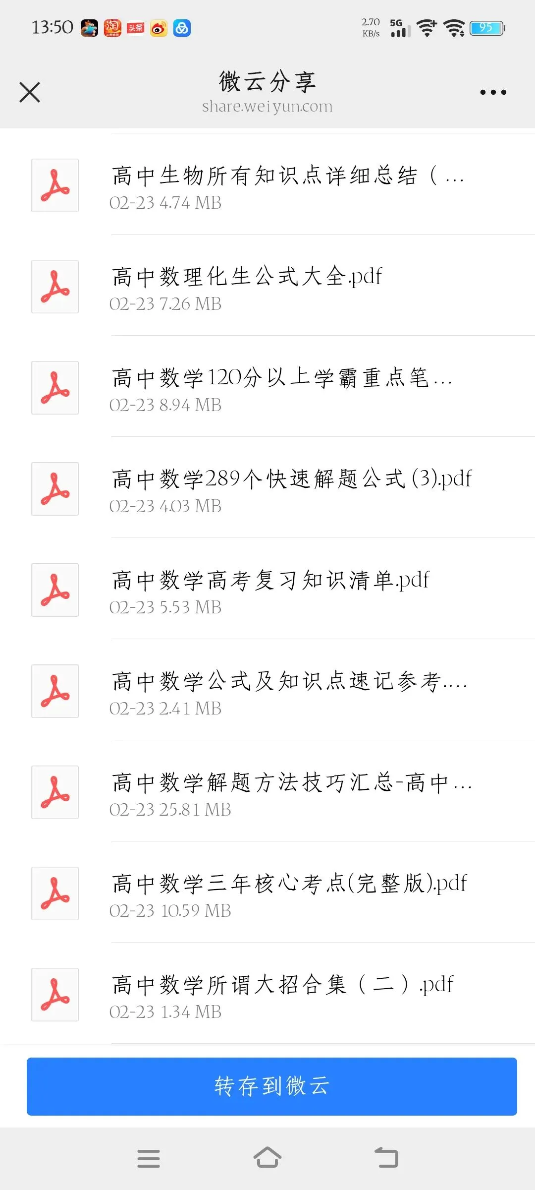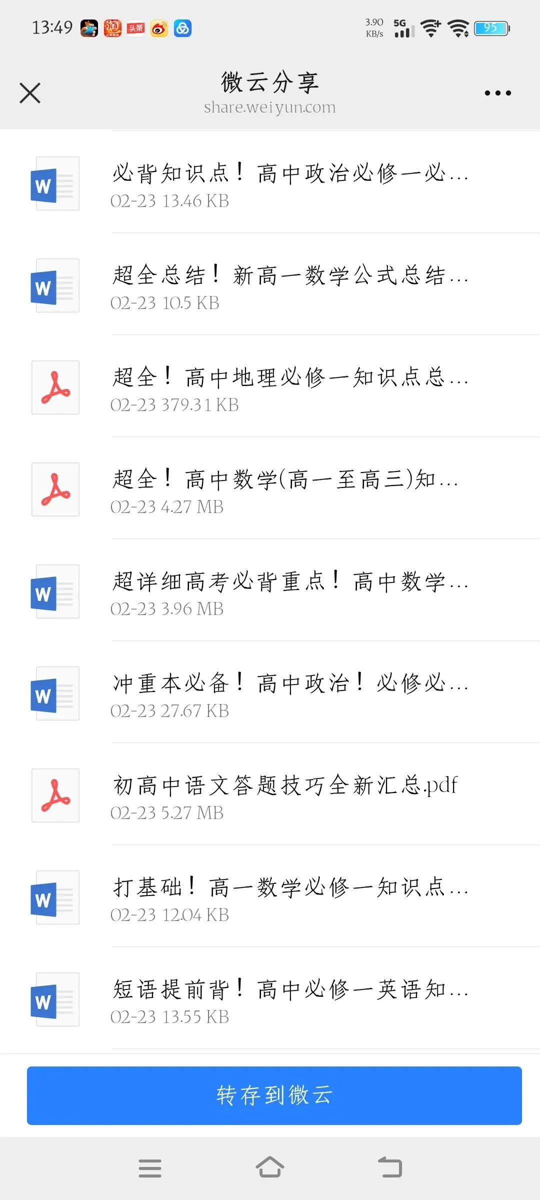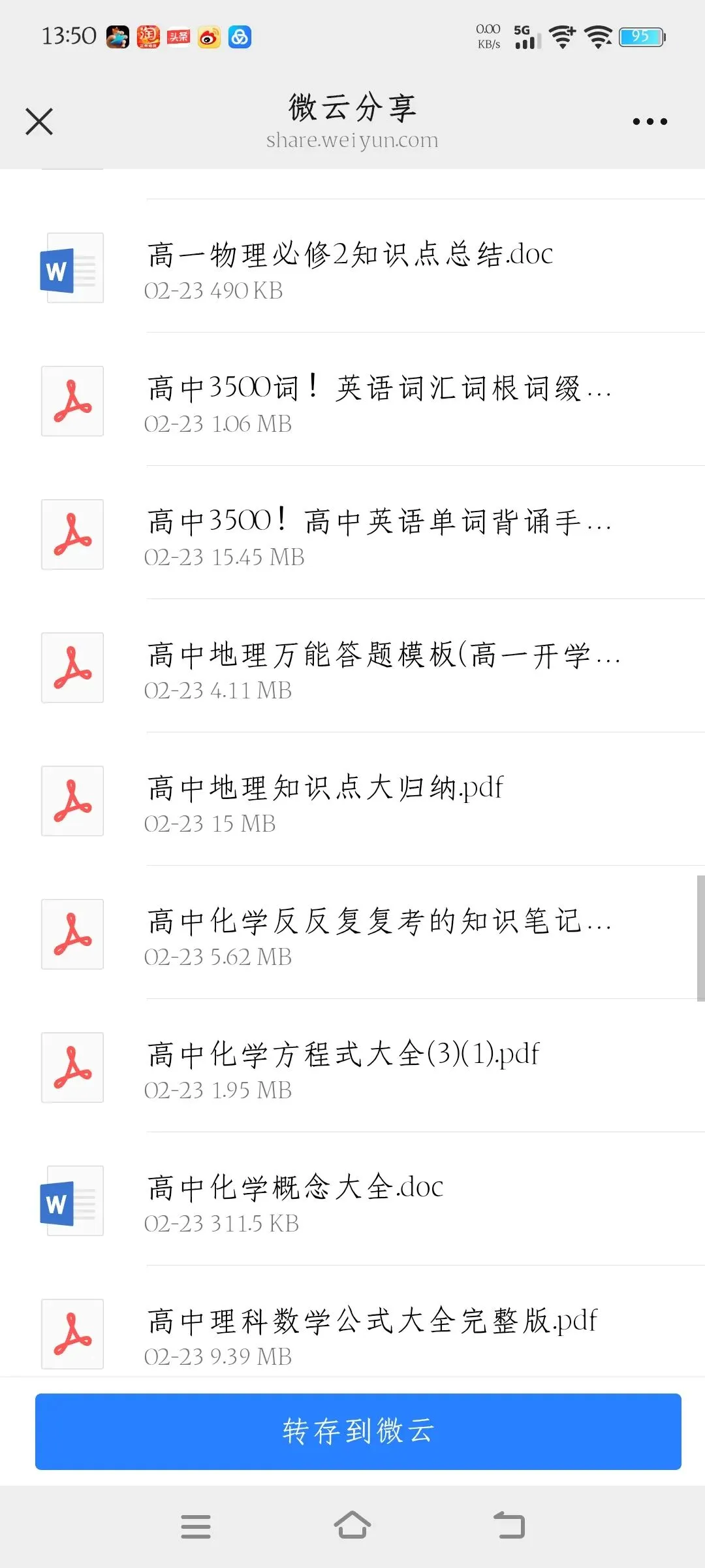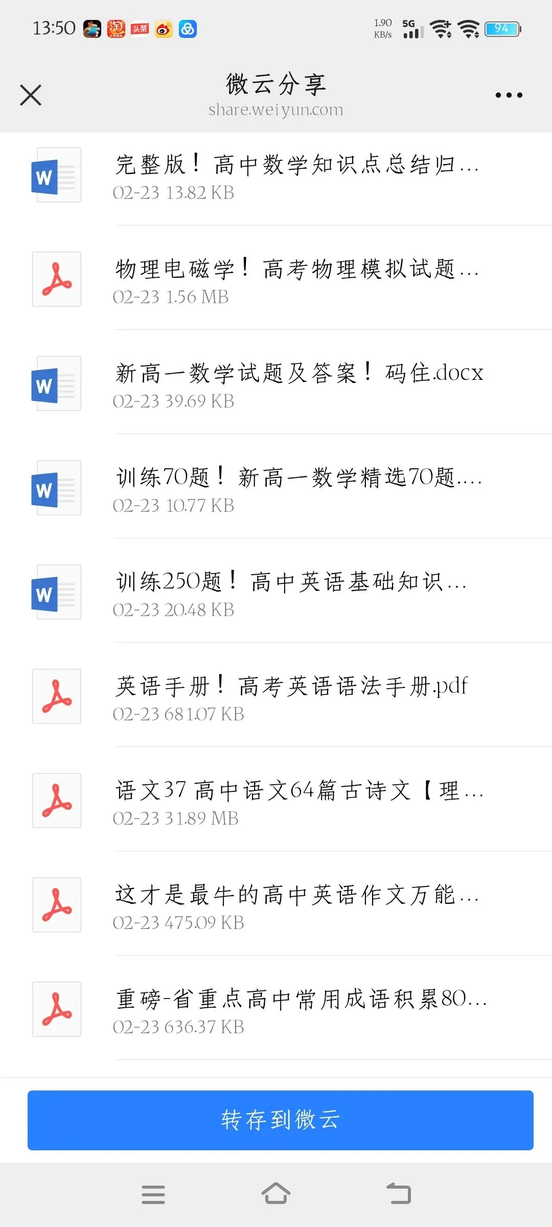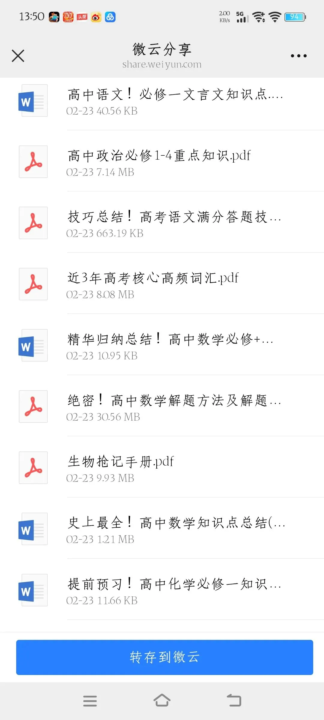 >高中资料免费共享,用微云下载