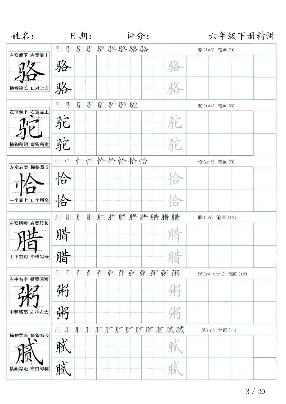 随着新学期的开始,六年级语文学习进入关键阶段。这份精心准备的字帖资料,将帮助孩子系统掌握生字书写规范,为语文学习打下坚实基础。