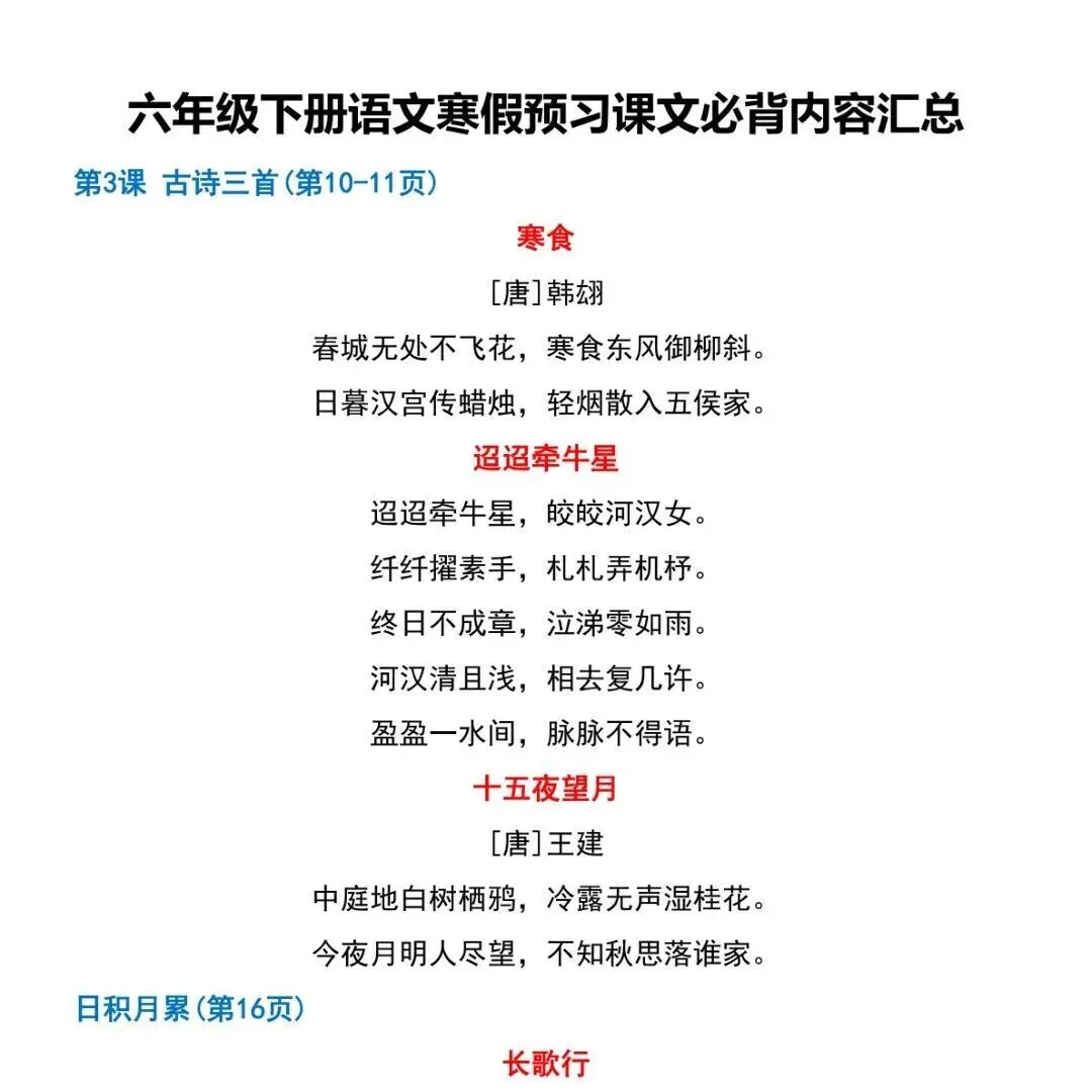 大家好,今天为大家分享的是一份非常实用的学习资料——2026春新版人教部编版六年级下册语文《全册重点必背内容汇总》。这份资料专为六年级学生设计,旨在帮助大家系统掌握下学期所有核心必背知识点,为新学期的学习打下坚实基础。