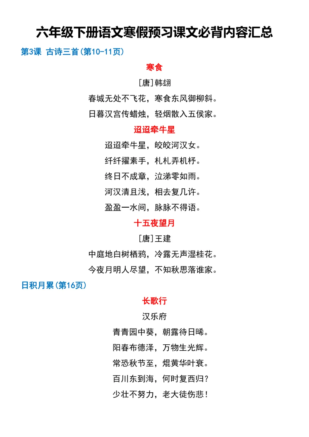 2026春新版人教部编版六年级下册语文《全册重点必背内容汇总》高清电子版已经为大家准备好,下载后即可直接打印使用。